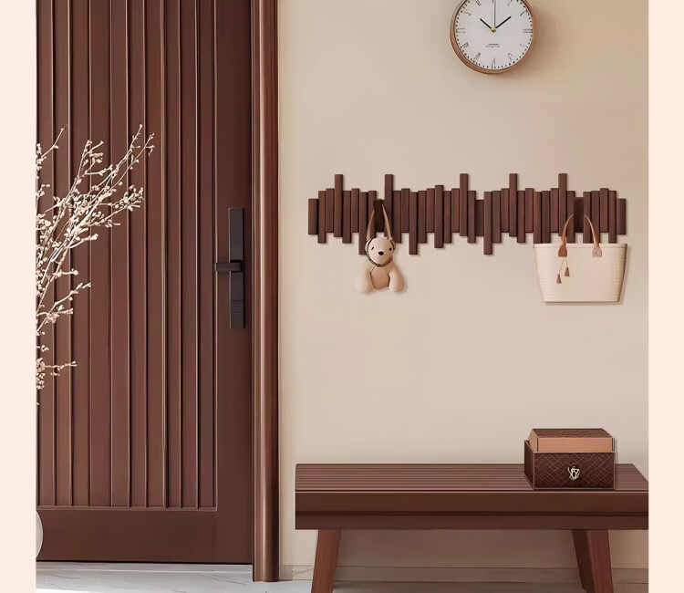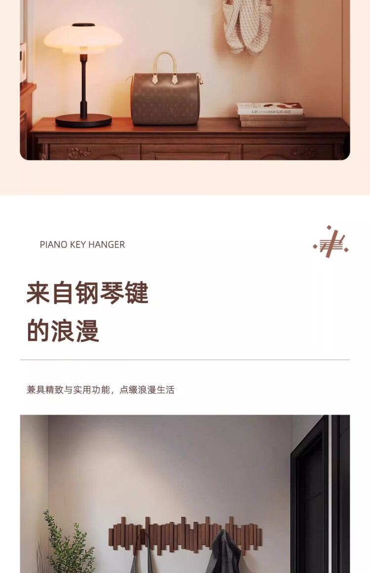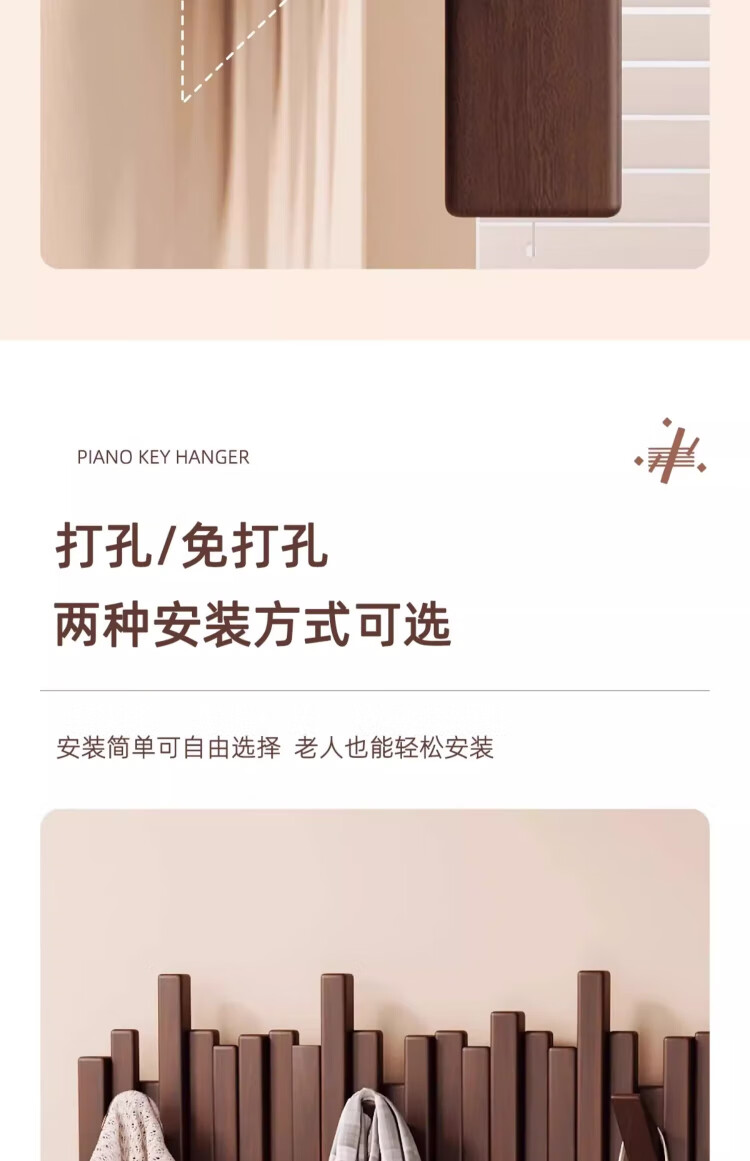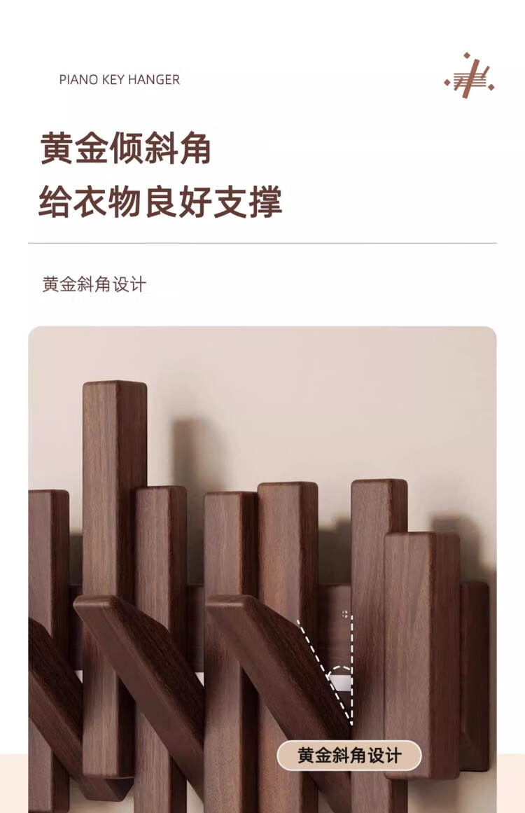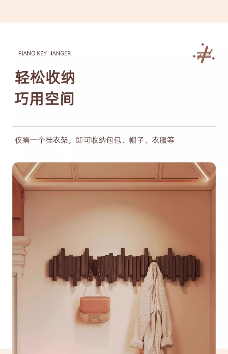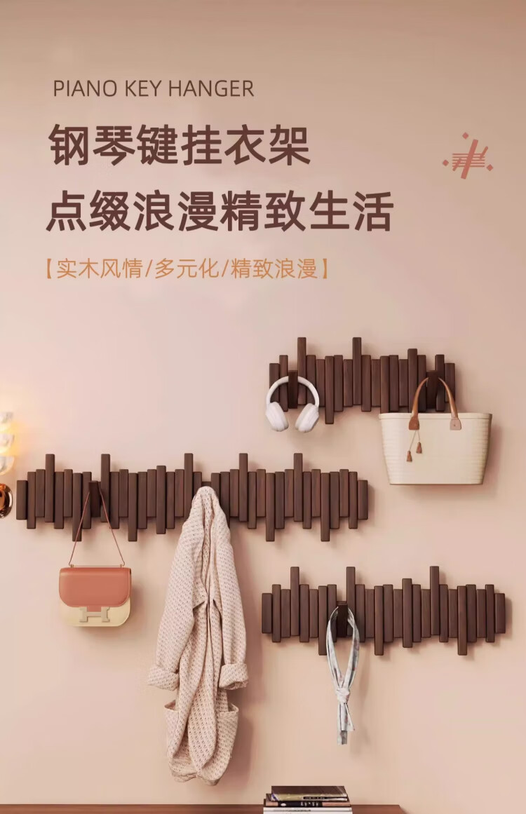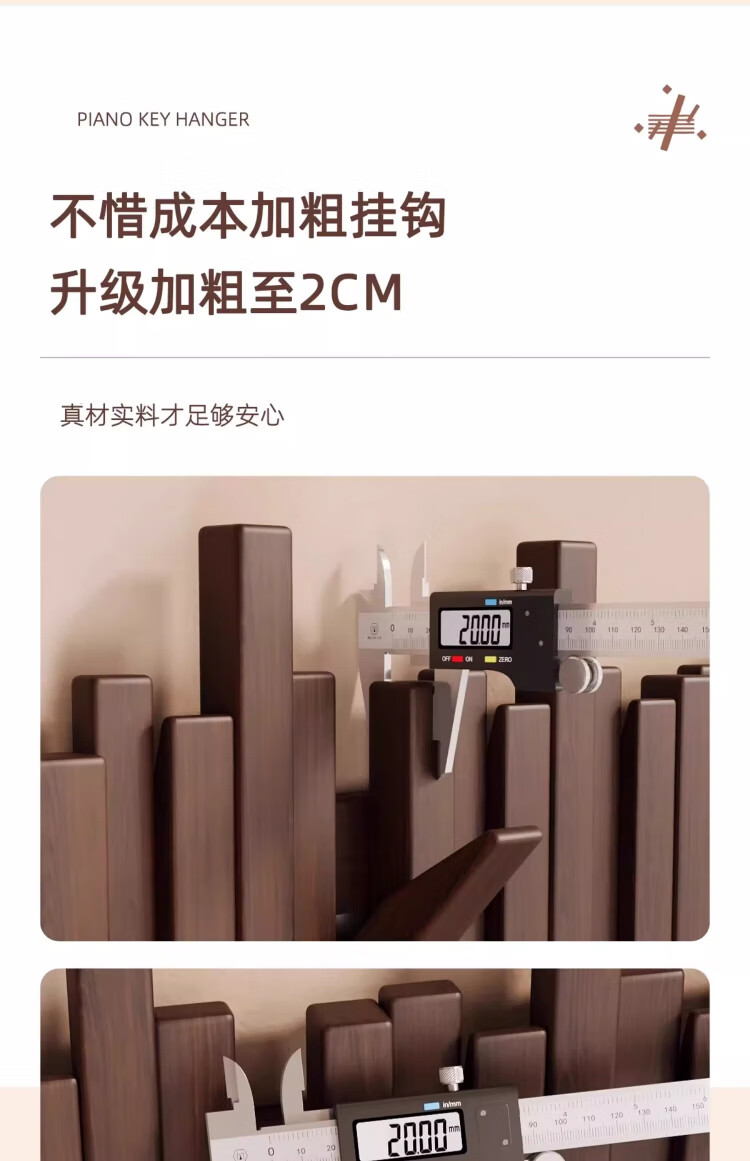 Jingyuezhai Piano Key Clothes Rack Solid Wood Wall Wall Hook Storage Porch Bedroom Entry Door Coat Rack Imported Beech Black 6 Keys - Staggered Style