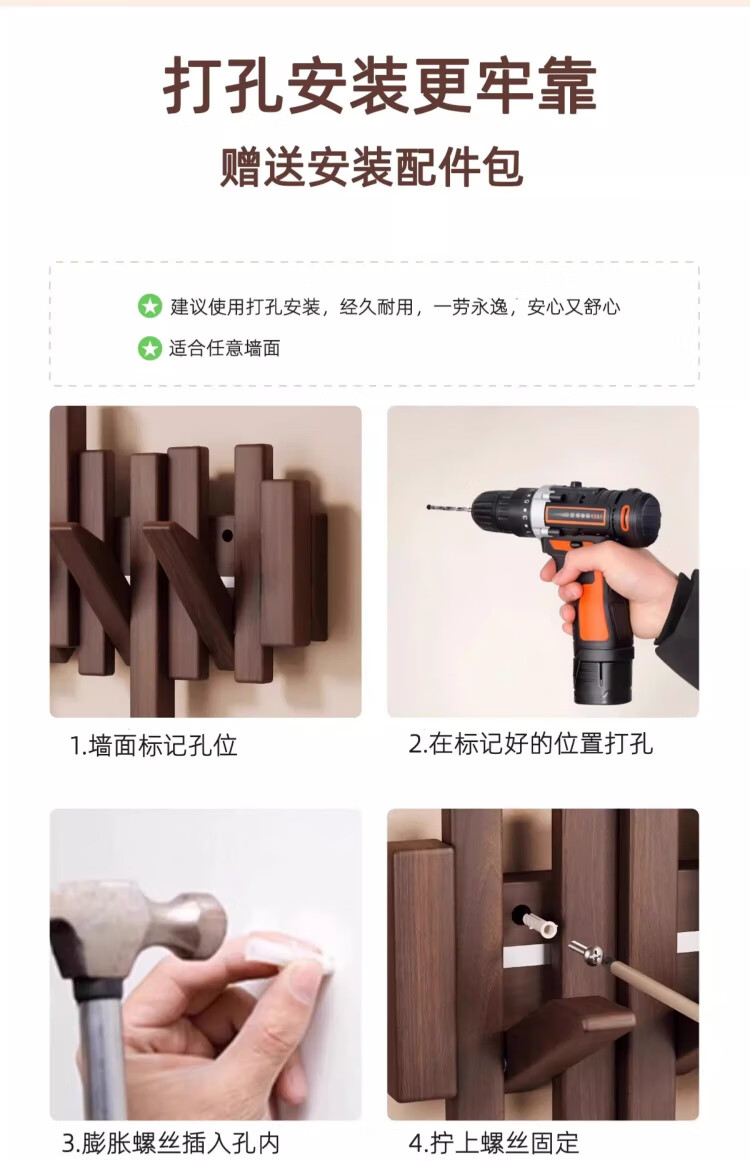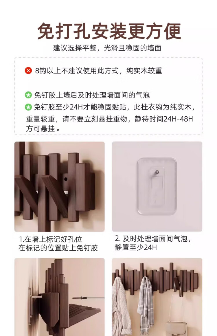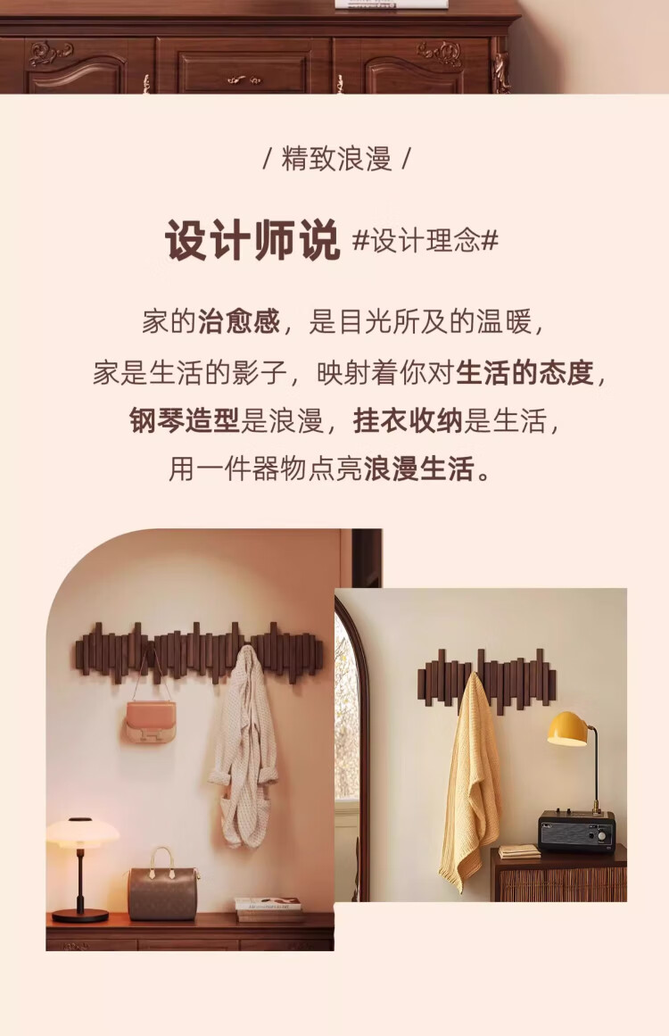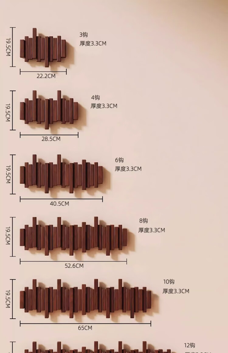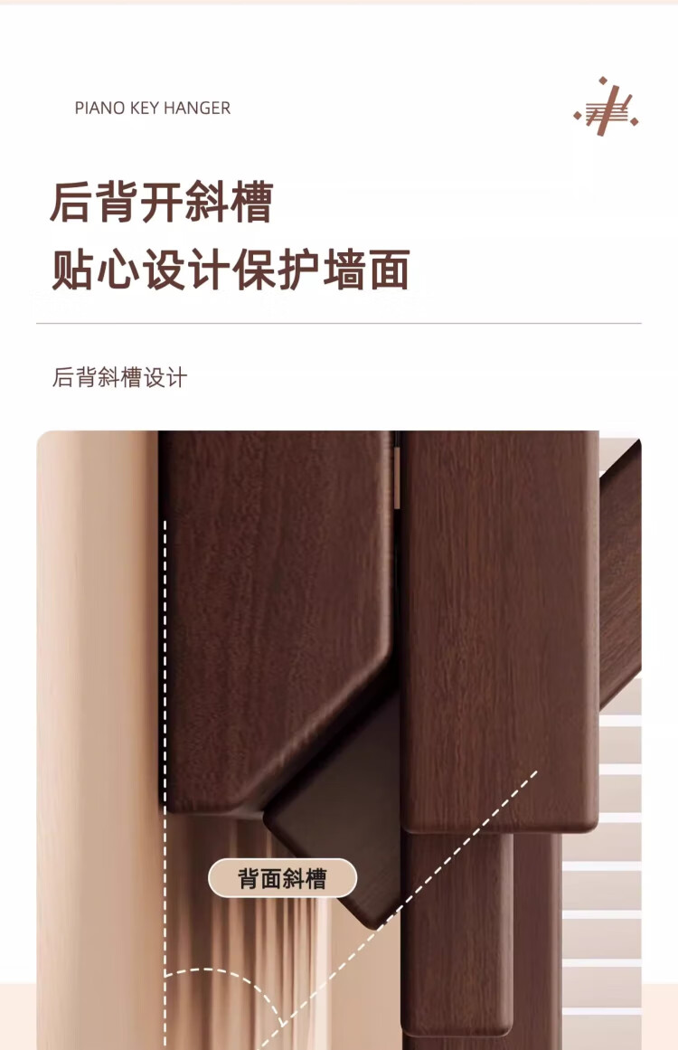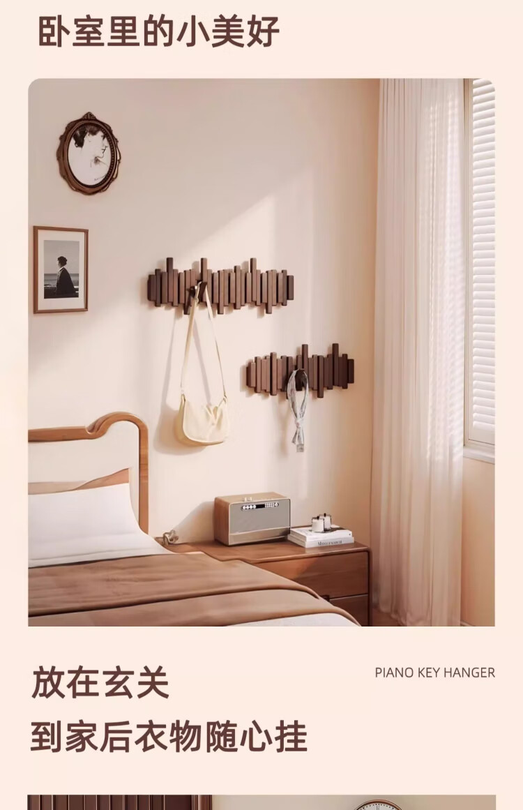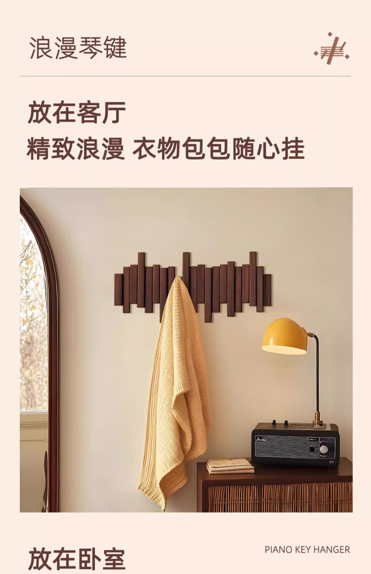 Jingyuezhai Piano Key Clothes Rack Solid Wood Wall Wall Hook Storage Porch Bedroom Entry Door Coat Rack Imported Beech Black 6 Keys - Staggered Style
