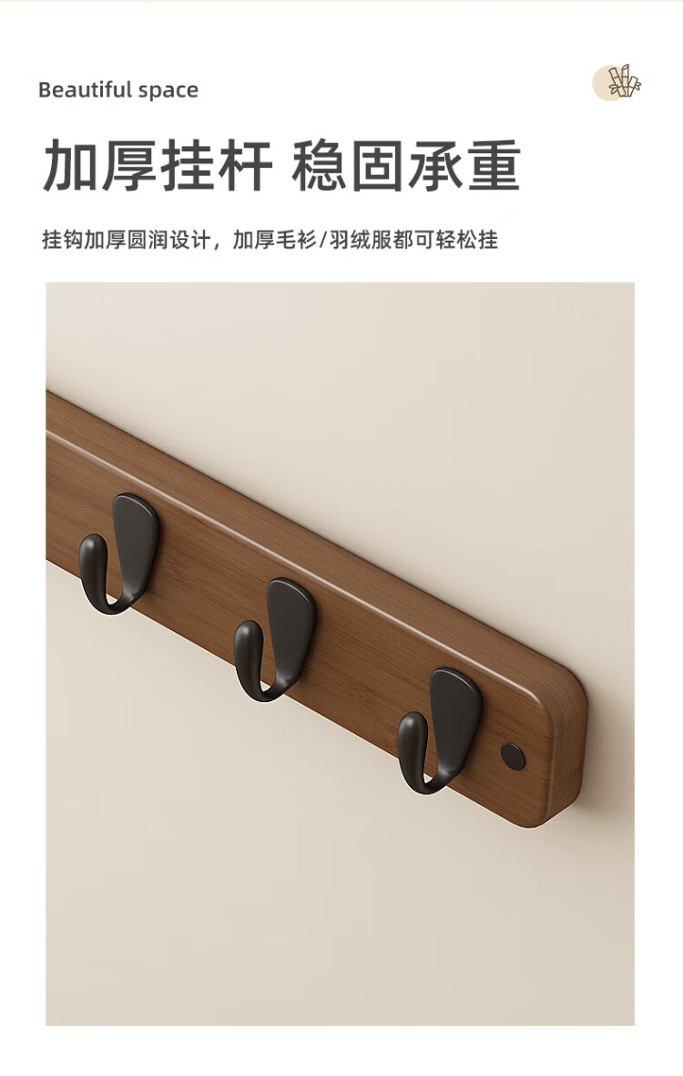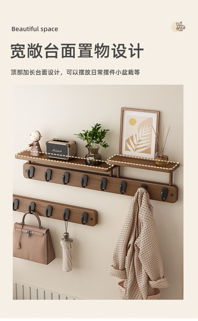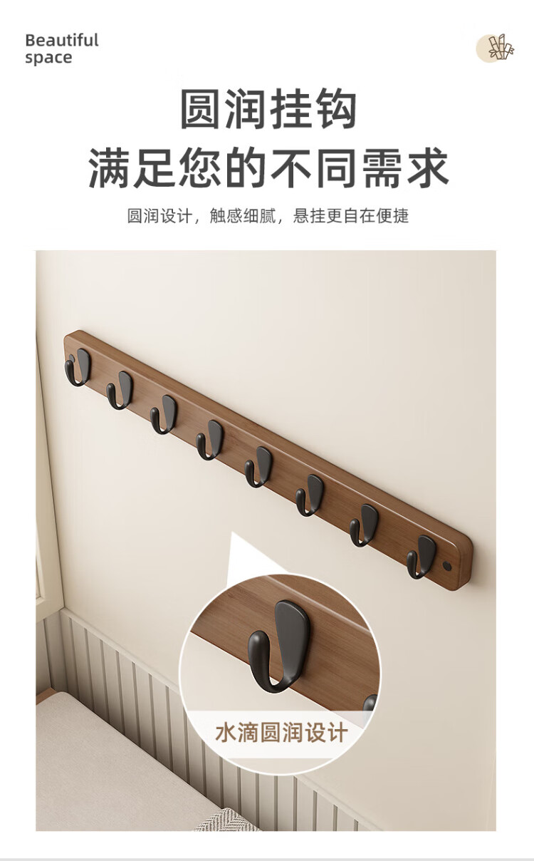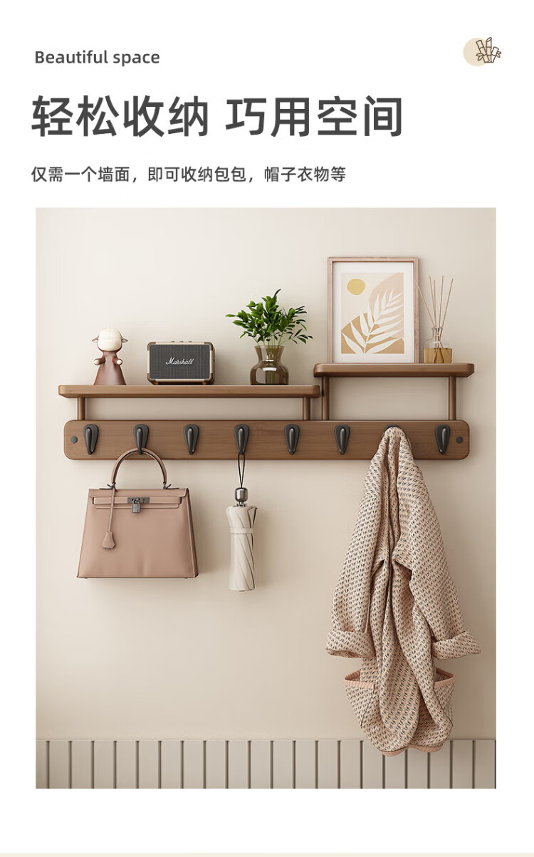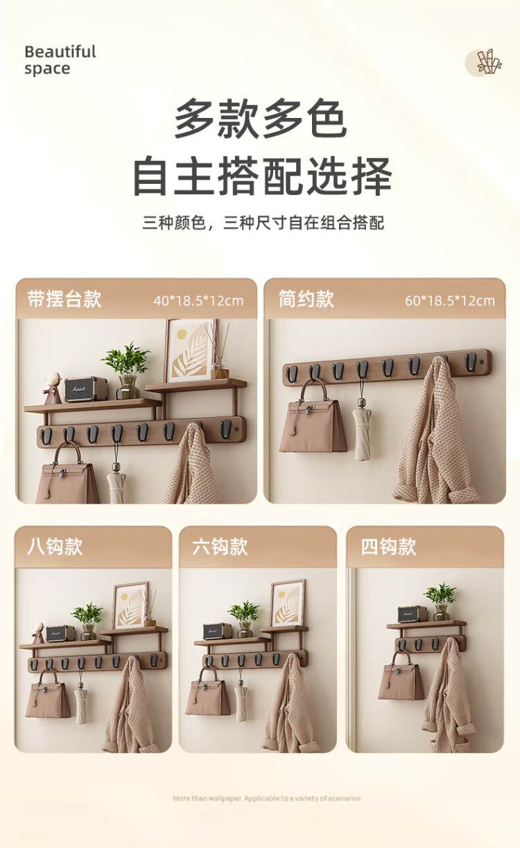 Chujun clothes hanger, wall hanging hat, scarf, clothes hook, entrance door, entrance hall, no punching solid wood, laminate upgrade, 8 hooks, strong load-bearing solid wood