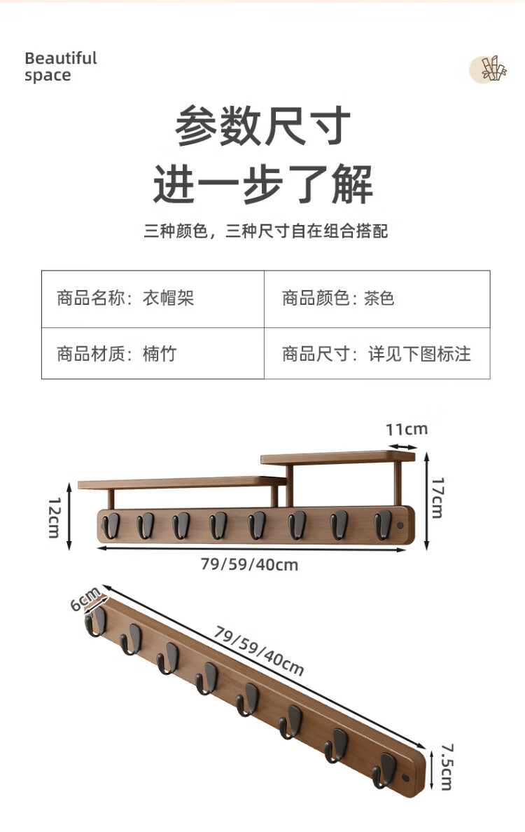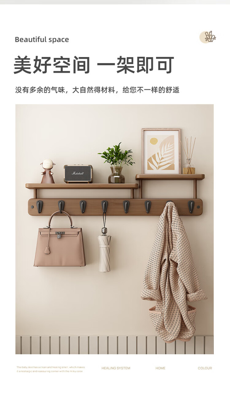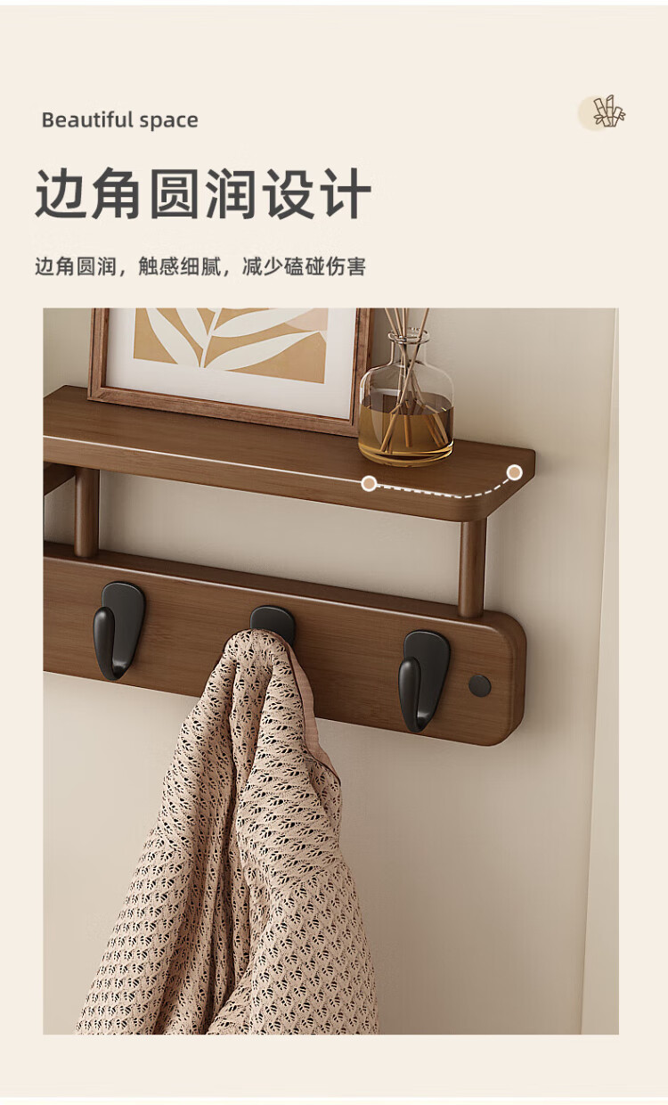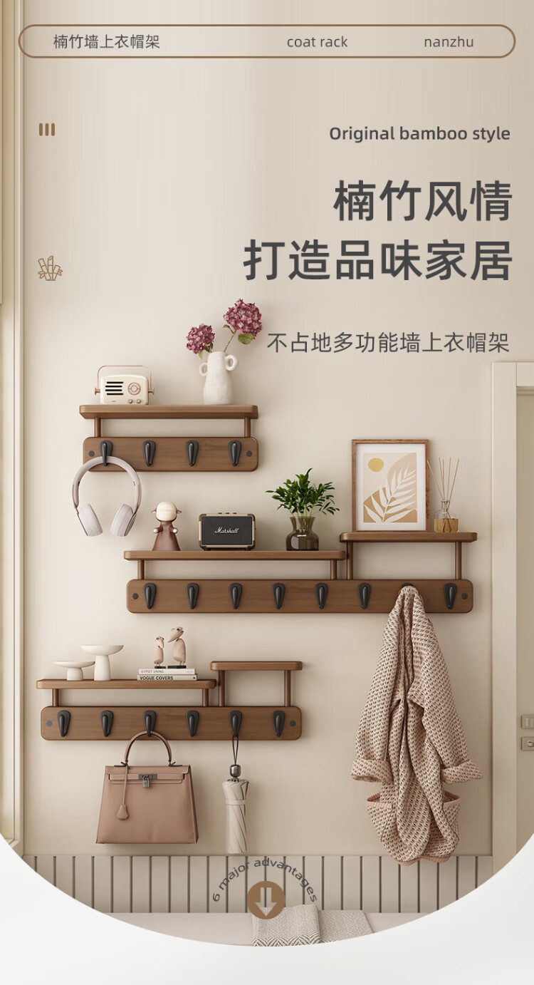 Chujun clothes hanger, wall hanging hat, scarf, clothes hook, entrance door, entrance hall, no punching solid wood, laminate upgrade, 8 hooks, strong load-bearing solid wood