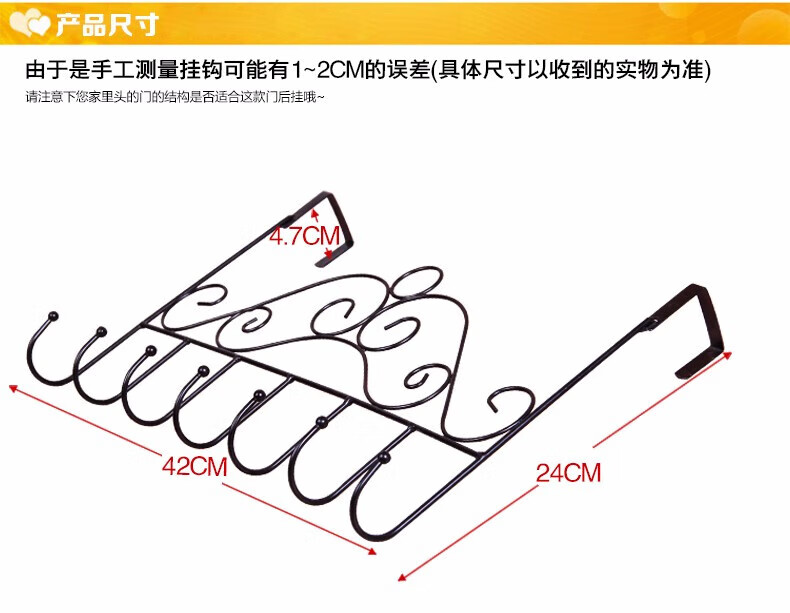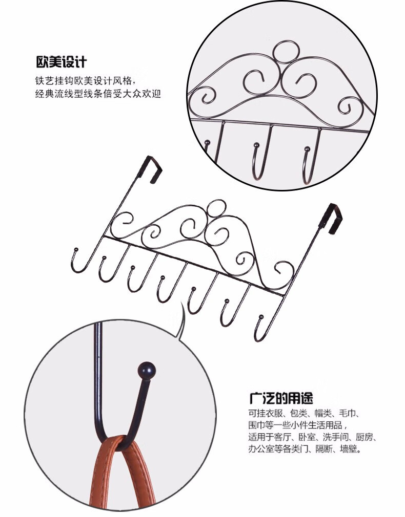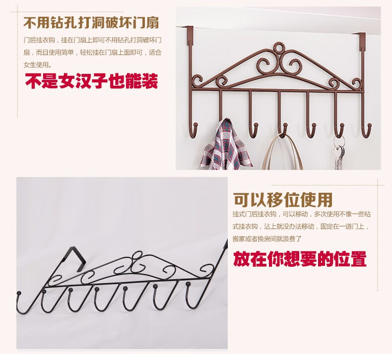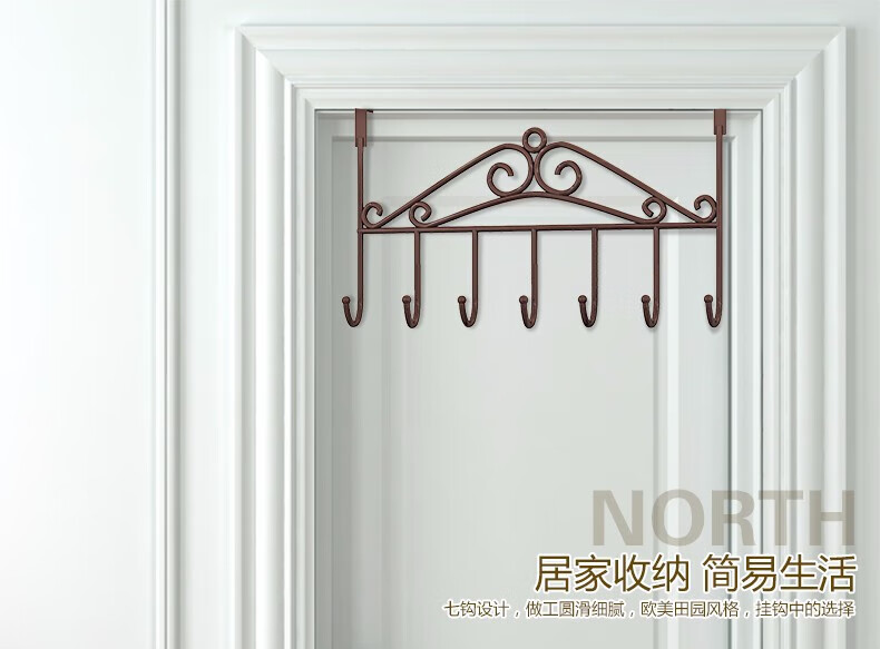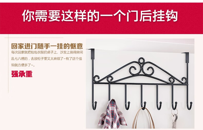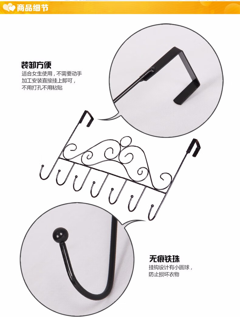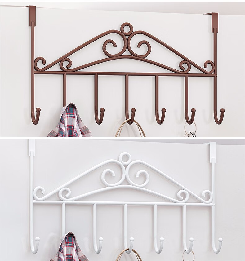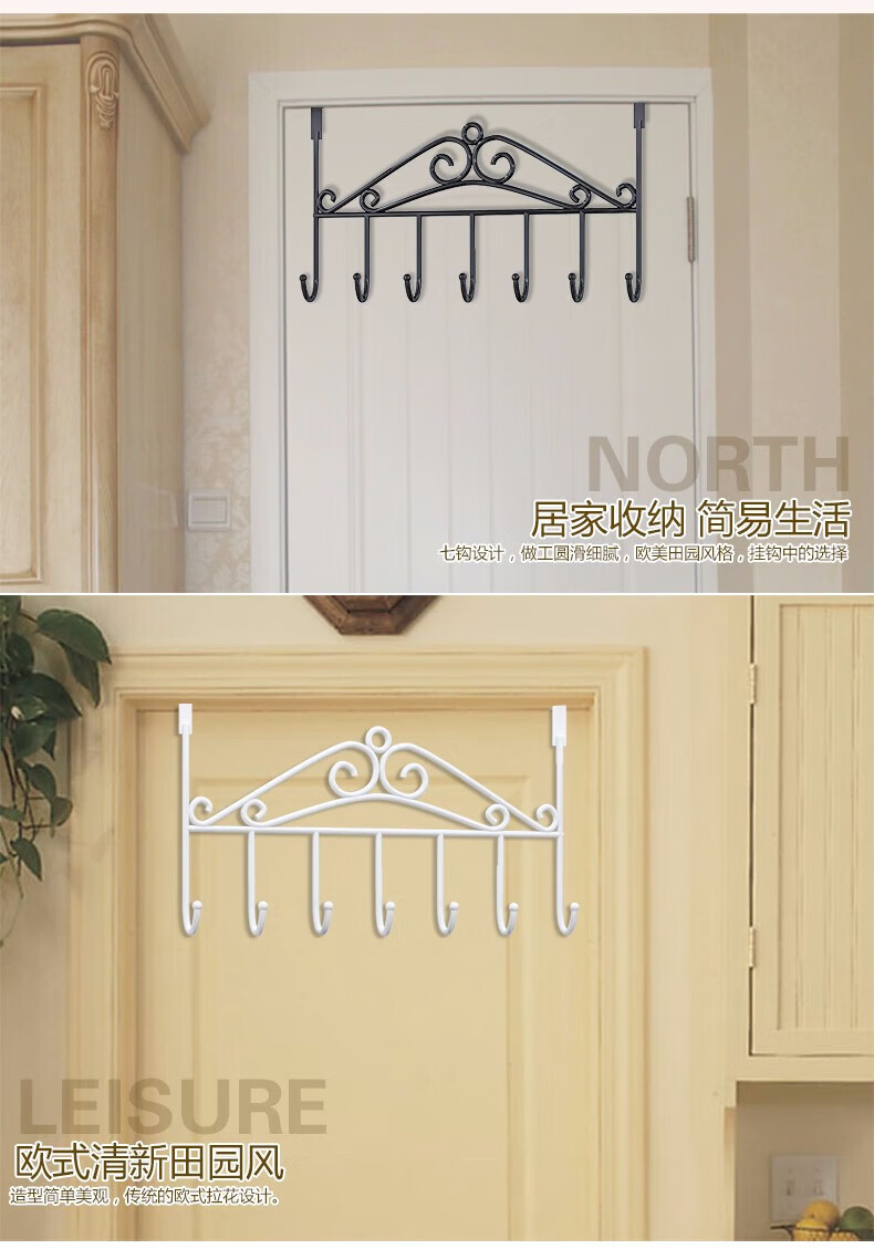 Hook behind the door, no need to punch holes, wall-mounted bedroom door hanger clothes and hat storage rack artifact seven hooks - length 42CM white