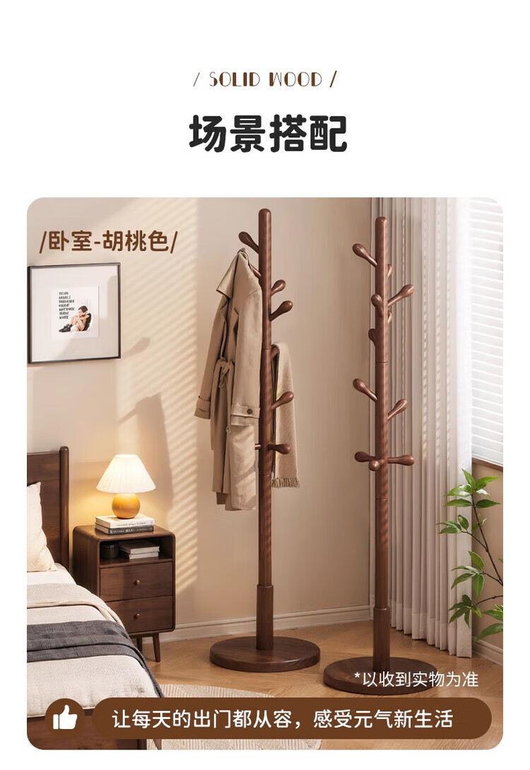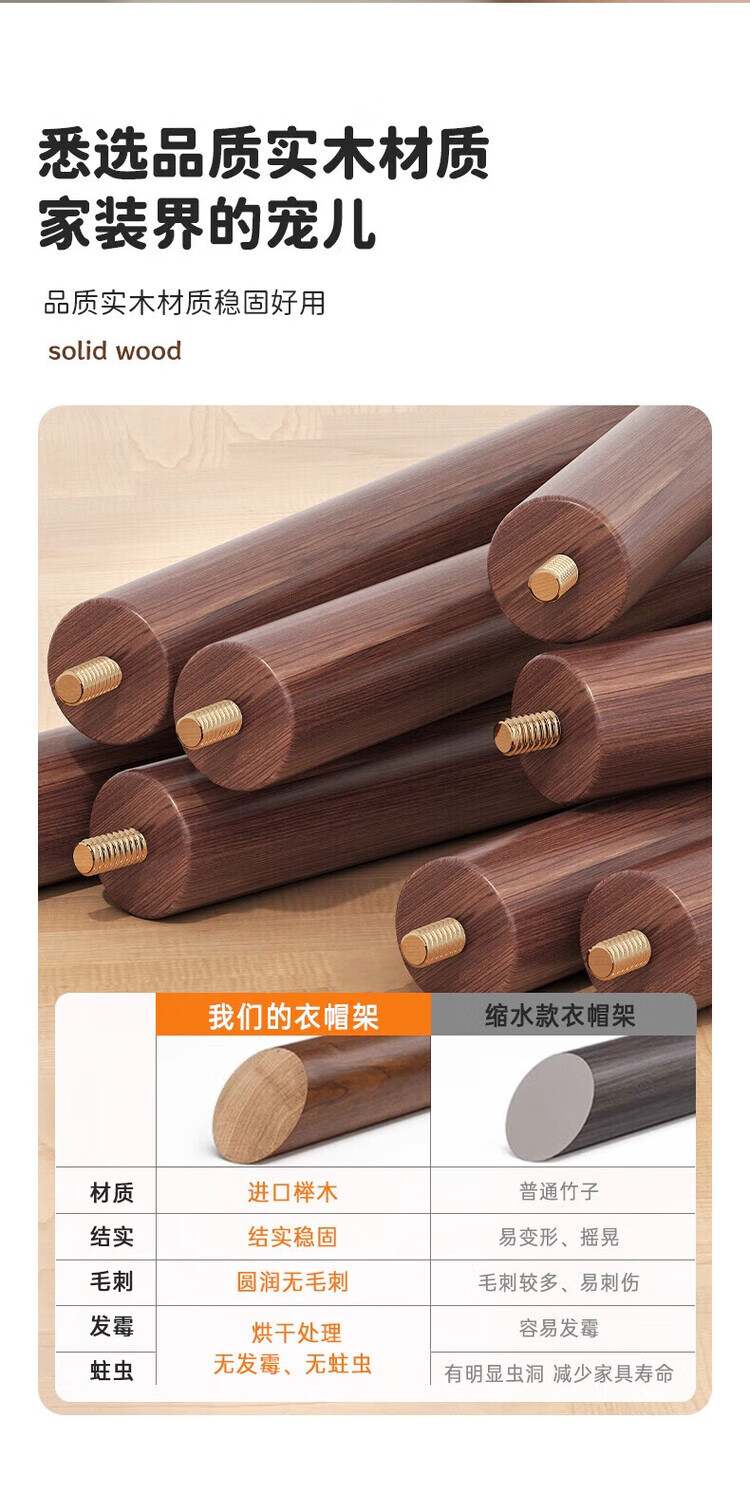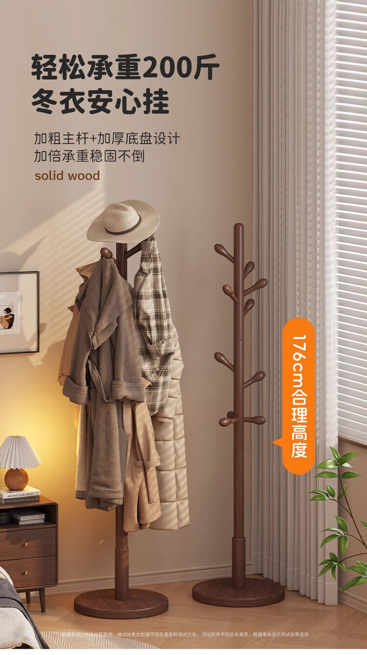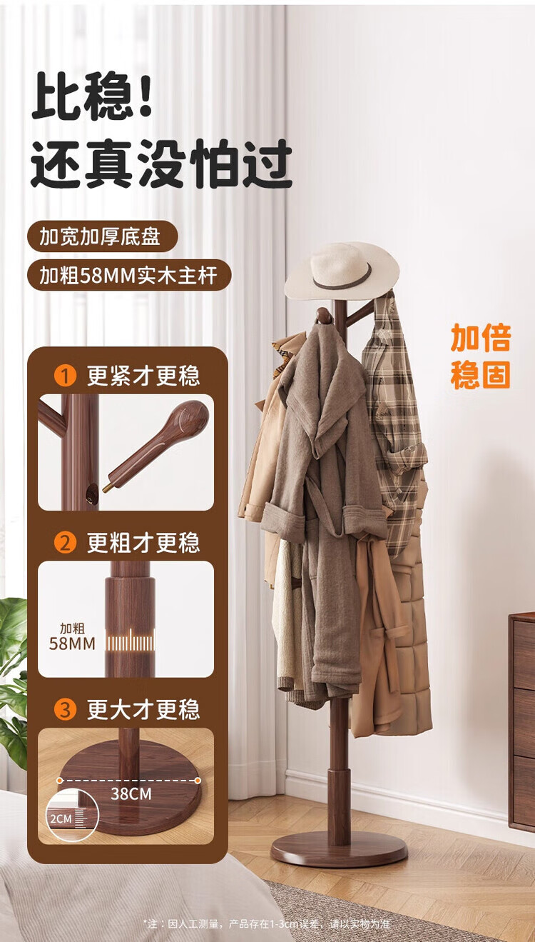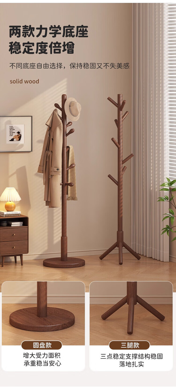 Bedroom clothes rail 2025 new solid wood floor-standing clothes rack does not take up space in the home simple coat rack hanging bag rack thick solid wood walnut color disc style 35CM