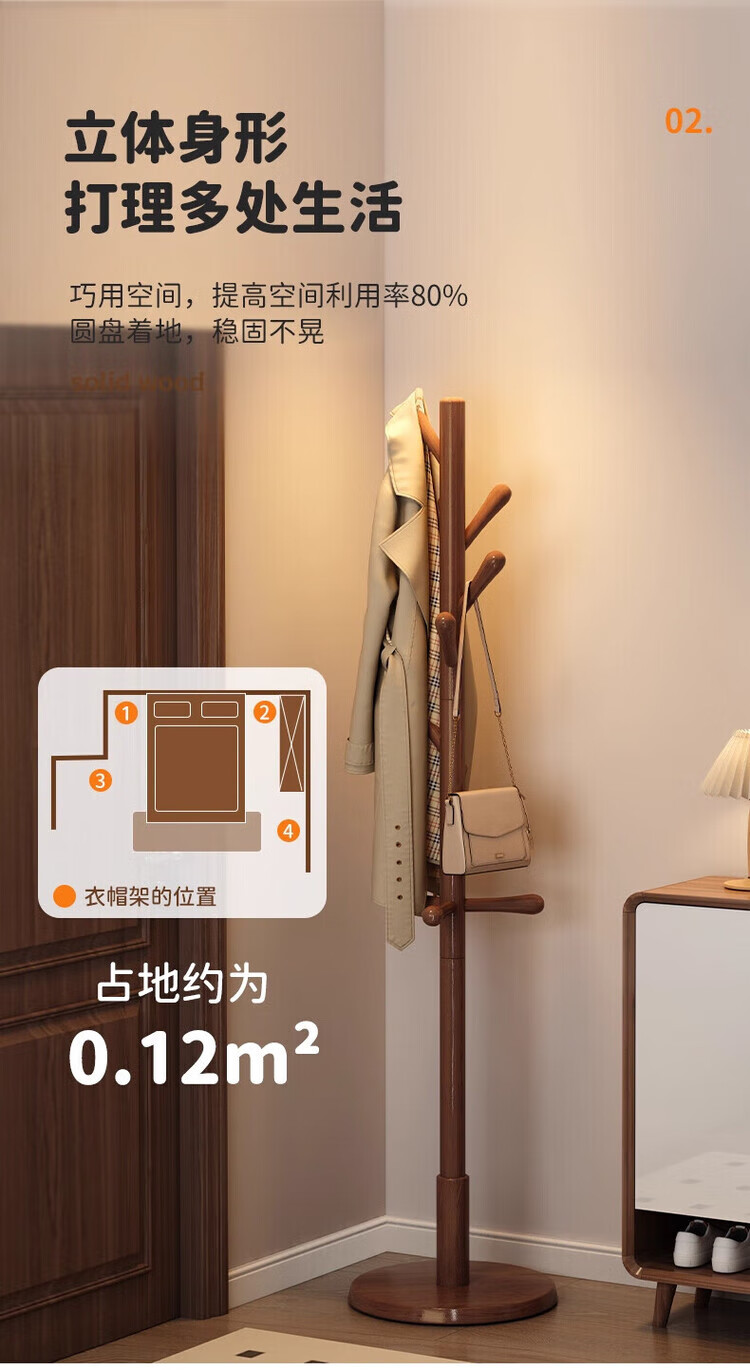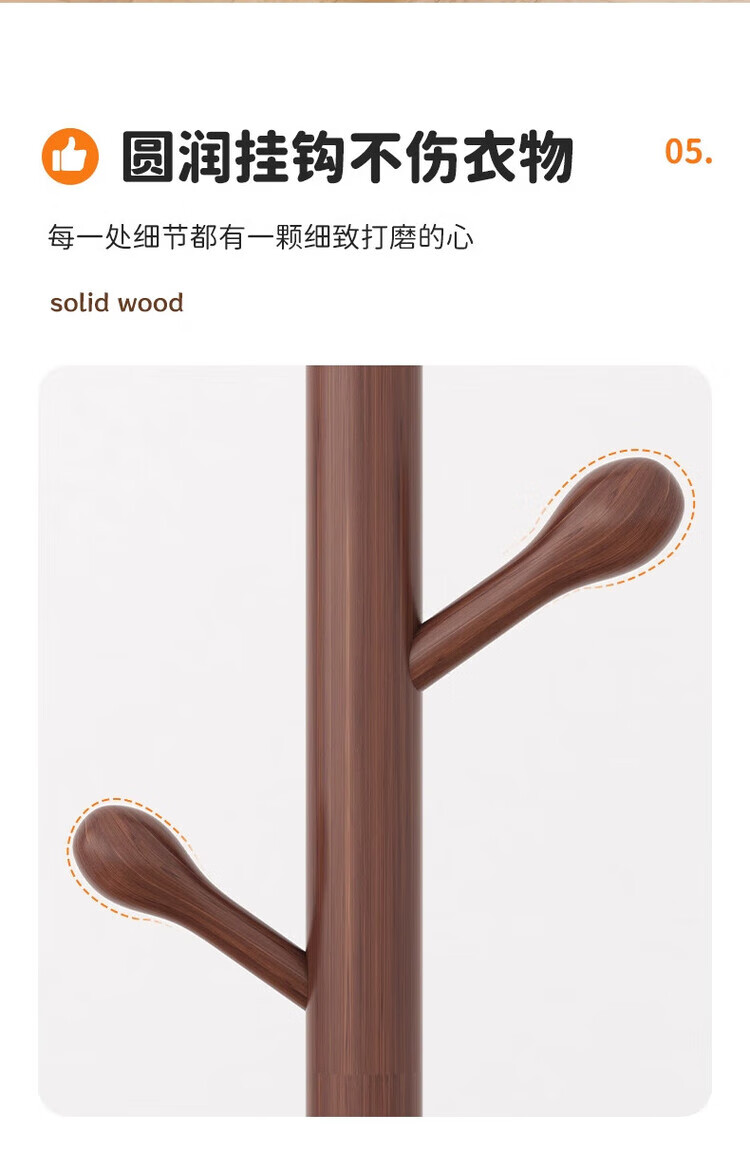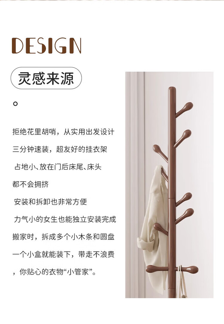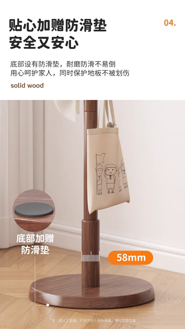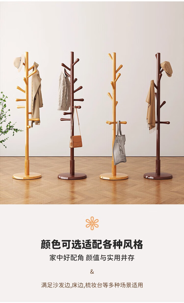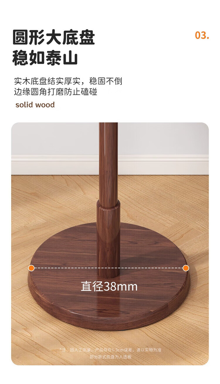 Bedroom clothes rail 2025 new solid wood floor-standing clothes rack does not take up space in the home simple coat rack hanging bag rack thick solid wood walnut color disc style 35CM