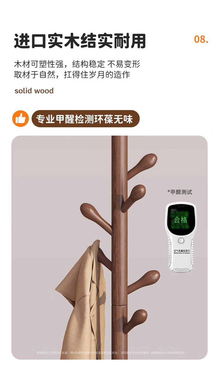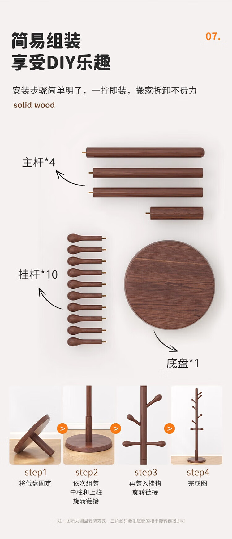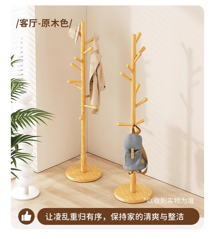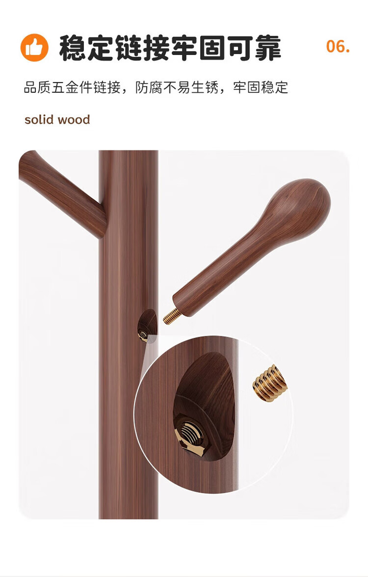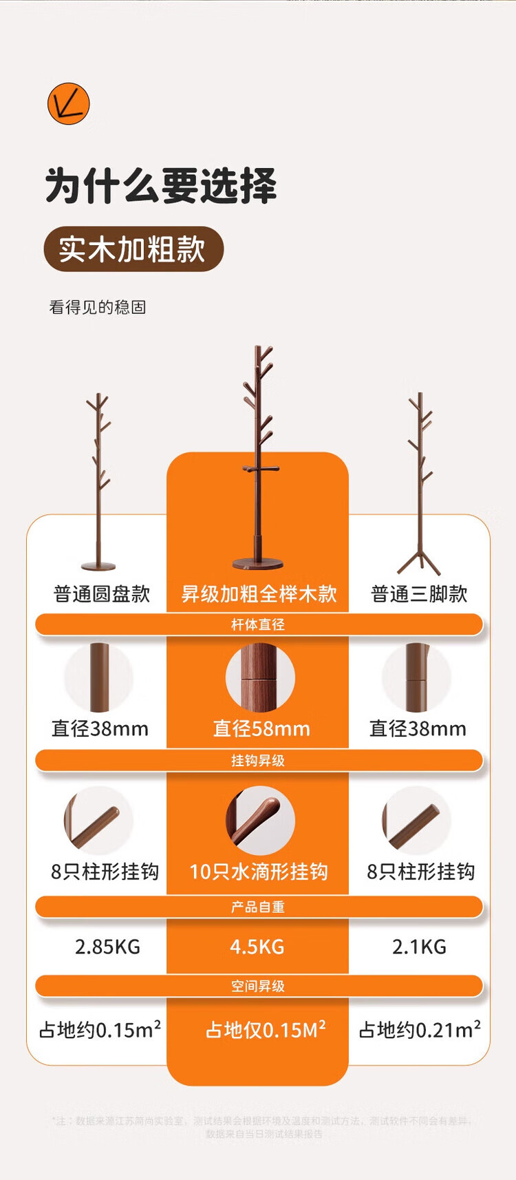 Bedroom clothes rail 2025 new solid wood floor-standing clothes rack does not take up space in the home simple coat rack hanging bag rack thick solid wood walnut color disc style 35CM