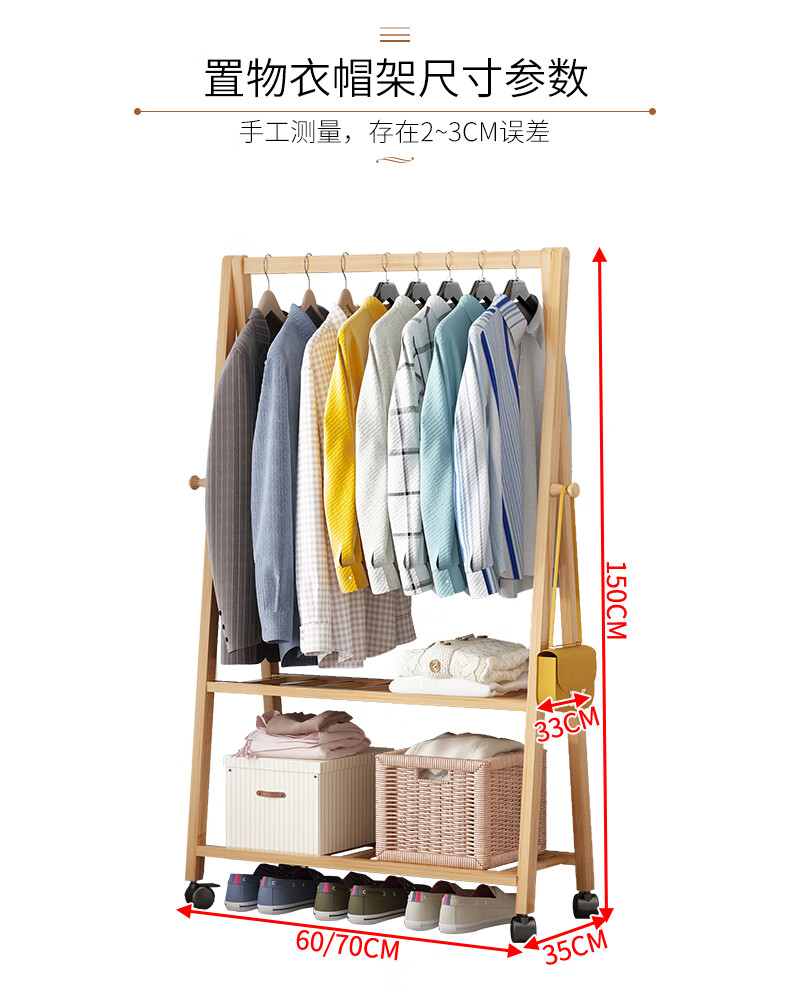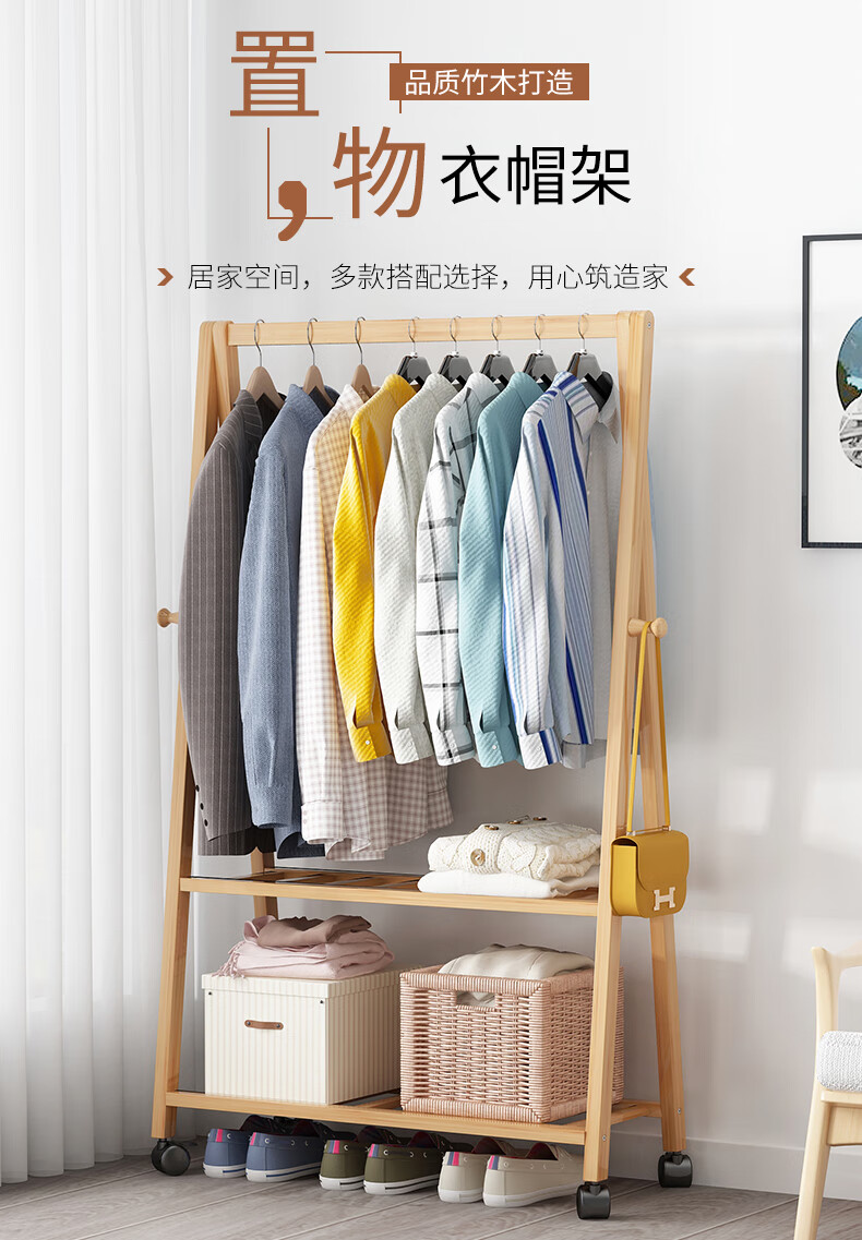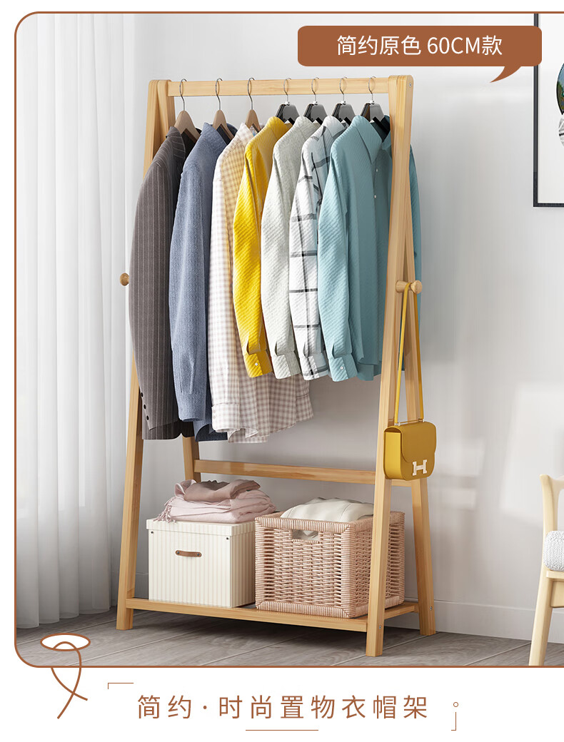 Yubaimuchuang coat rack floor-standing vertical bedroom home multi-functional clothes rack living room door hanging bag hanging clothes rack single layer primary color 60CM