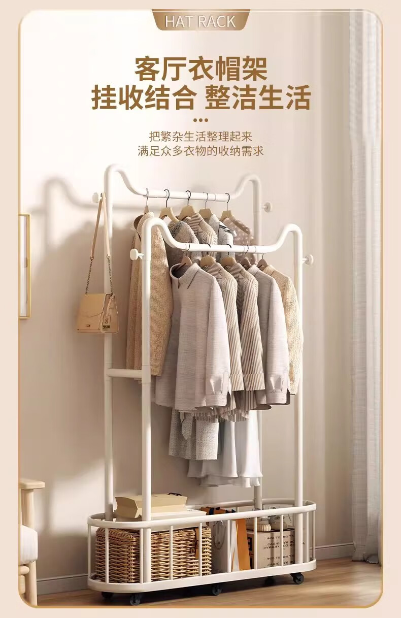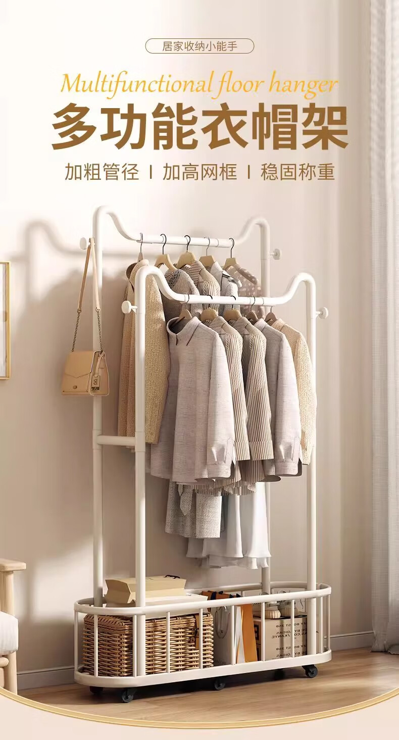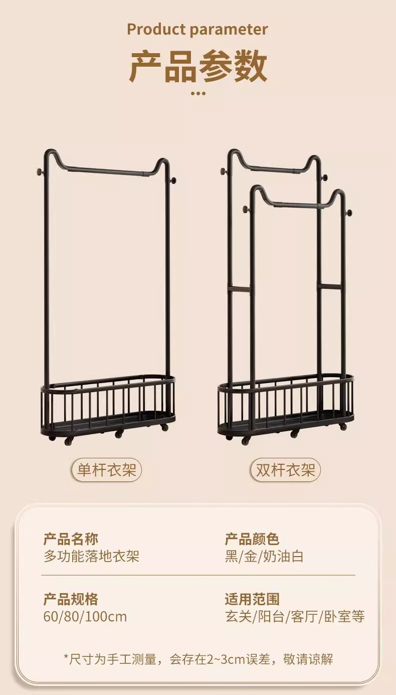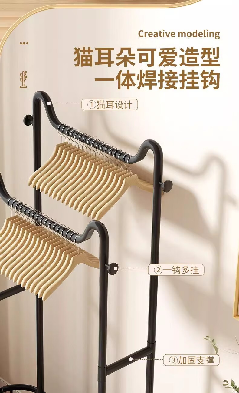 Nifeng clothes hanger floor-standing bedroom clothes hanger removable wheeled home internet celebrity cream style clothes hanger simple coat rack store manager recommended - white single pole cat ears - 60cm thick and reinforced