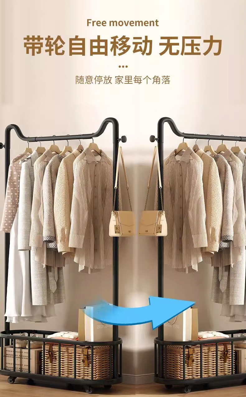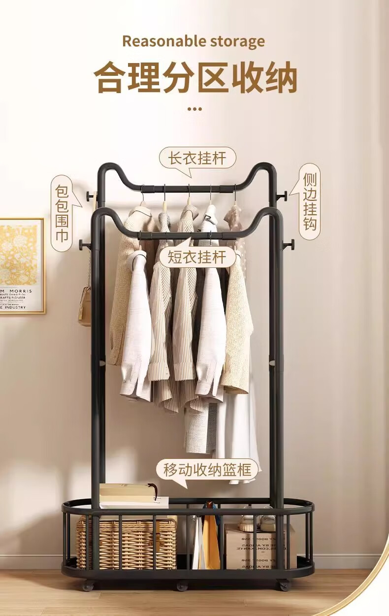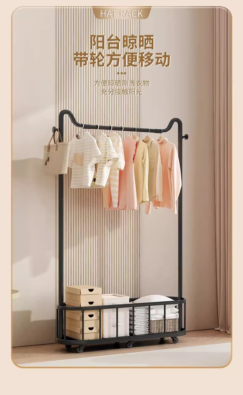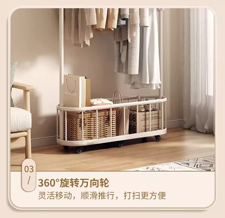 Nifeng clothes hanger floor-standing bedroom clothes hanger removable wheeled home internet celebrity cream style clothes hanger simple coat rack store manager recommended - white single pole cat ears - 60cm thick and reinforced