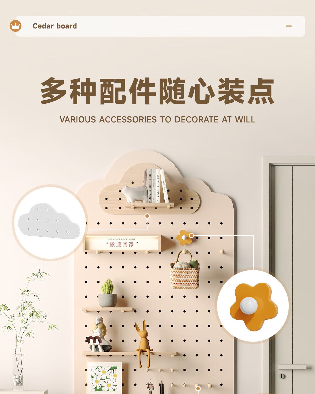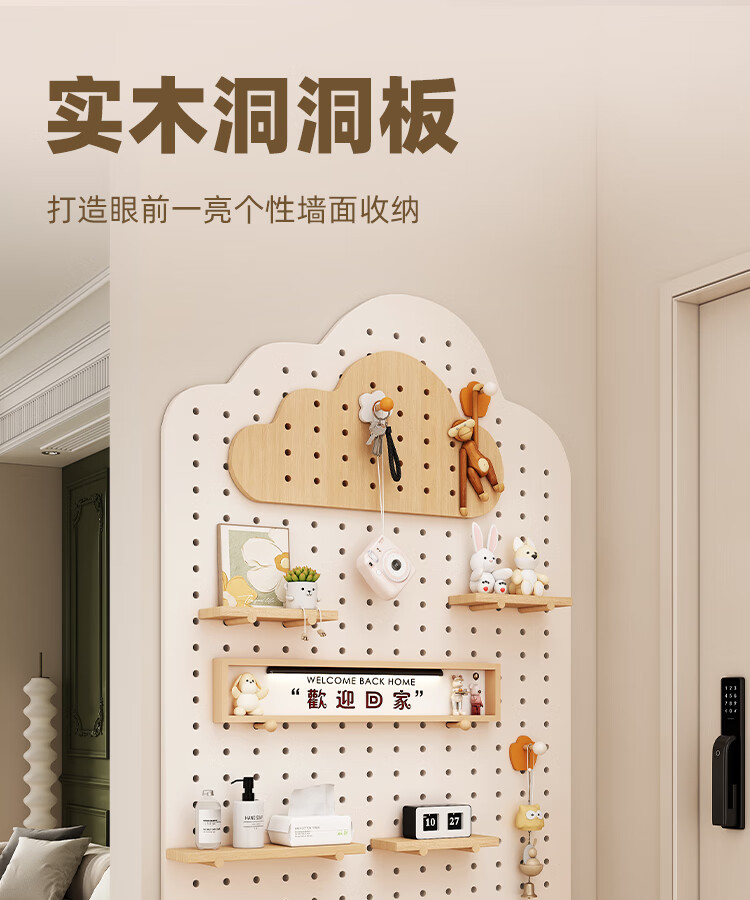 Youifu hole board storage rack solid wood customizable punch-free shelf wall decoration storage rack multi-functional cloud type size supports customization, please contact customer service for details