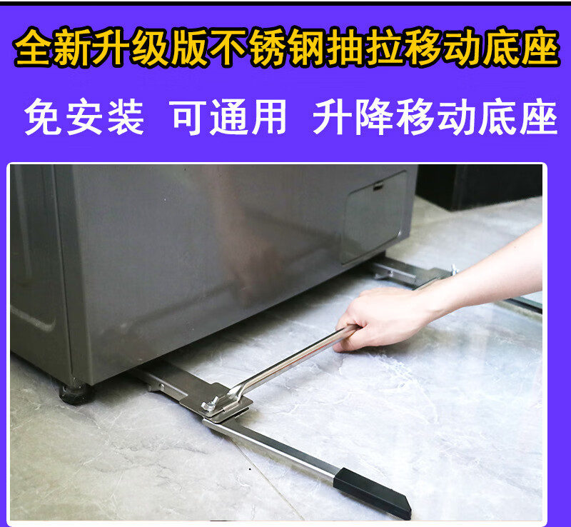 Sinikeya installation-free drum washing machine universal stainless steel lift invisible pull-out mobile pulley artifact universal base thickened and widened stainless steel installation-free pull-out base