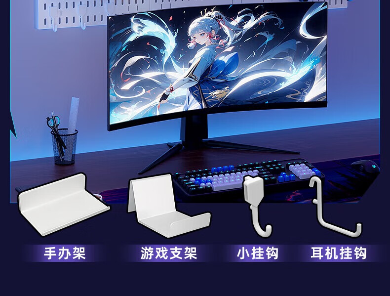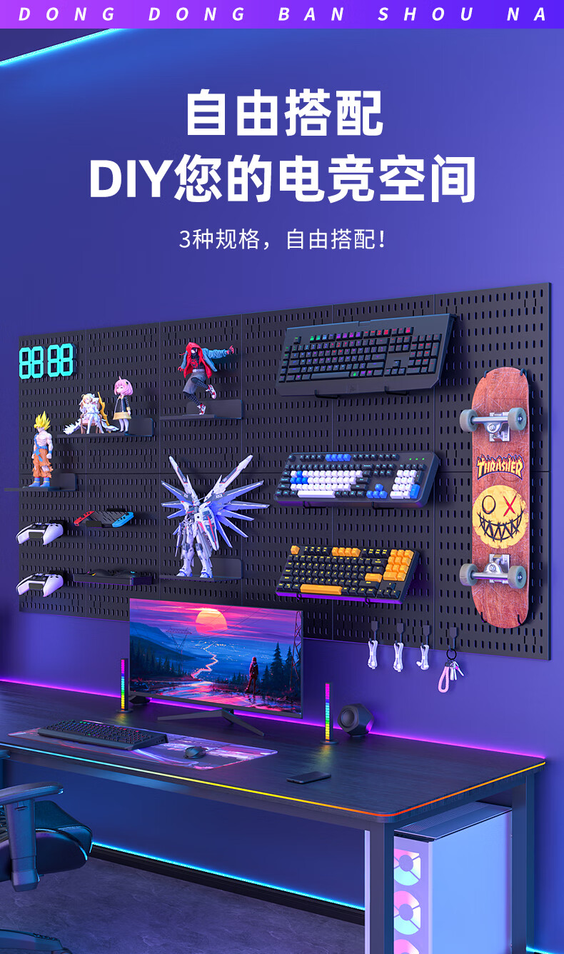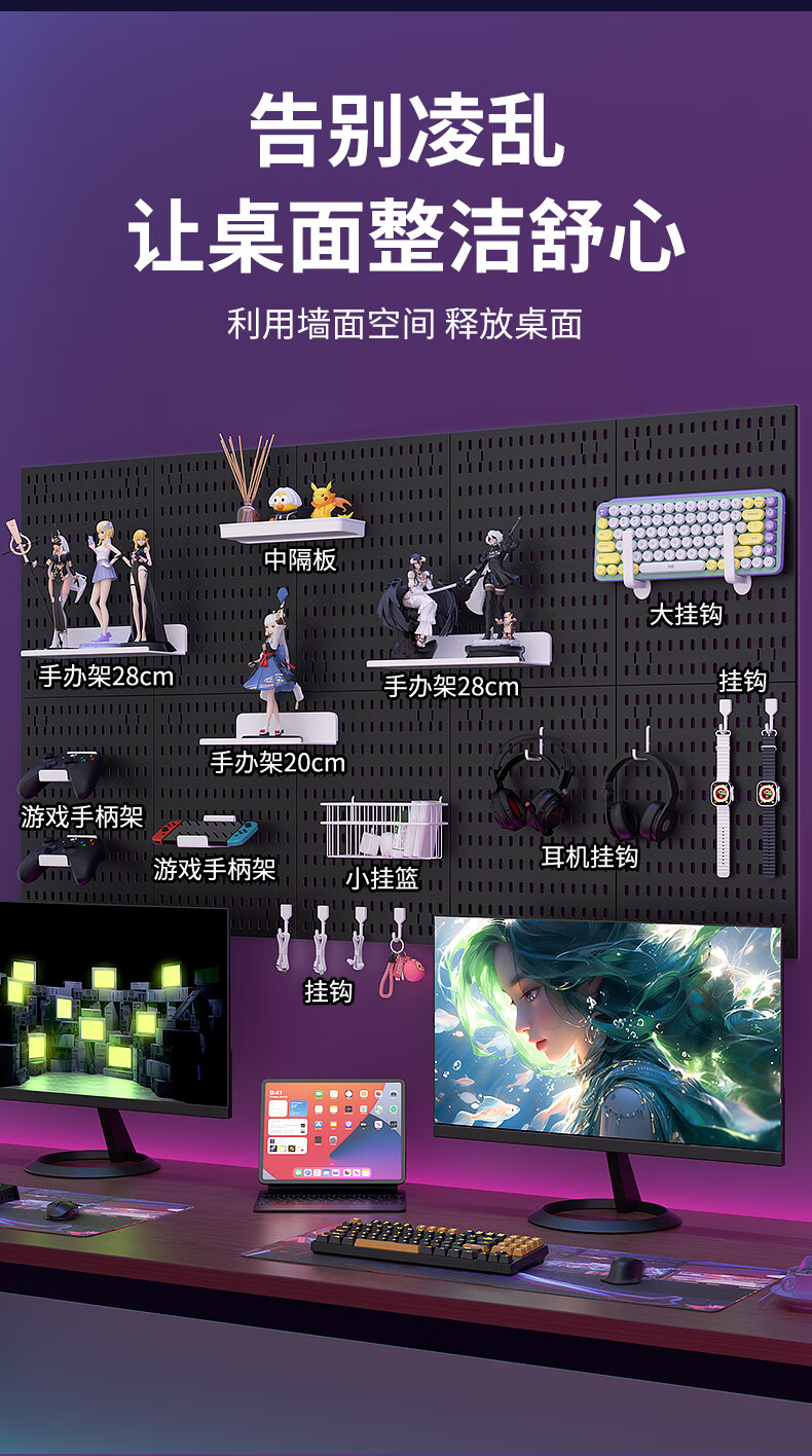 Liofeng gaming room hole board no punching wall keyboard handle storage rack dormitory desktop porch home storage rack 2 keyboard brackets (white)