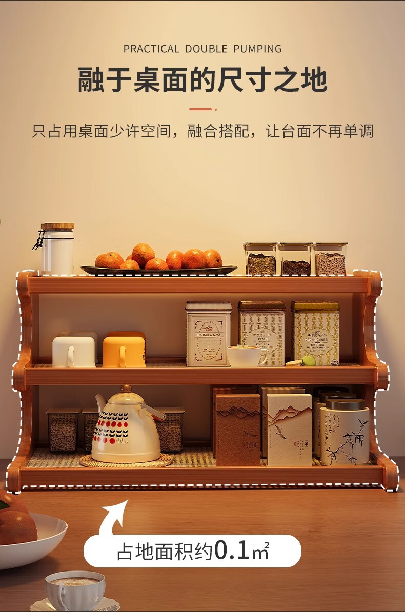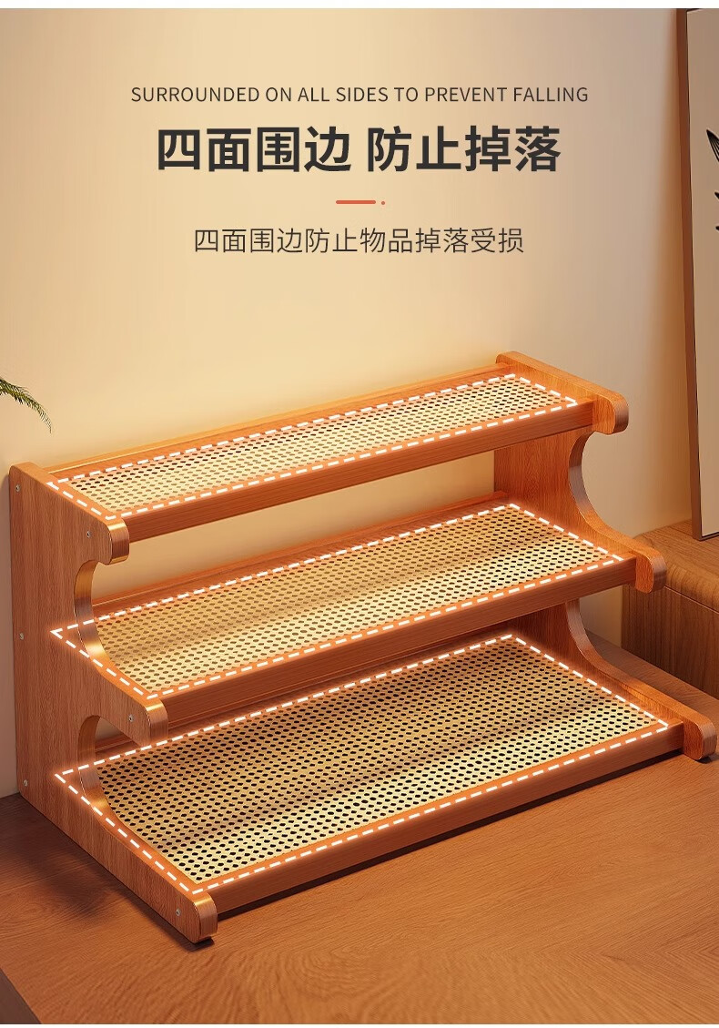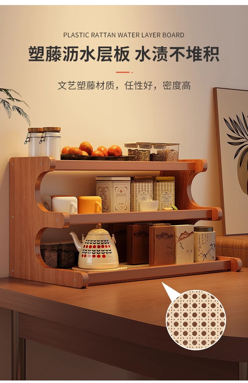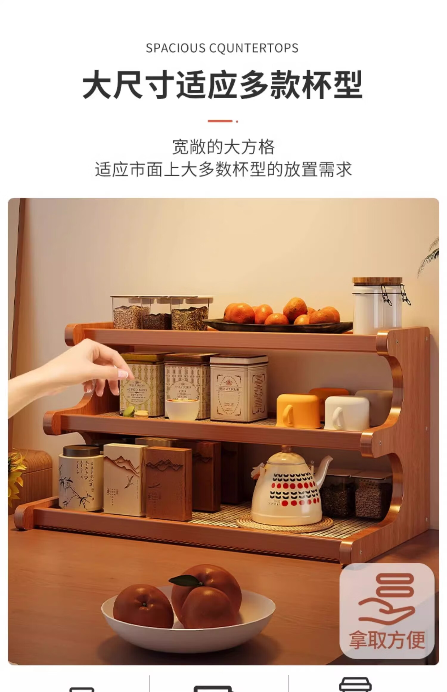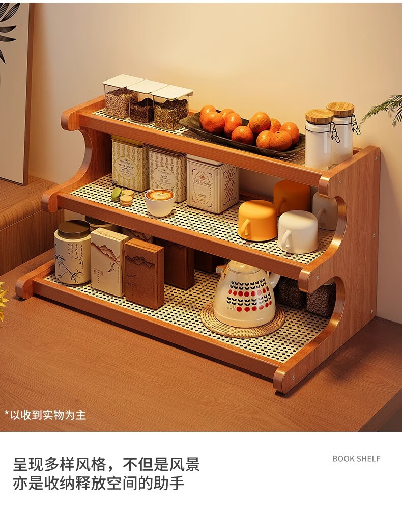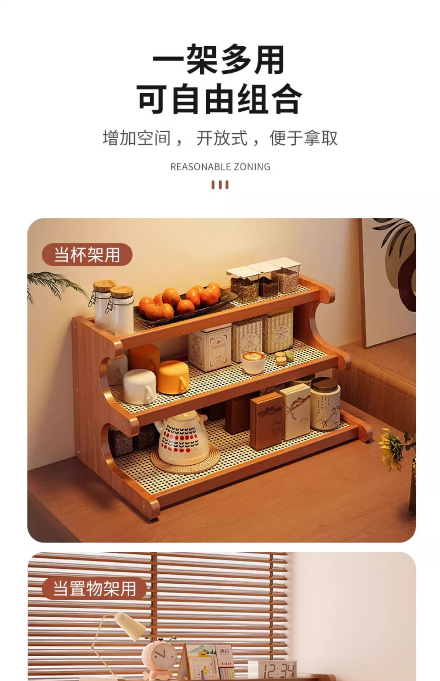 Nifeng Desktop Storage Rack Storage Rack Dining Table Work Station Tea Cup Water Cup Coffee Cup Tea Set Desk Snack Layered Rack 3 Layers 30-Ordinary Plastic Rattan Style