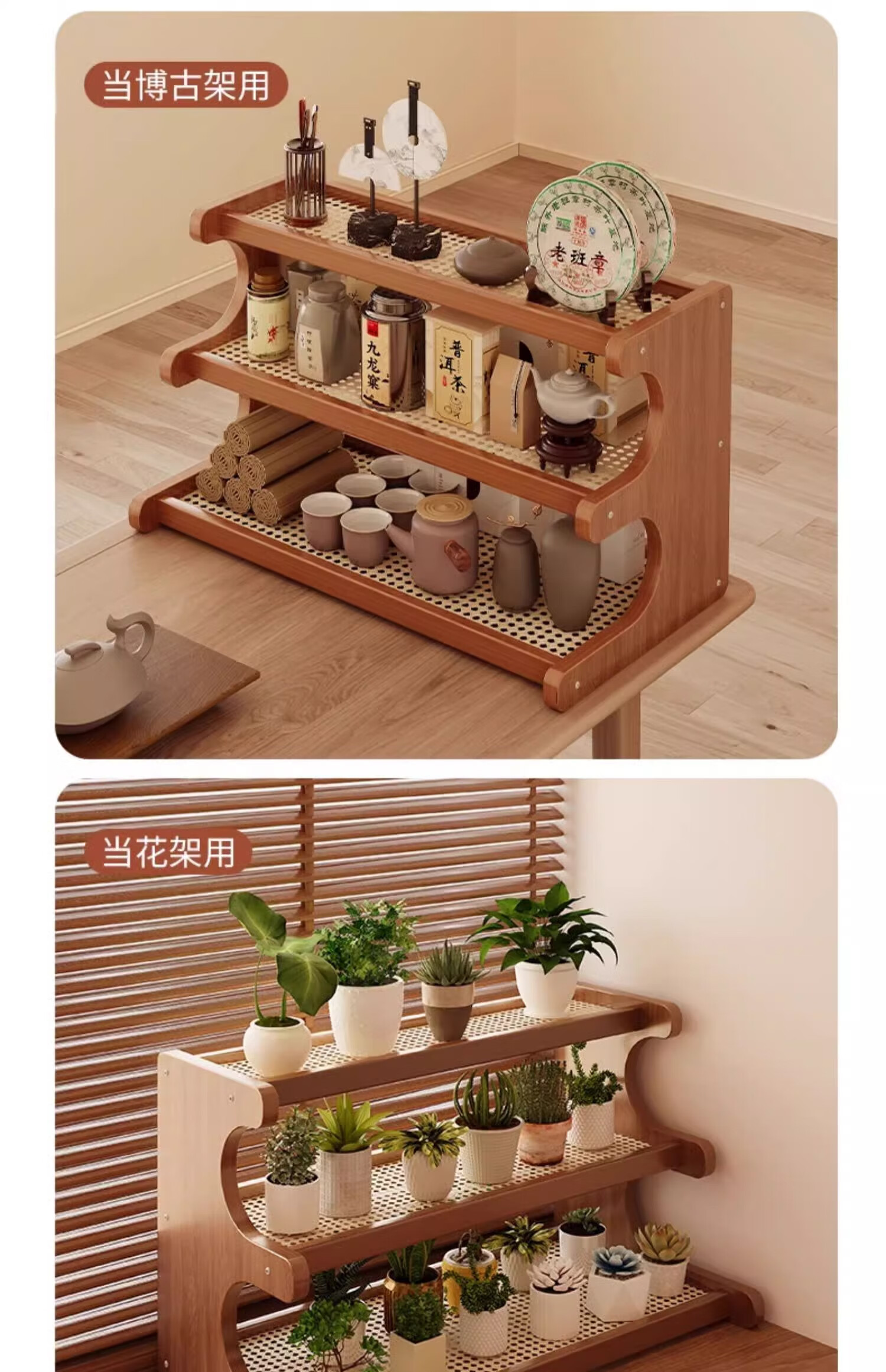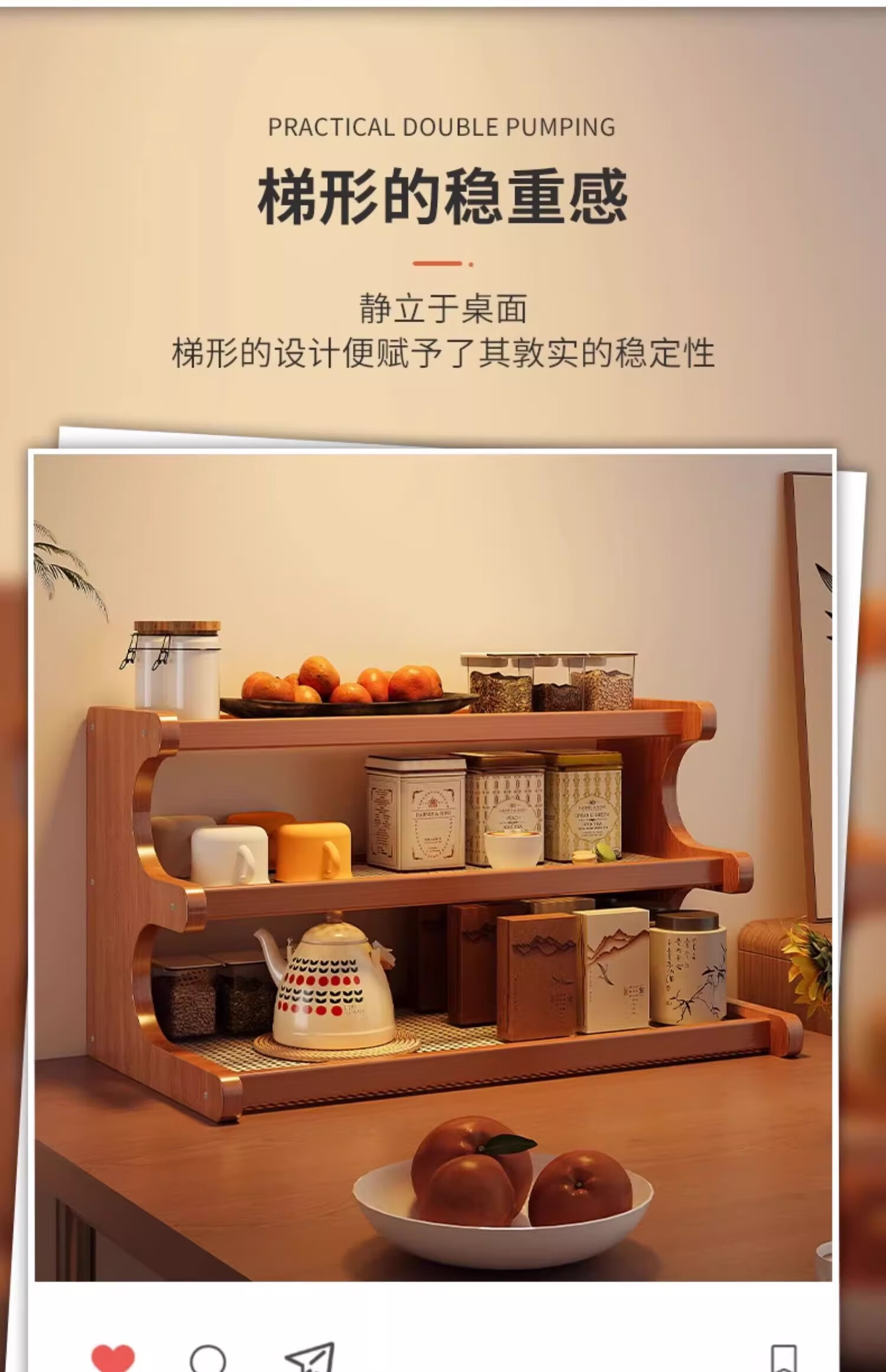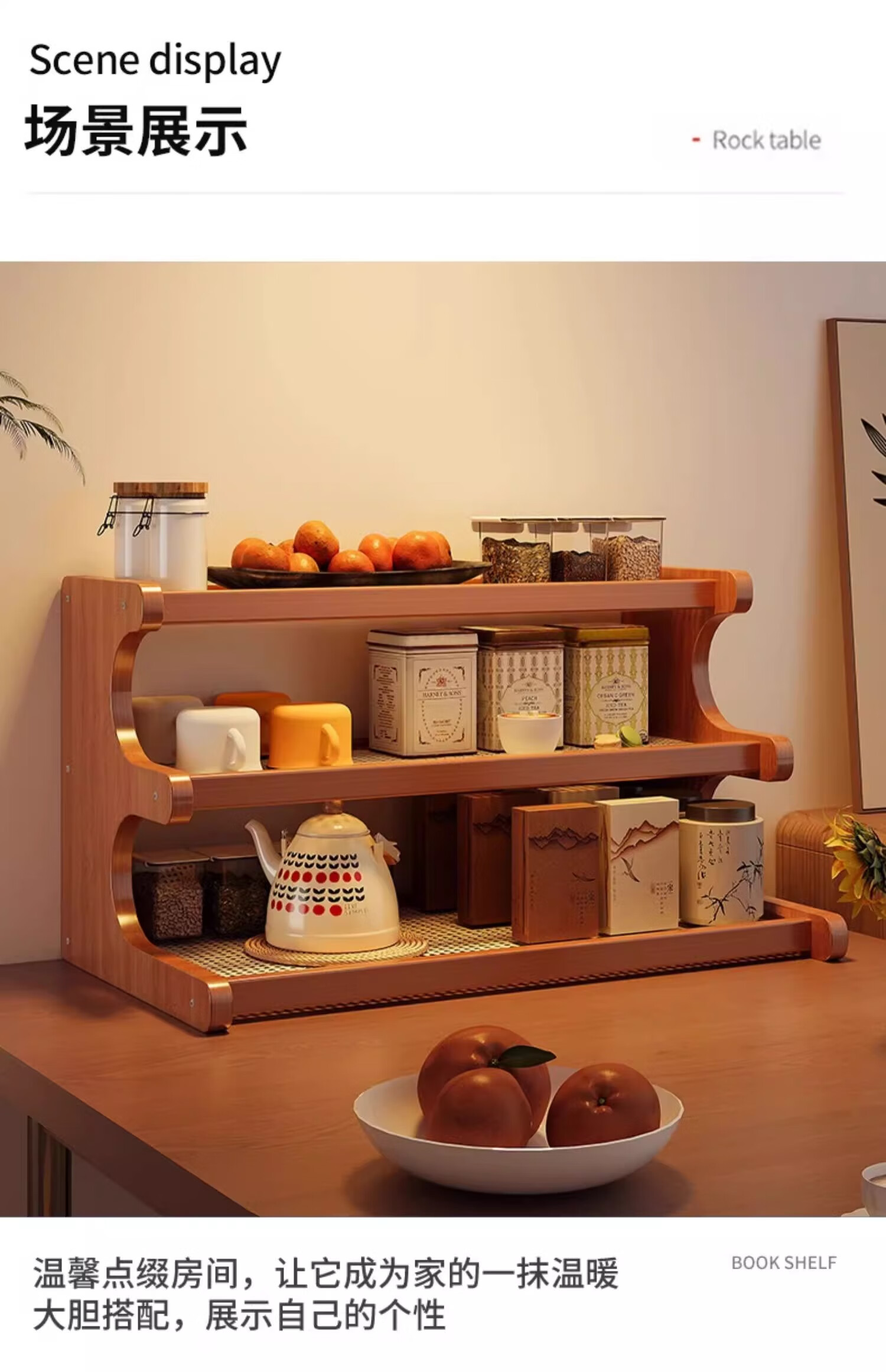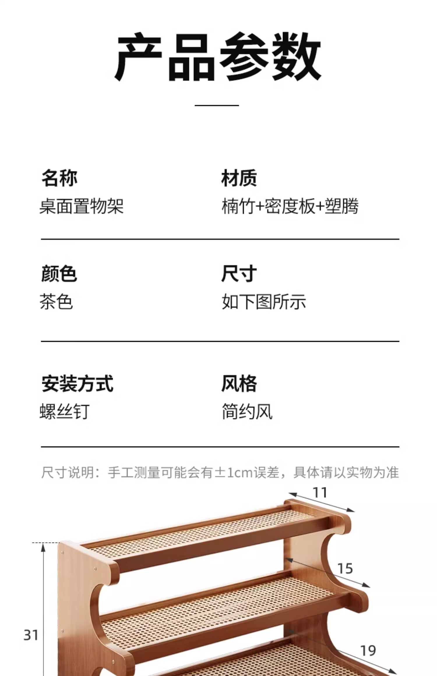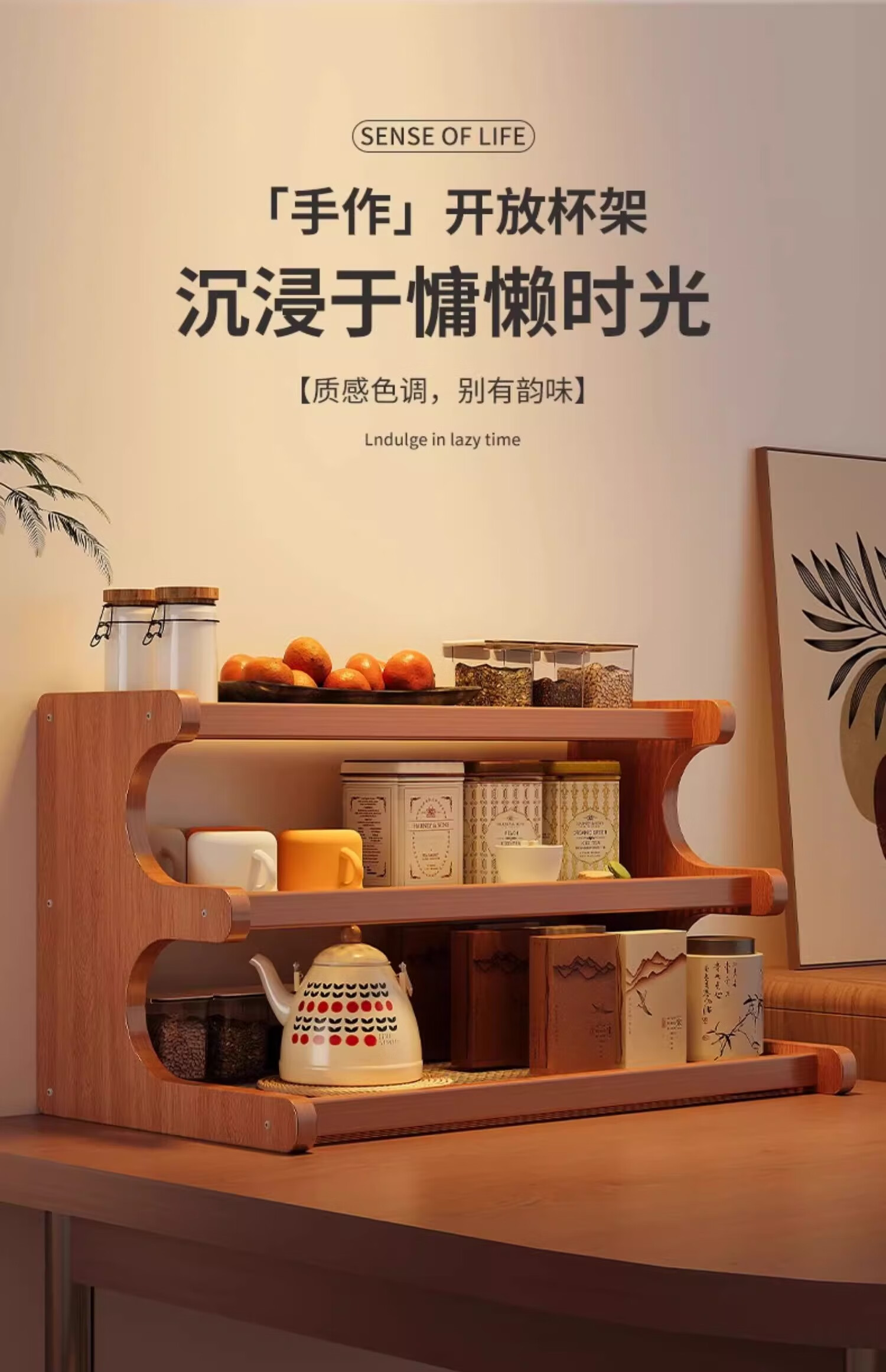 Nifeng Desktop Storage Rack Storage Rack Dining Table Work Station Tea Cup Water Cup Coffee Cup Tea Set Desk Snack Layered Rack 3 Layers 30-Ordinary Plastic Rattan Style