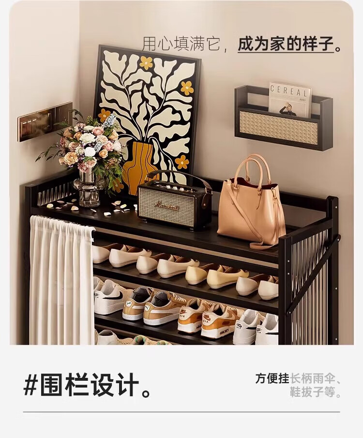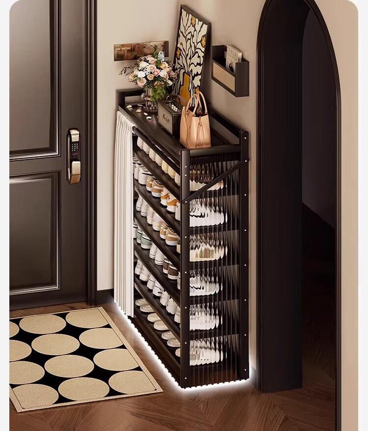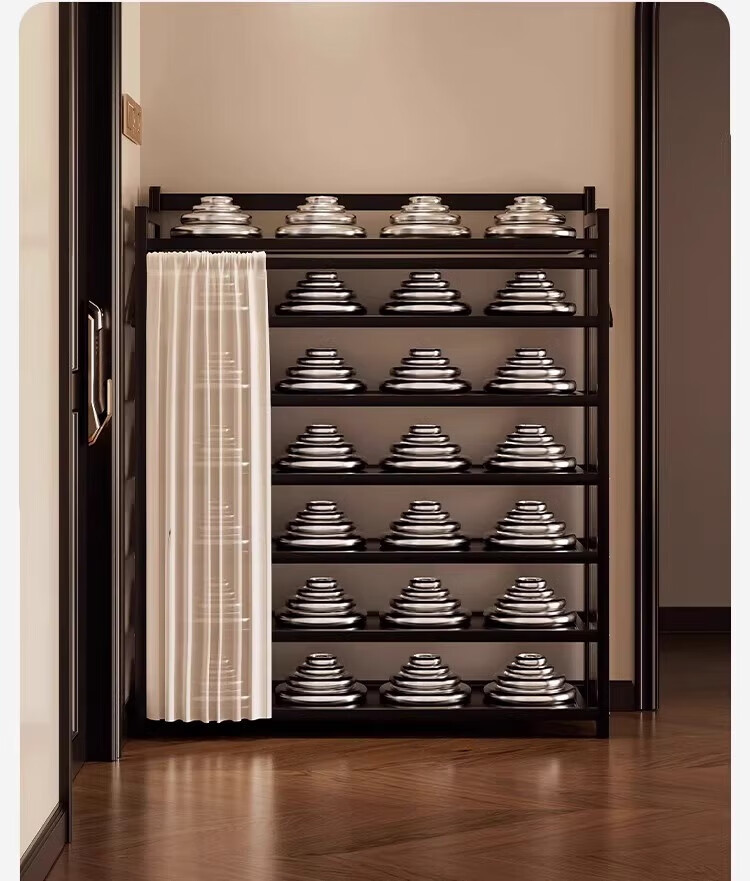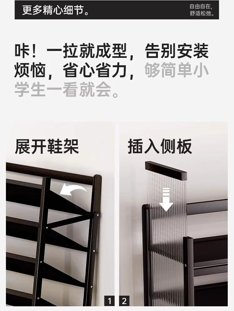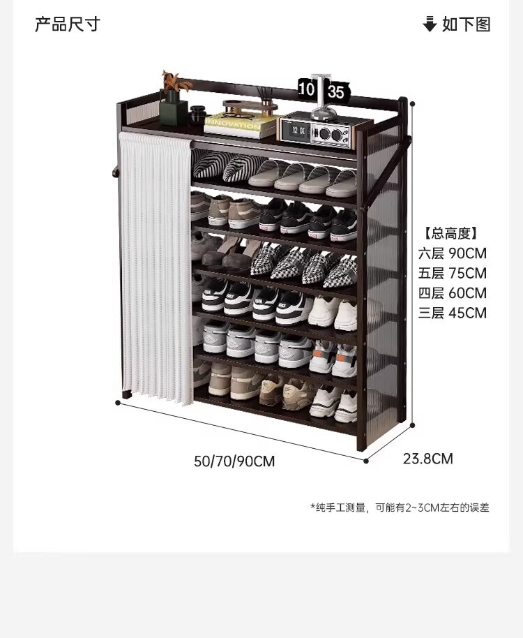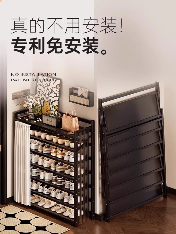 Yimo shoe rack simple home door folding installation-free shoe cabinet storage multi-layer dust-proof storage rack black 5 layers 70
