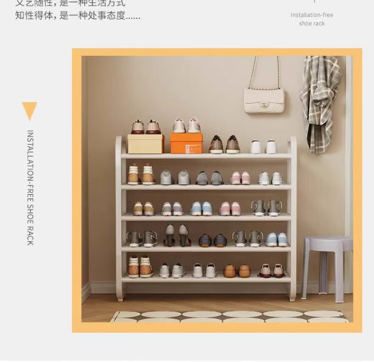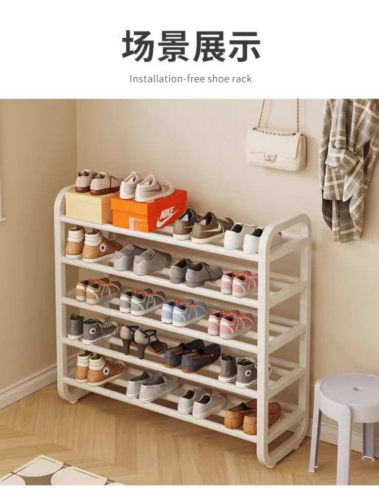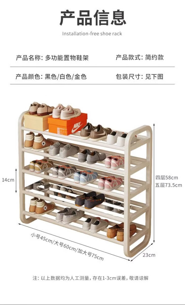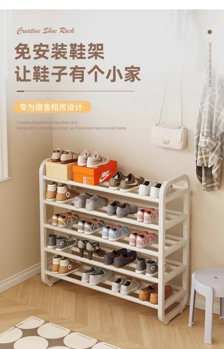 Kunfeng home entry shoe rack iron multi-layer door entry indoor dormitory rental house essential simple narrow shoe cabinet four layers white--45*23*58CM basic style