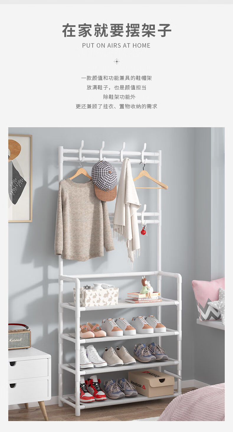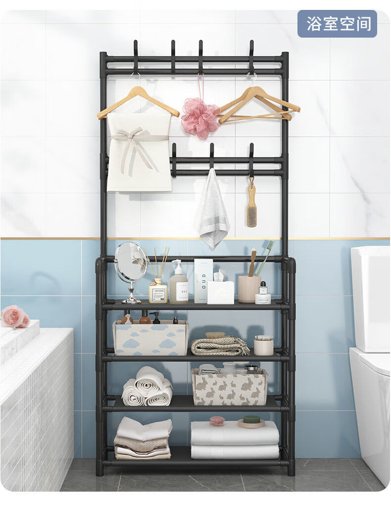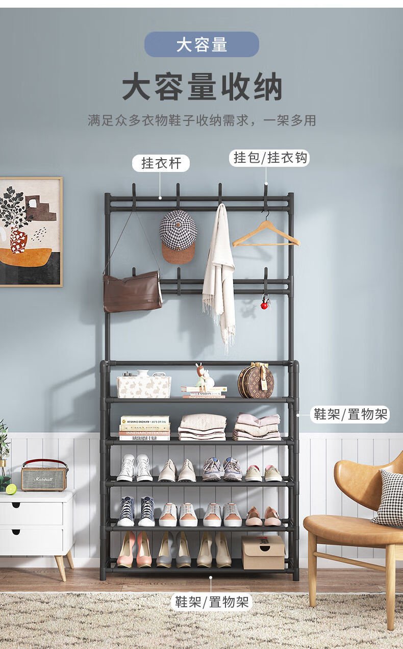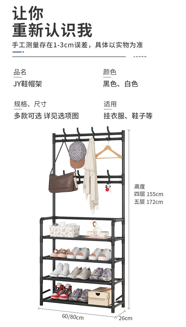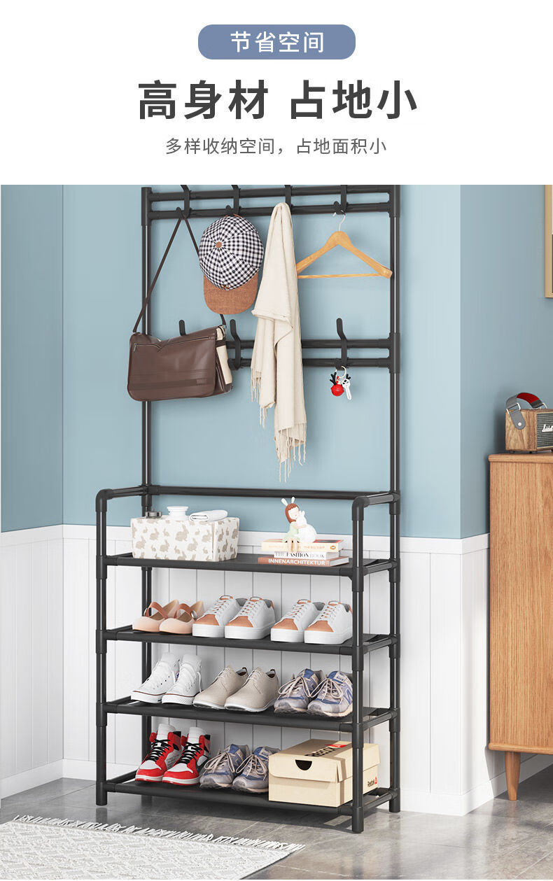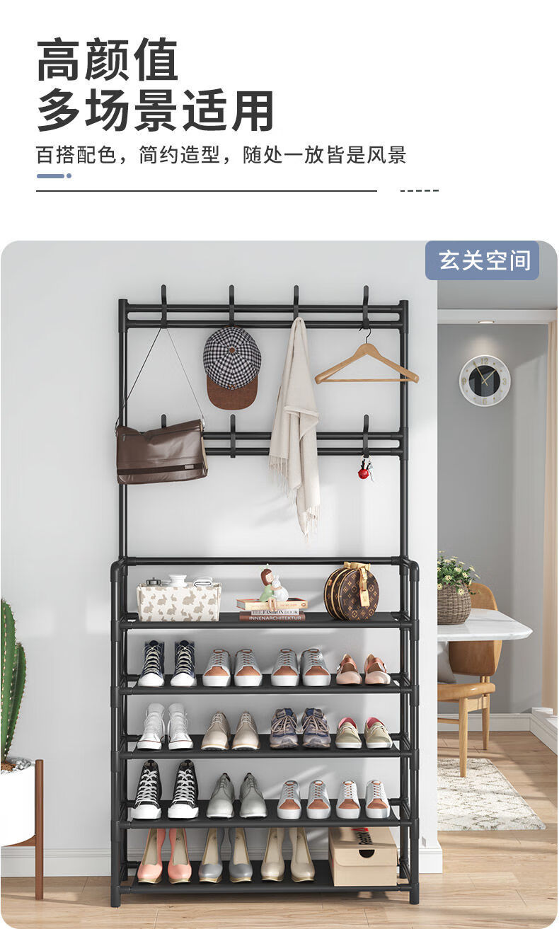 Lohas time simple shoe rack home door multi-layer indoor student dormitory rental house shoe cabinet storage rack coat and hat rack black 5 layers 80cm