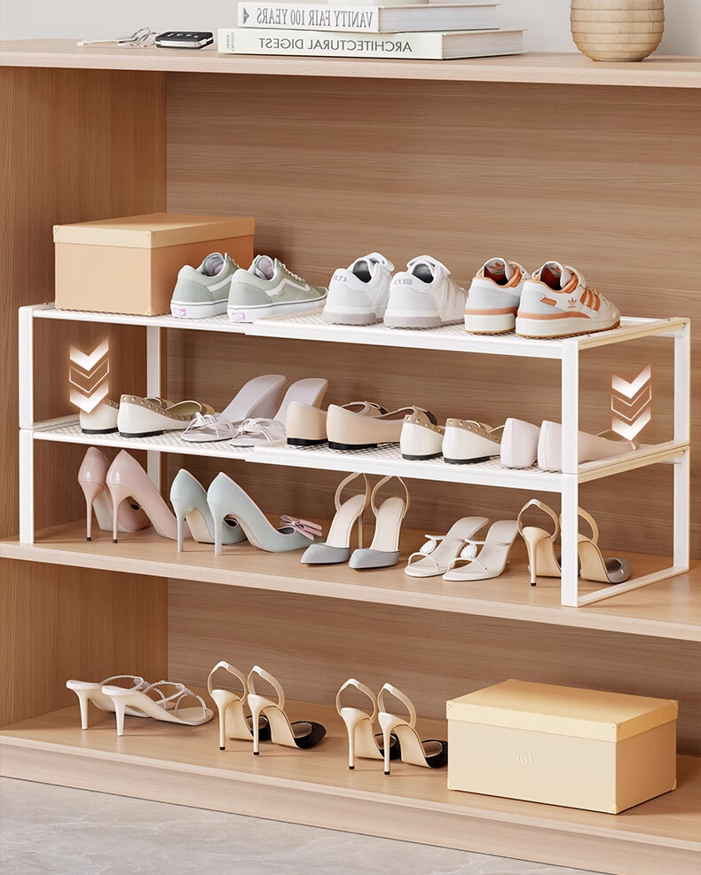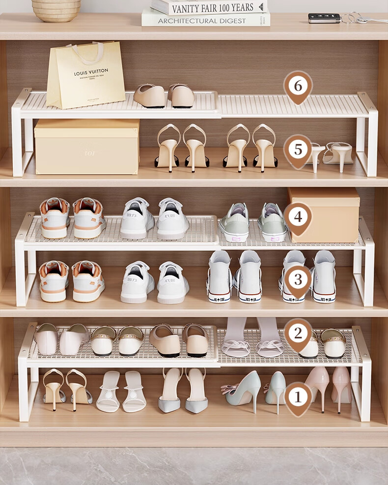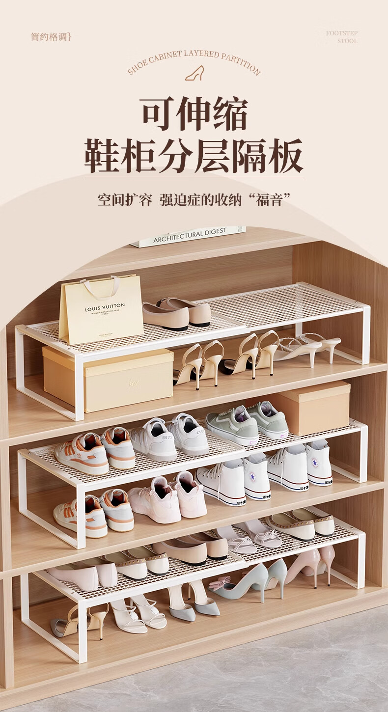 Julihui shoe rack space-saving shoe storage artifact compartment rack shoe cabinet cabinet built-in partition retractable layered storage rack white retractable length 38-62CM width 27CM height 22CM single layer
