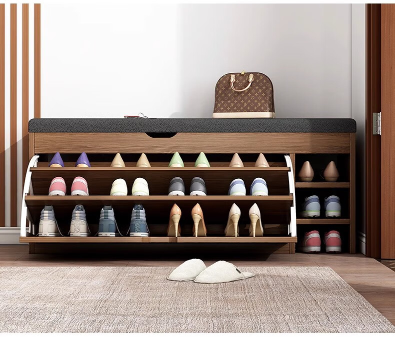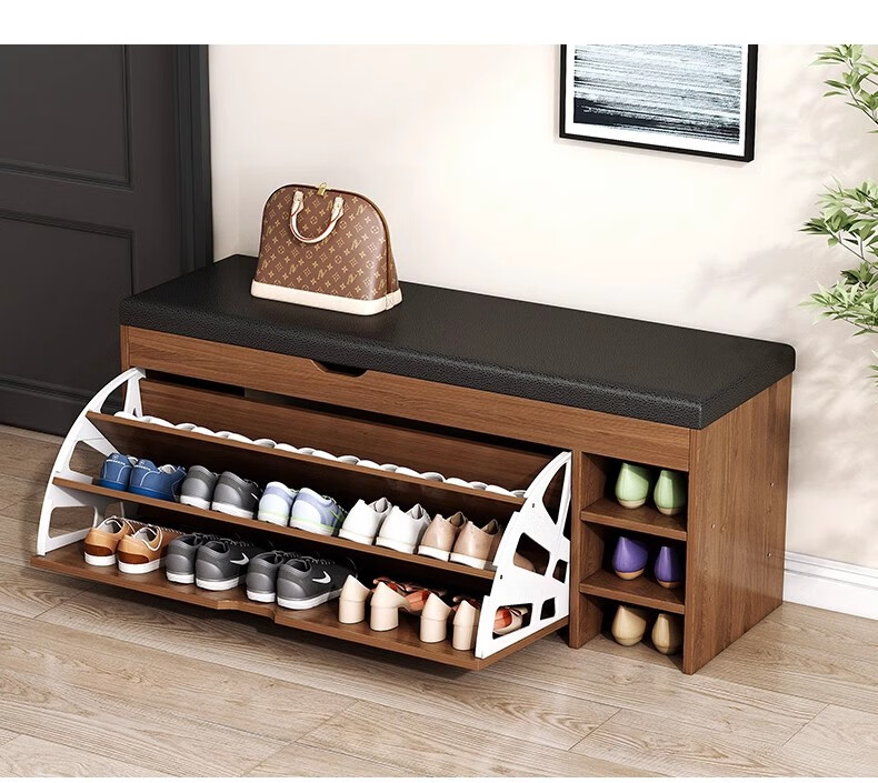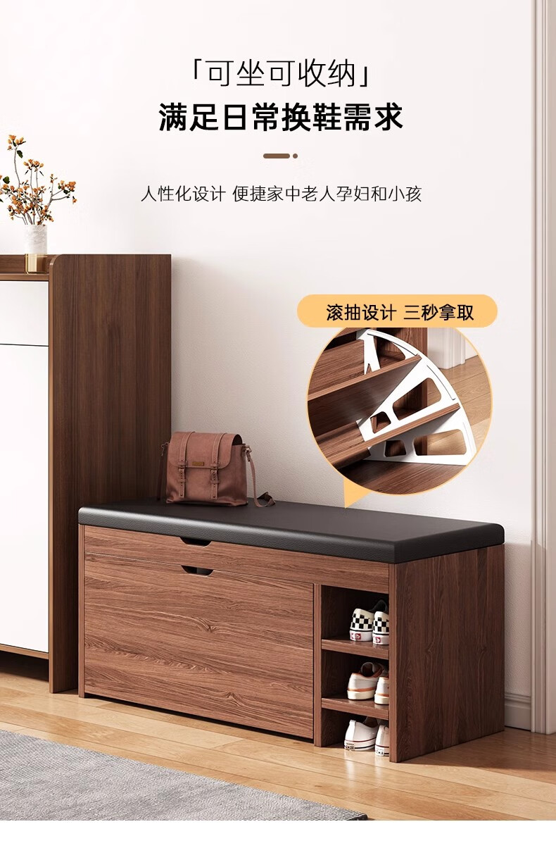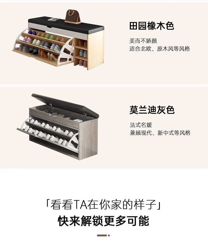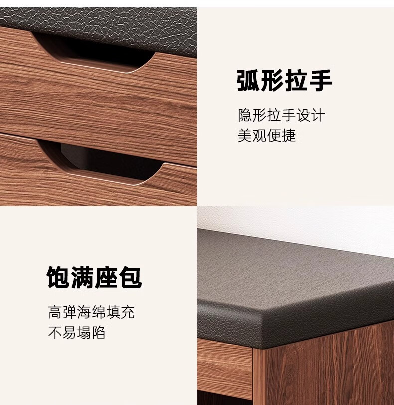 Shoe-changing stool at home, shoe cabinet and stool at the door, integrated bucket shoe rack, entrance good storage rack, drawer boot seat, 100cm wilderness oak color