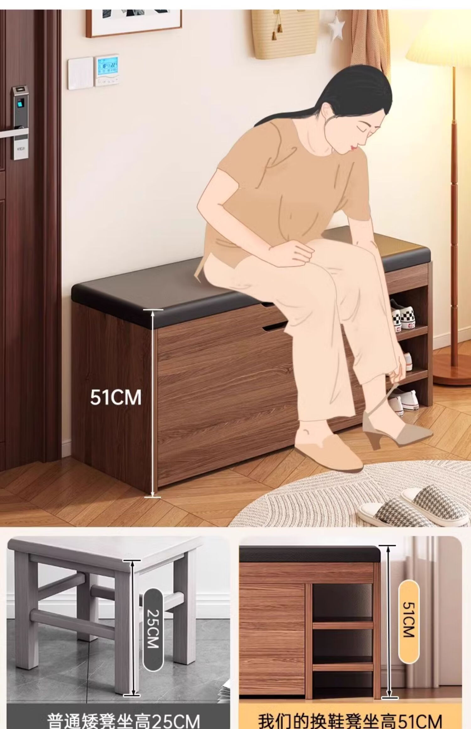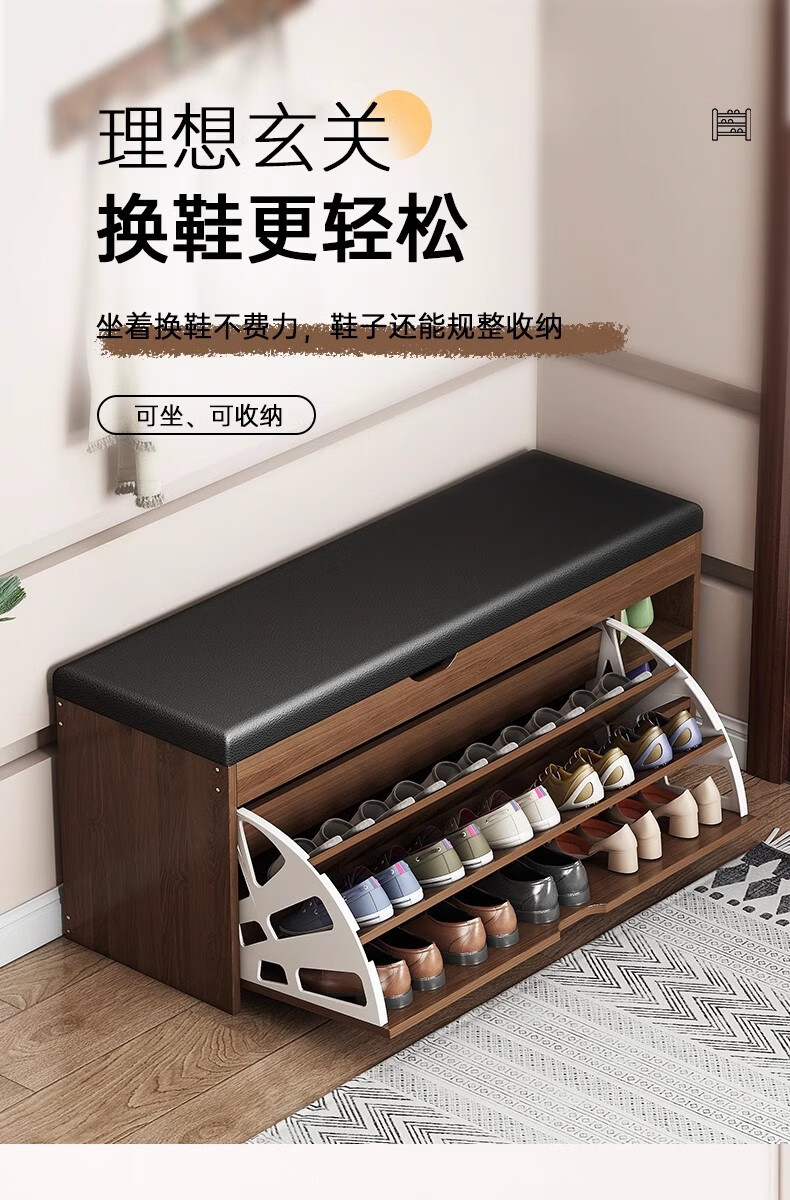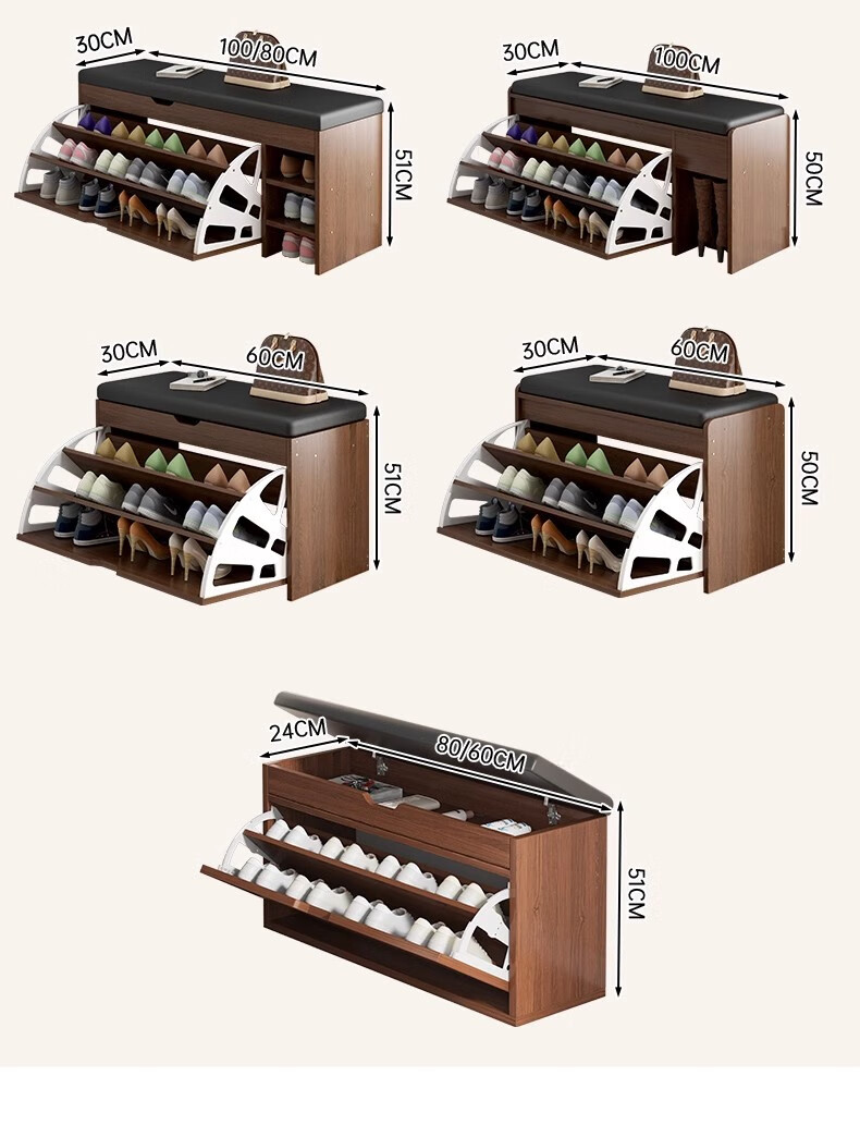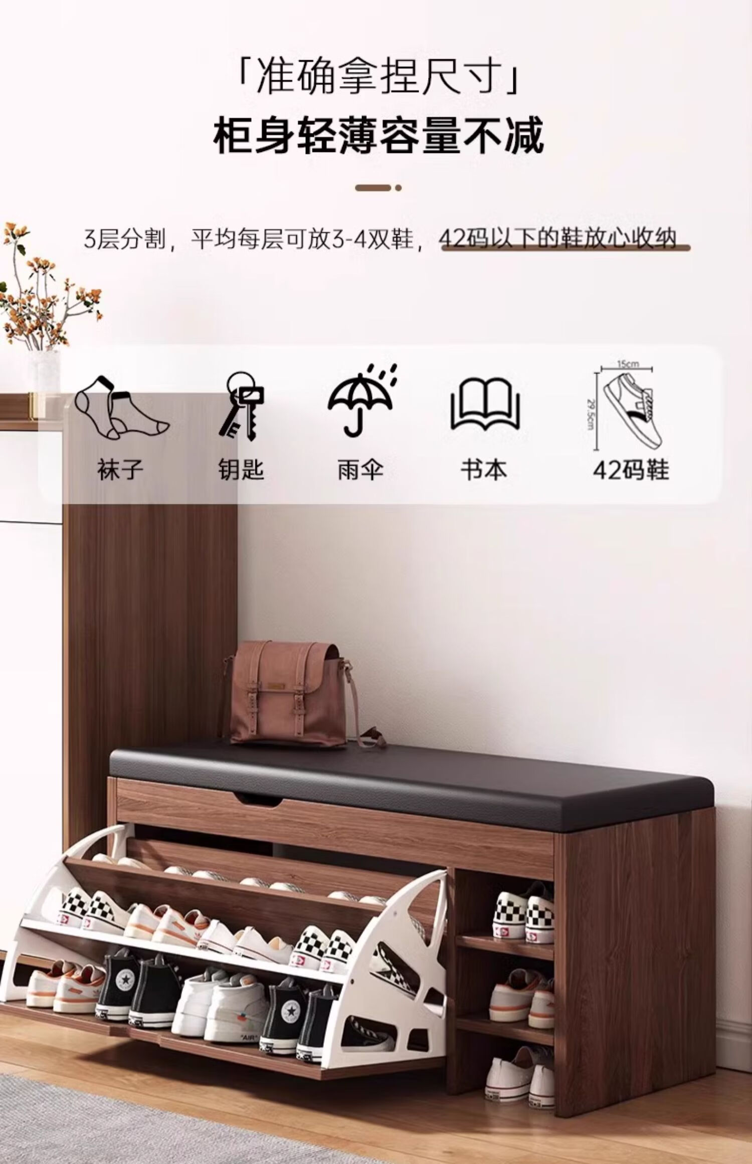 Shoe-changing stool at home, shoe cabinet and stool at the door, integrated bucket shoe rack, entrance good storage rack, drawer boot seat, 100cm wilderness oak color