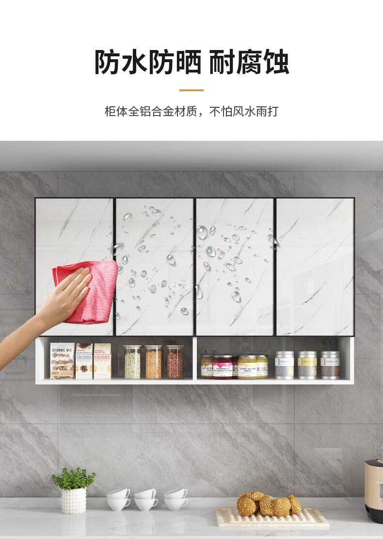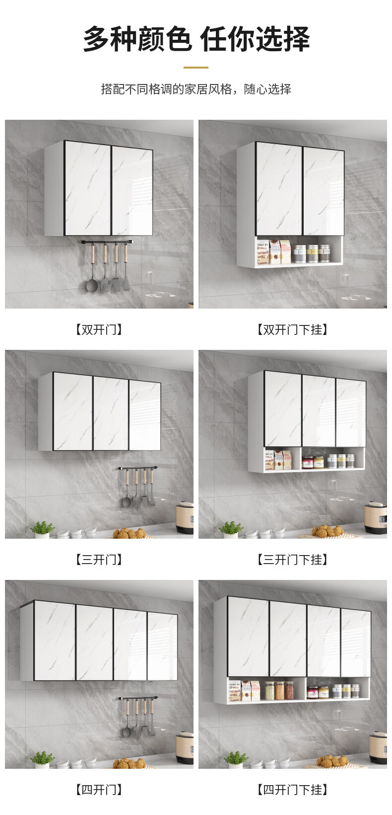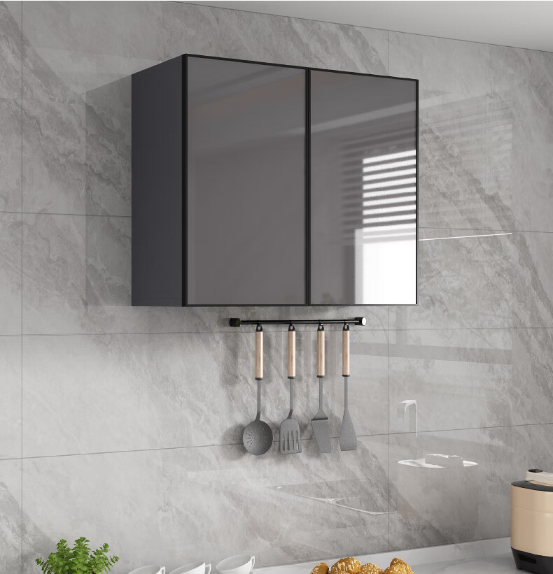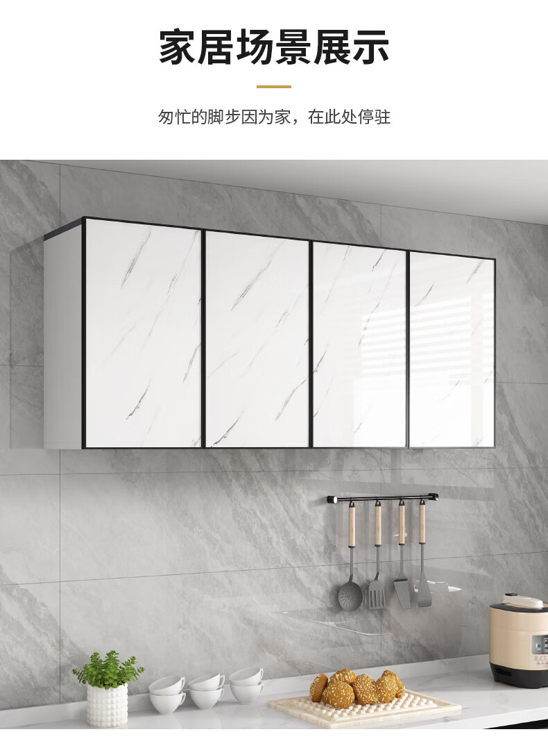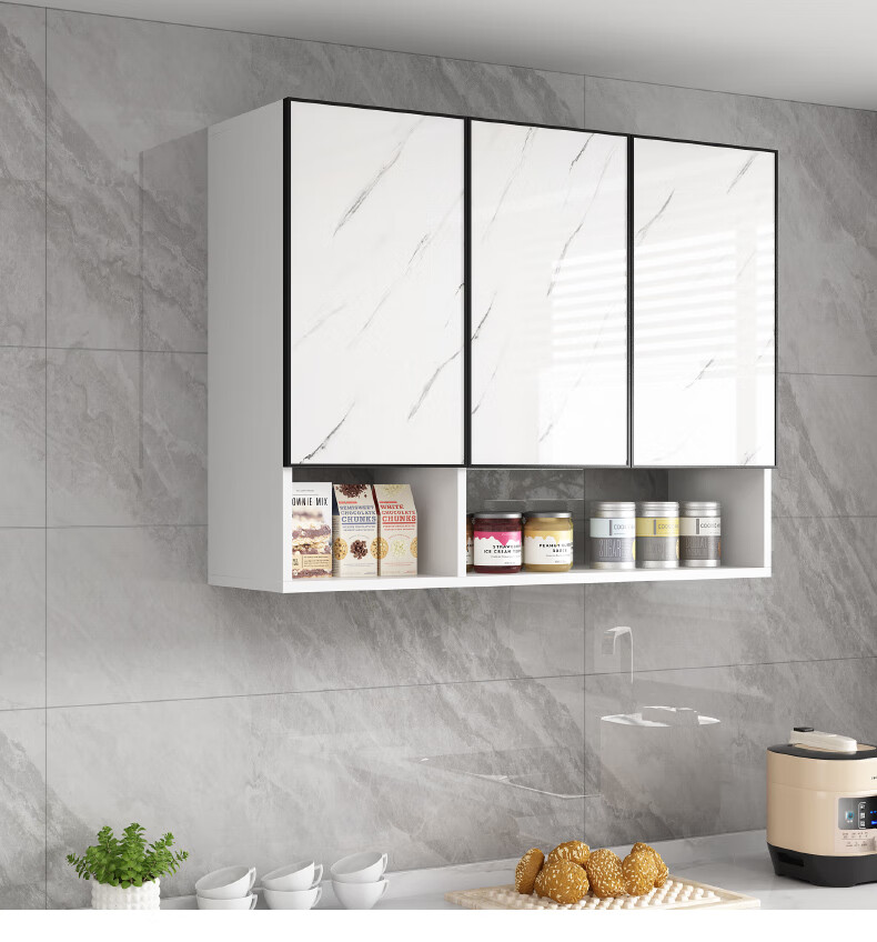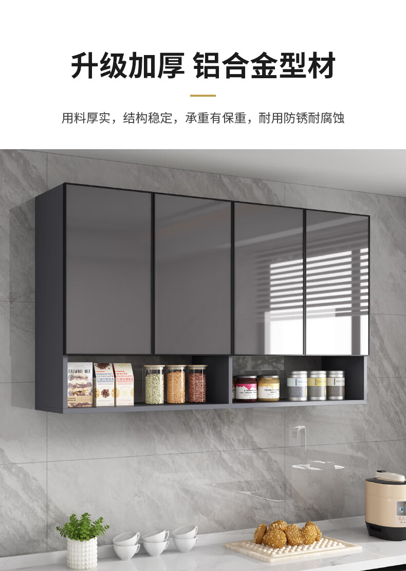Qinglin wood aluminum alloy wall cabinet wall cabinet kitchen wall cabinet wall storage cabinet balcony bathroom solid wood wall cabinet storage hanging cabinet solid wood 90*40*80 three doors space aluminum door assembly