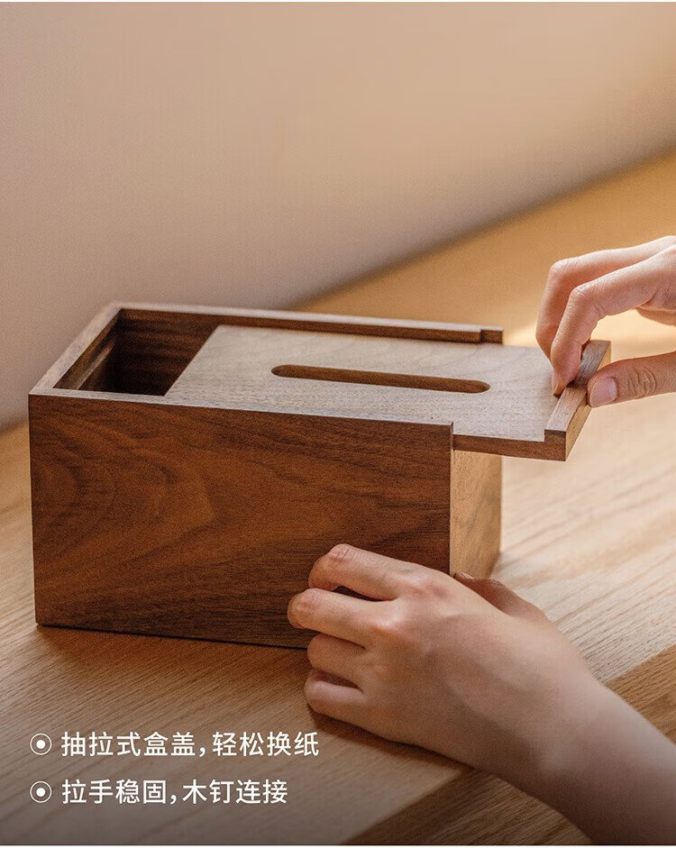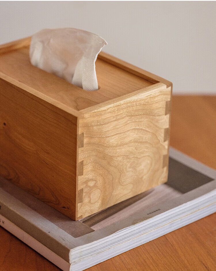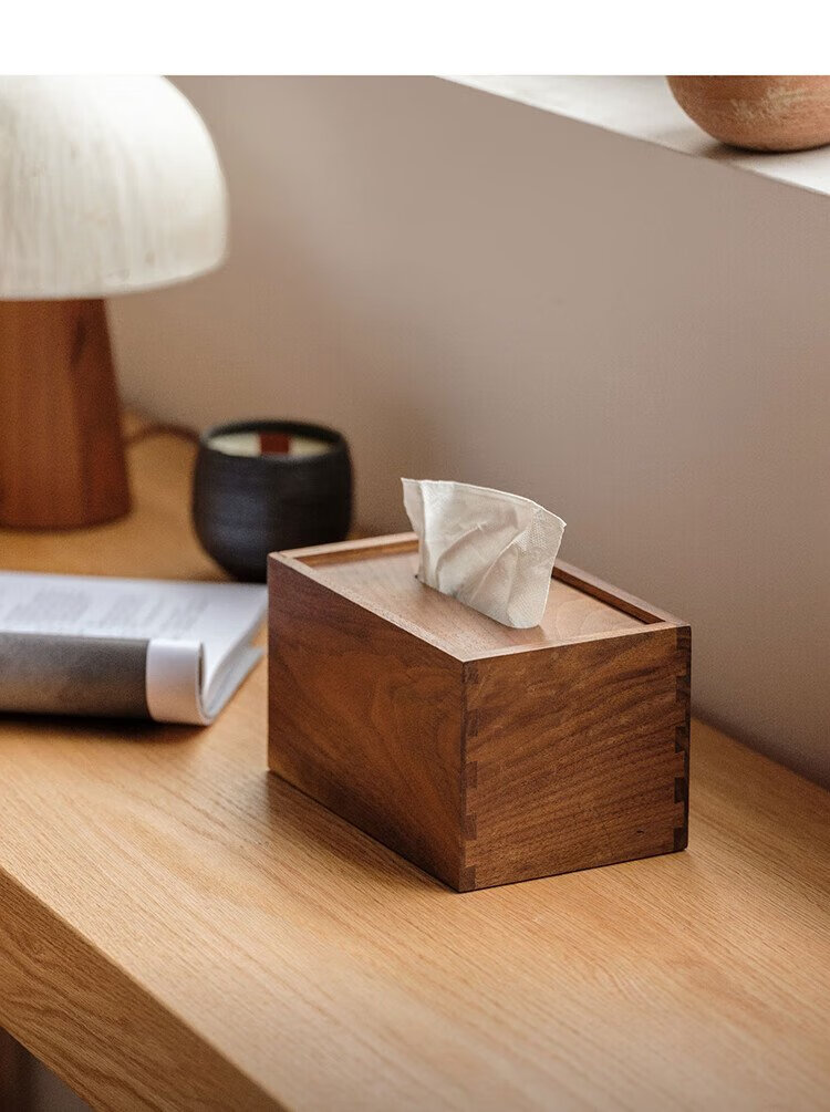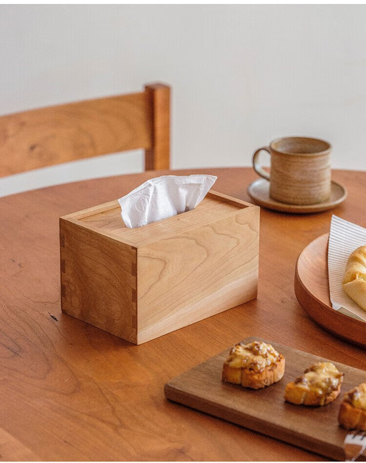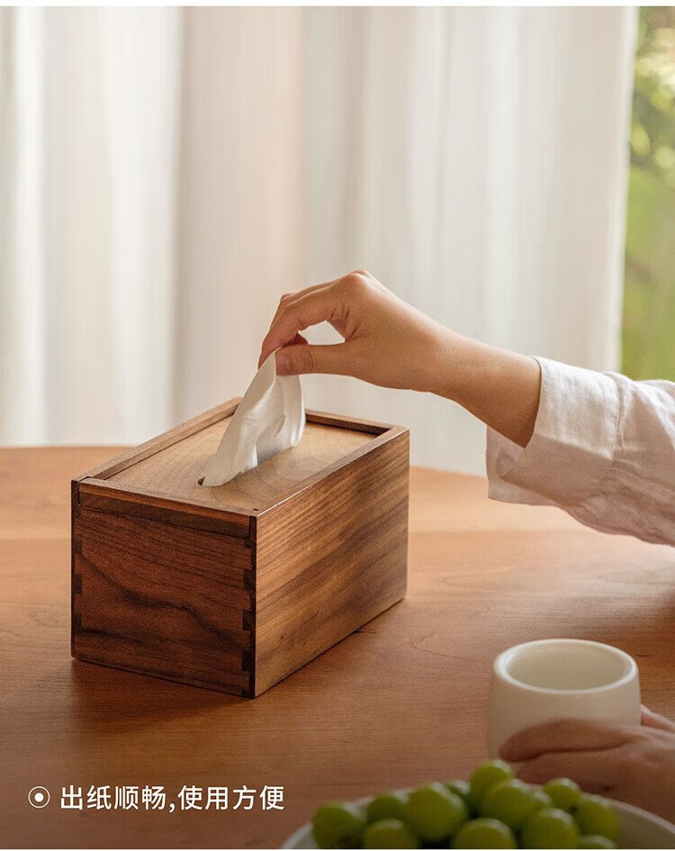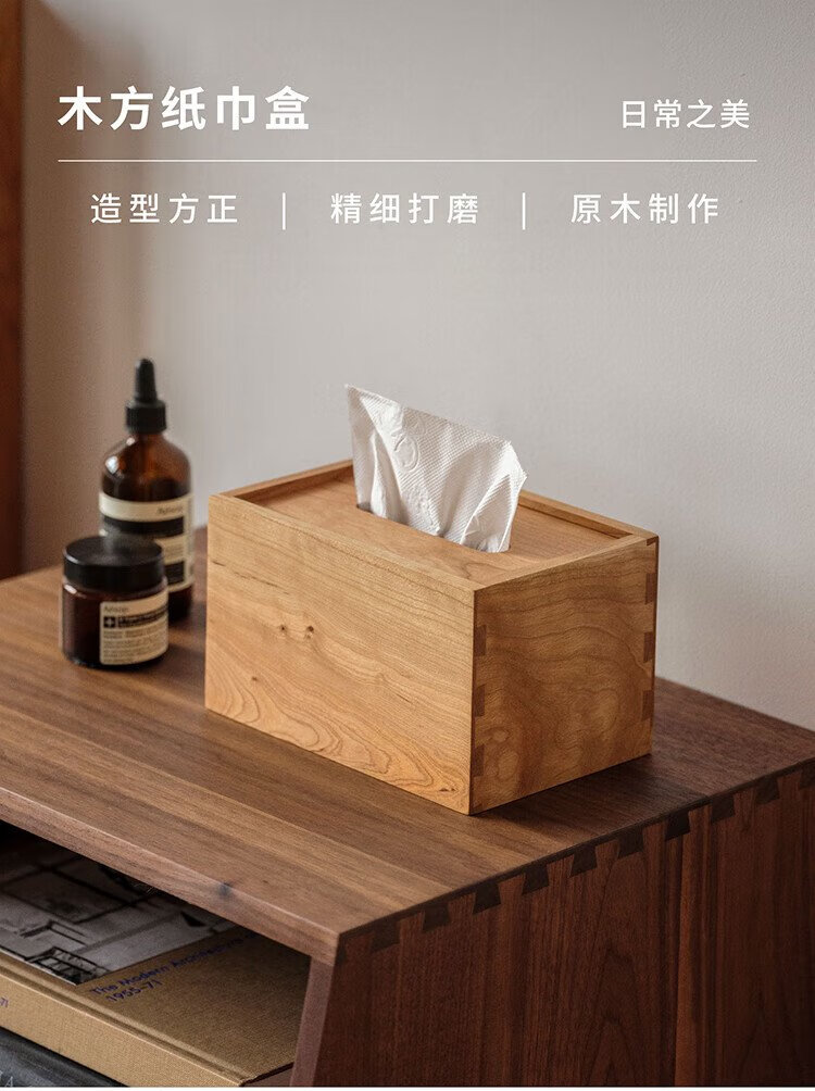 Mumo Wood Square Tissue Box Black Walnut Cherry Wood Solid Wood Tissue Box Living Room Simple Home Storage Storage Paper Box Cherry Wood Pre-sale Shipping at the End of April