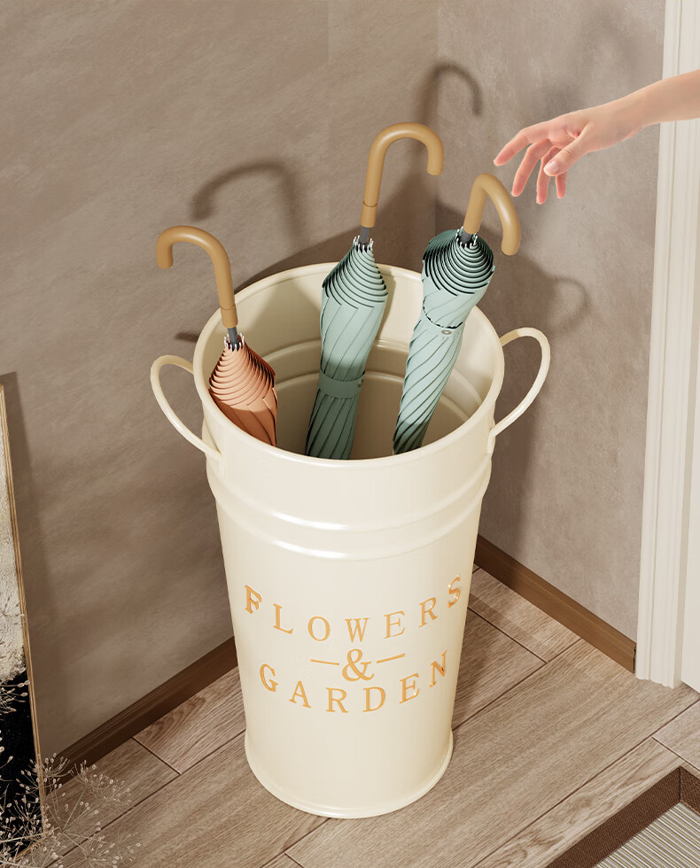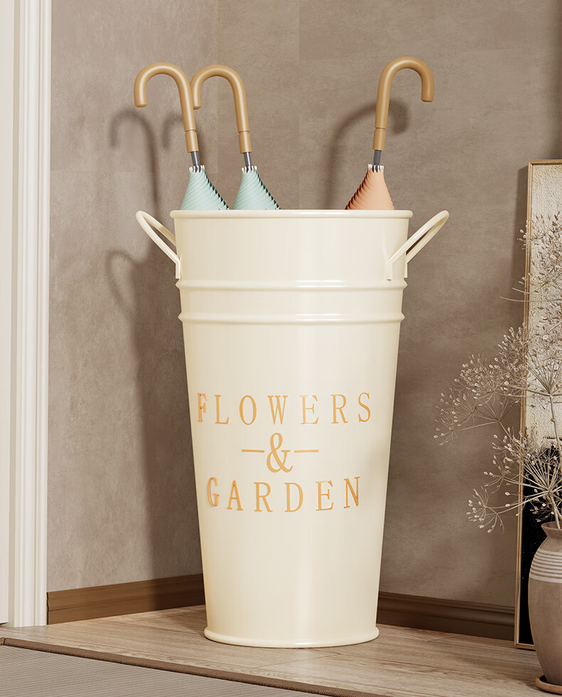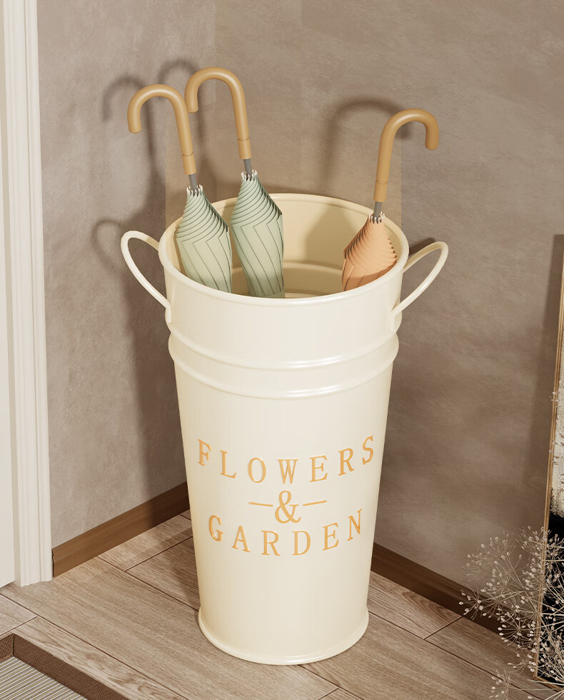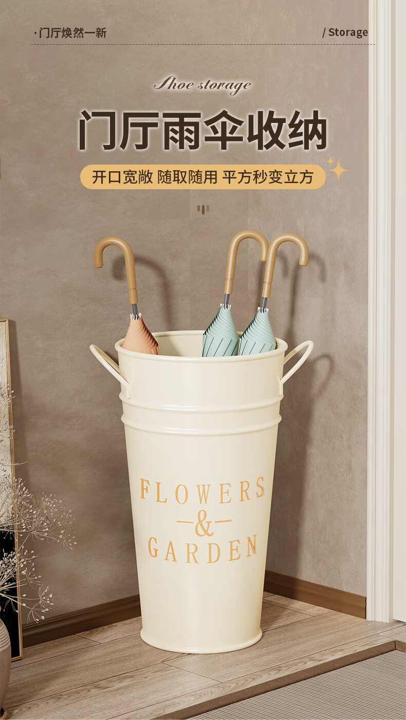 Julihui Umbrella Rack Storage Rack Home Door Umbrella Barrel Commercial Lobby Entry Drain Umbrella Barrel Umbrella Rack Home Storage Rack Rice White Iron Barrel Height 40cm