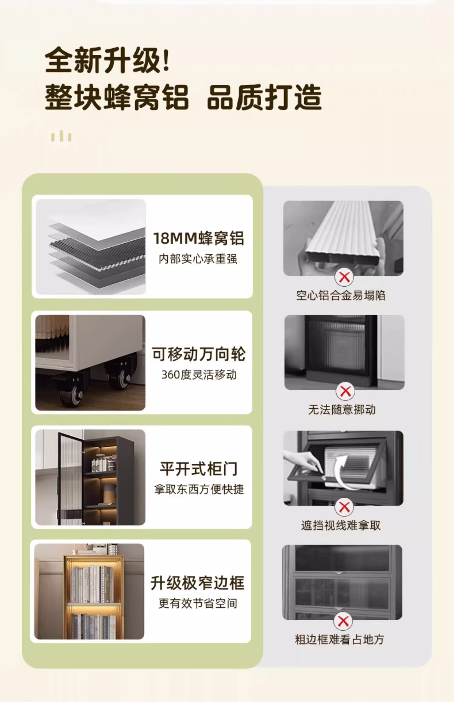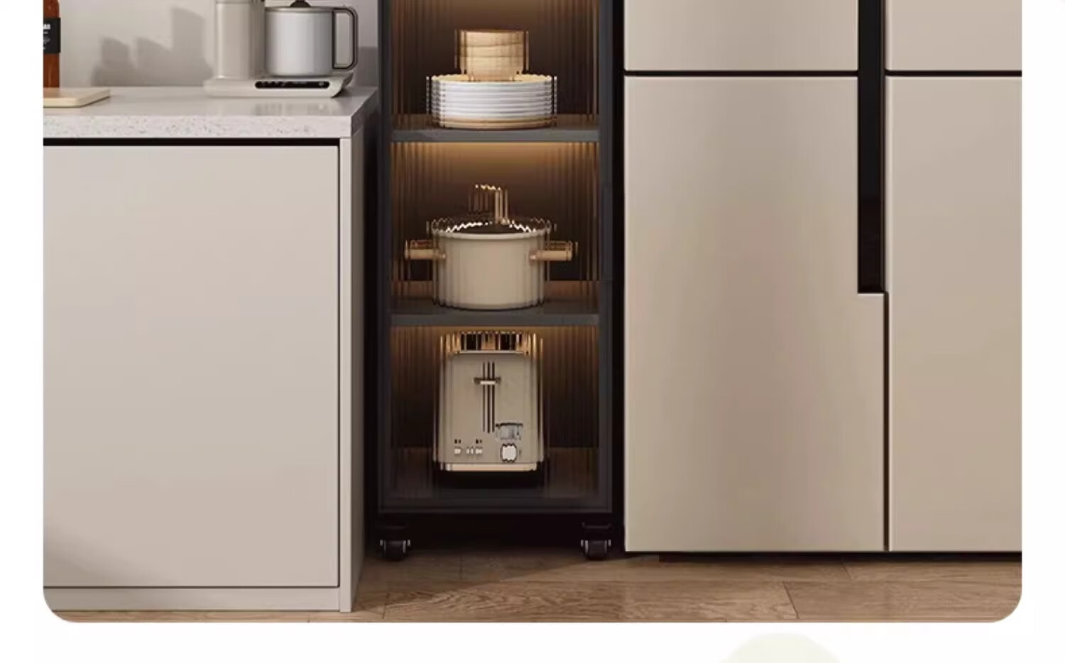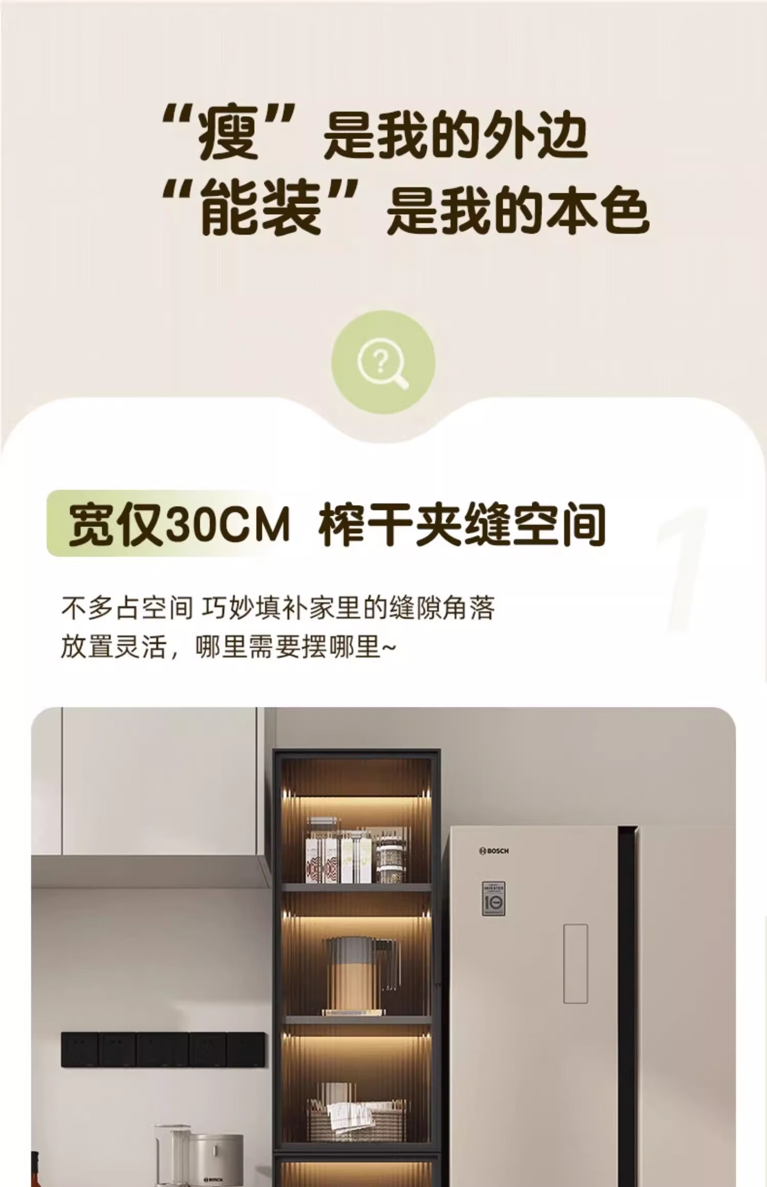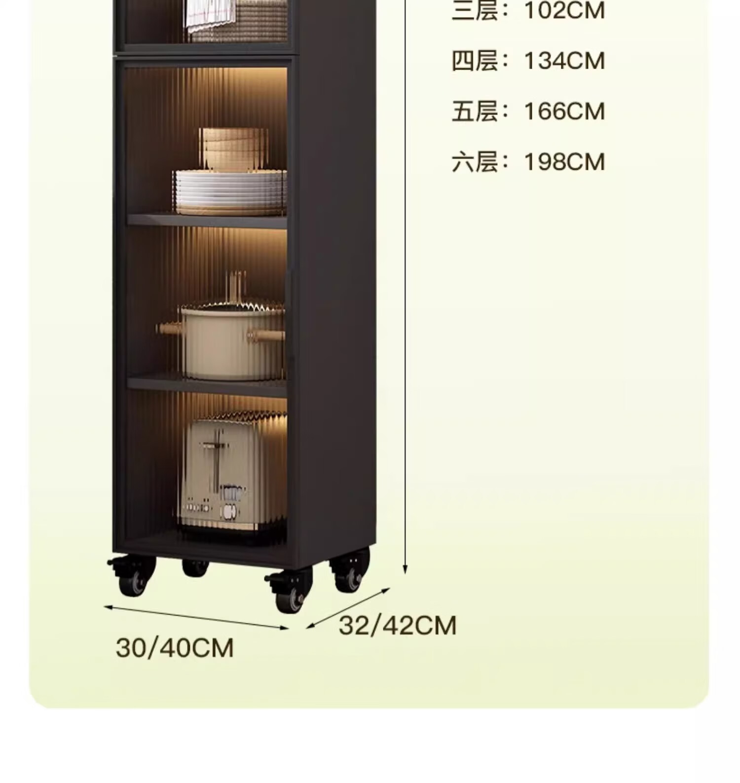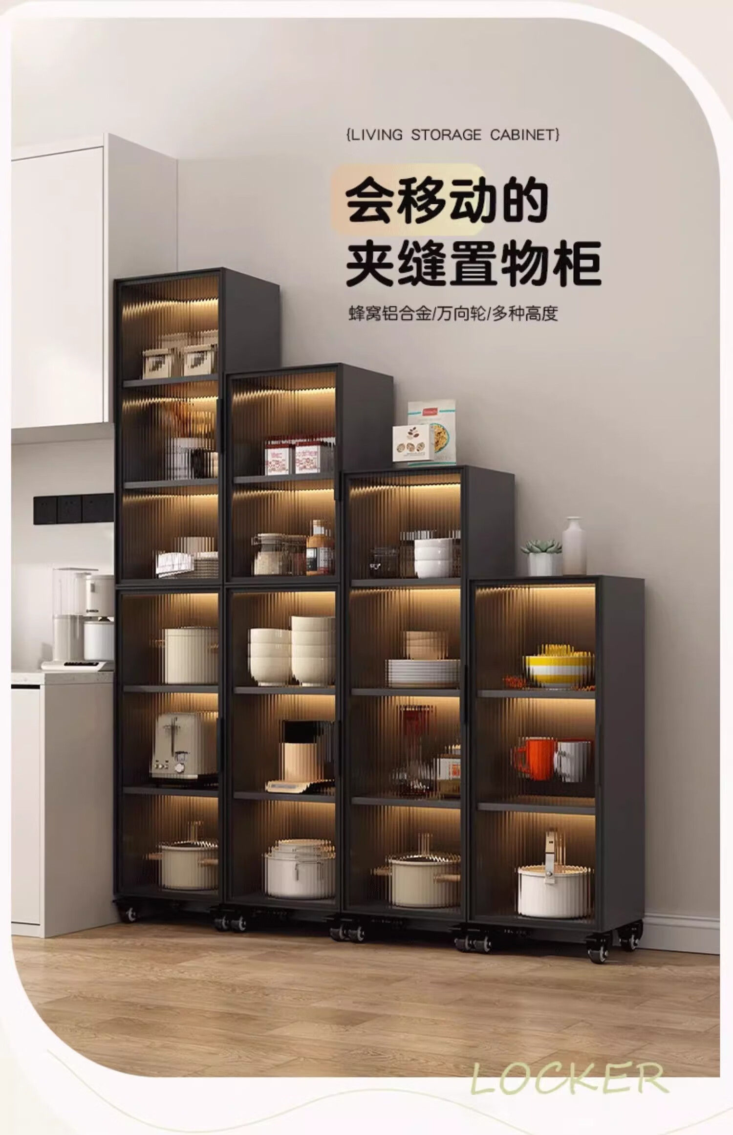 Shangshiti honeycomb aluminum alloy kitchen gap storage cabinet with wheels floor-standing multi-layer sideboard refrigerator gap storage rack dark gray three-layer model 30*32*102cm