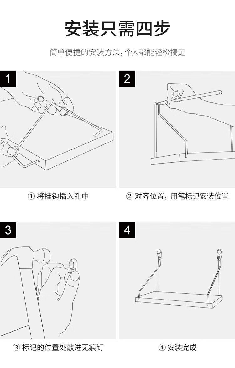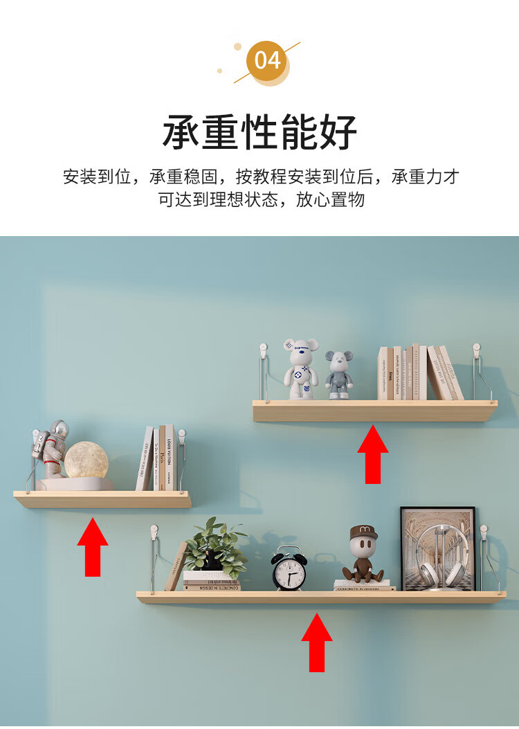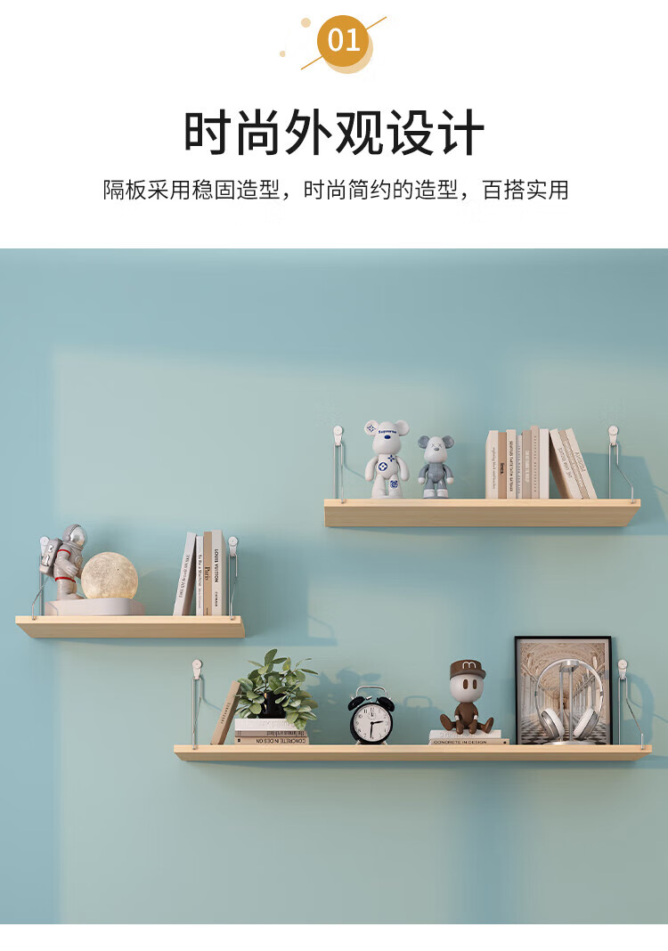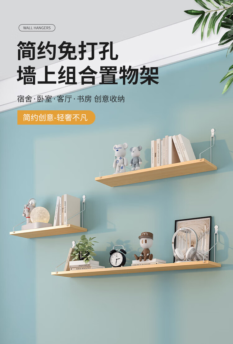 Shuaili punch-free wall shelf wall rack guest restaurant wall-mounted bookshelf one-word partition three-piece set SL8411