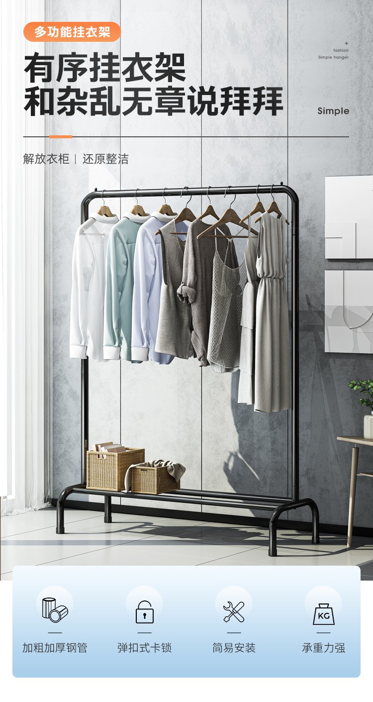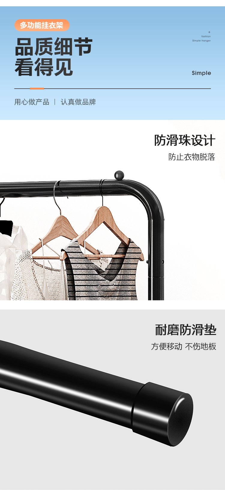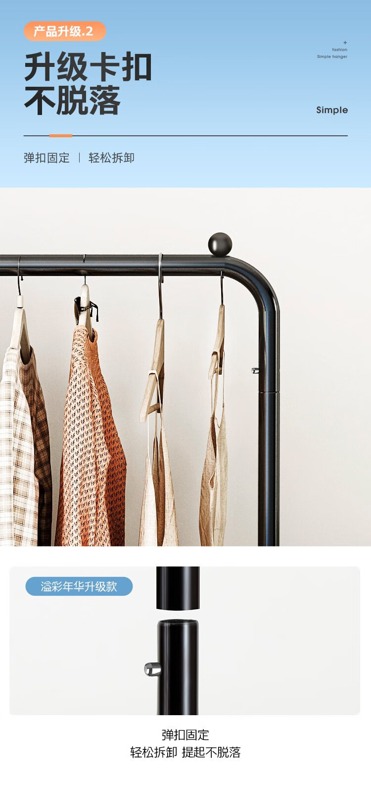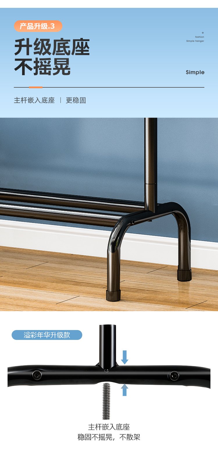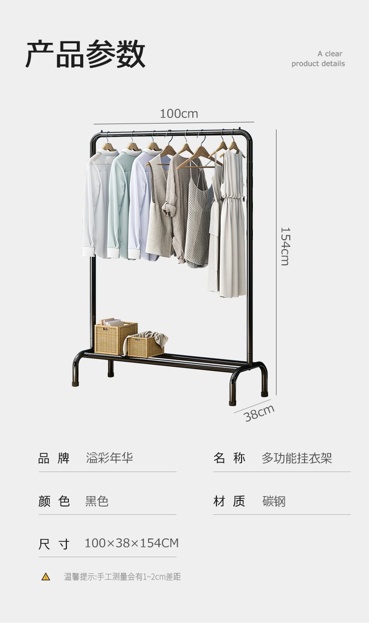 Yicai Nianhua metal coat rack bedroom clothes rack floor-standing simple clothes rack vertical clothes hanger clothes drying rack 2092BK2