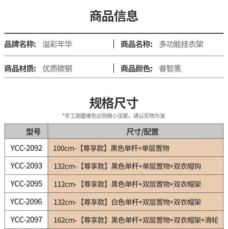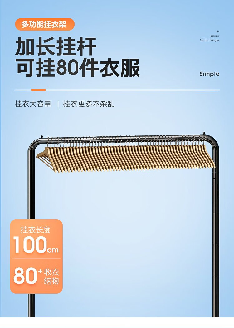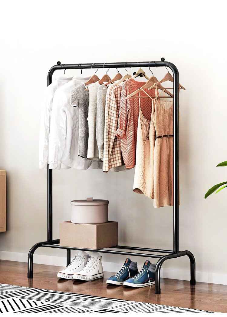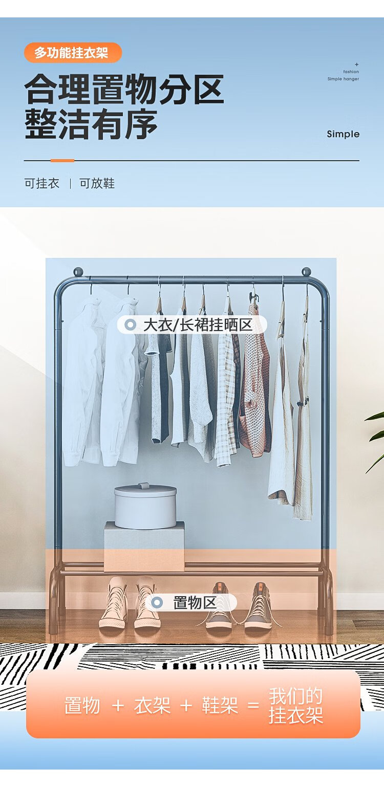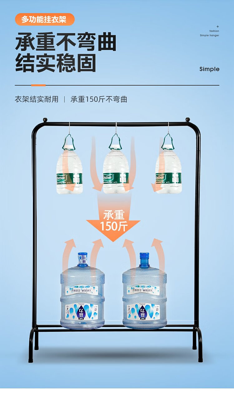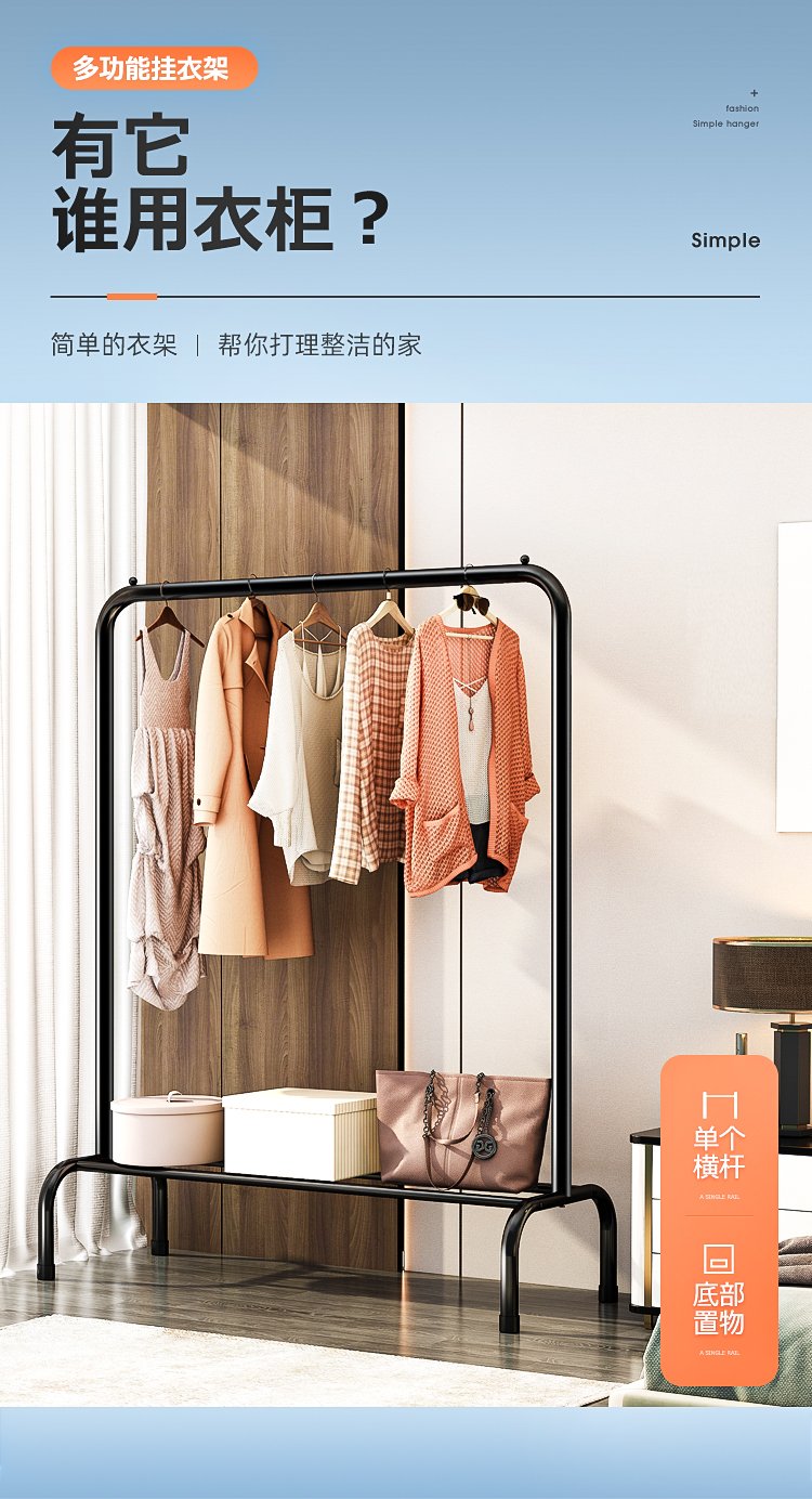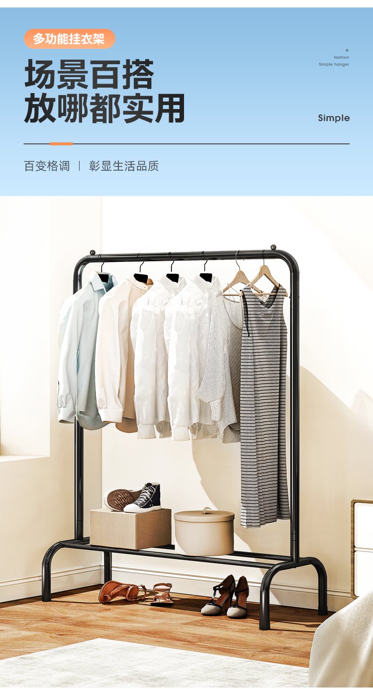 Yicai Nianhua metal coat rack bedroom clothes rack floor-standing simple clothes rack vertical clothes hanger clothes drying rack 2092BK2