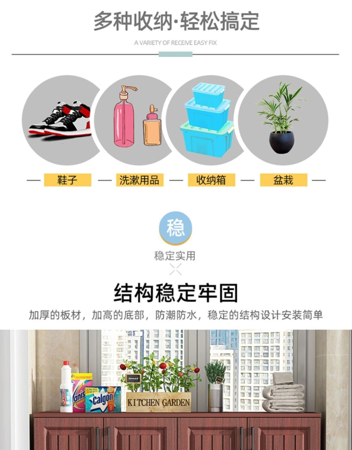 Bantujiang balcony cabinet storage locker home living room large capacity shoe cabinet storage cabinet one-in-one two-in-one cabinet four doors three layers 140*50*100cm