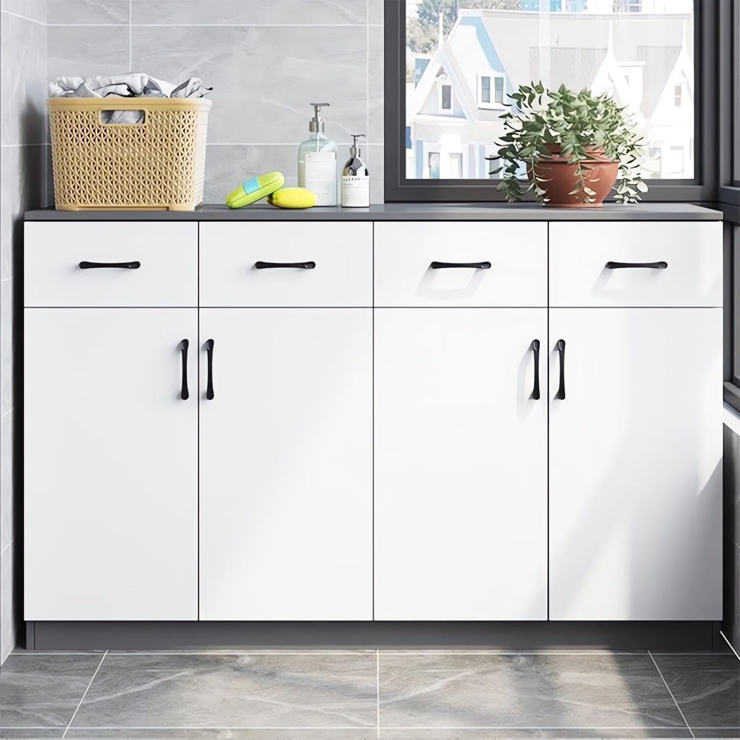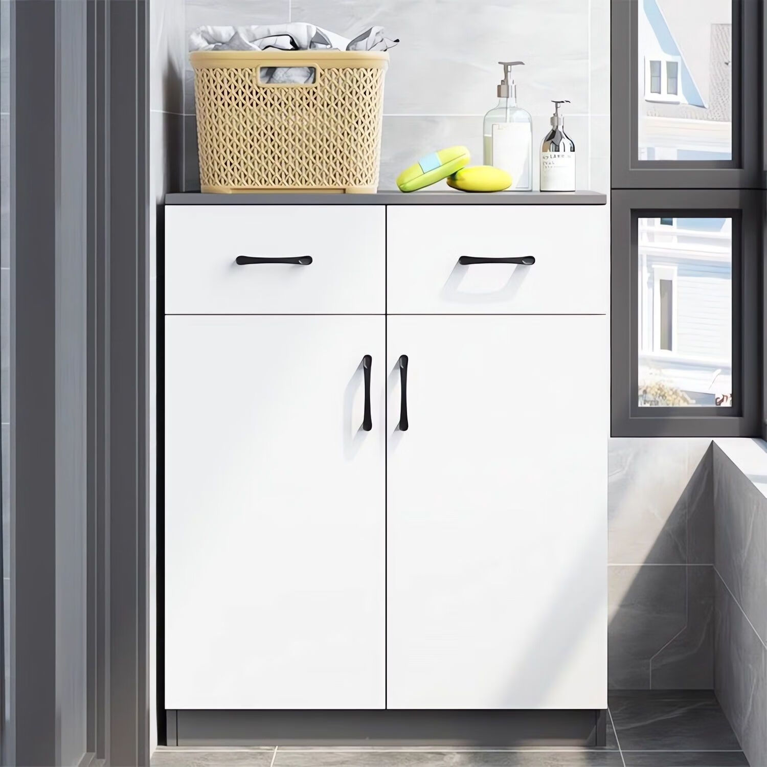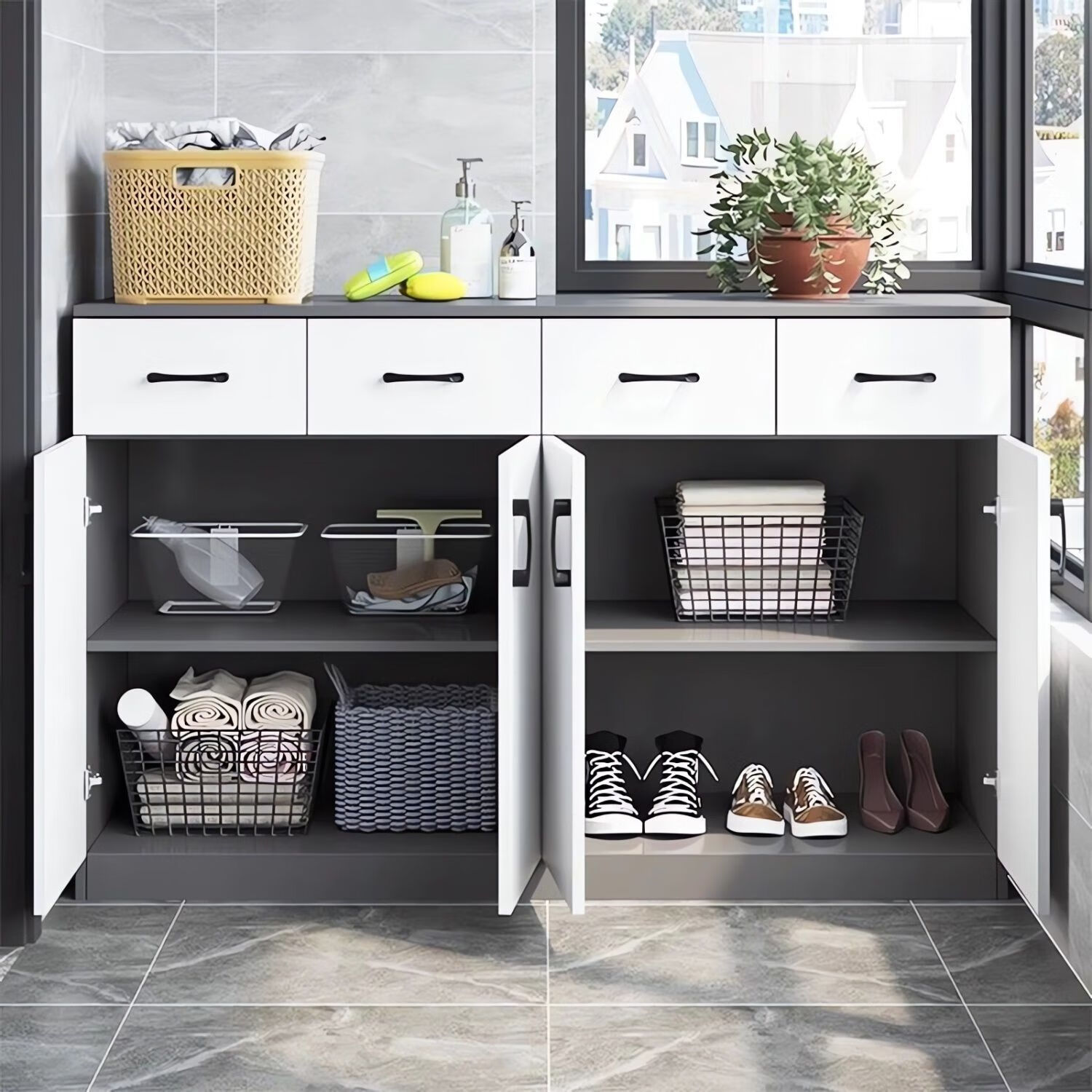 Katisha solid wood balcony cabinet storage cabinet with drawers household sun-proof and moisture-proof shoe cabinet sundry storage cabinet bay window cabinet customization length 100 depth 40 height 80 two doors and two drawers entry package installation