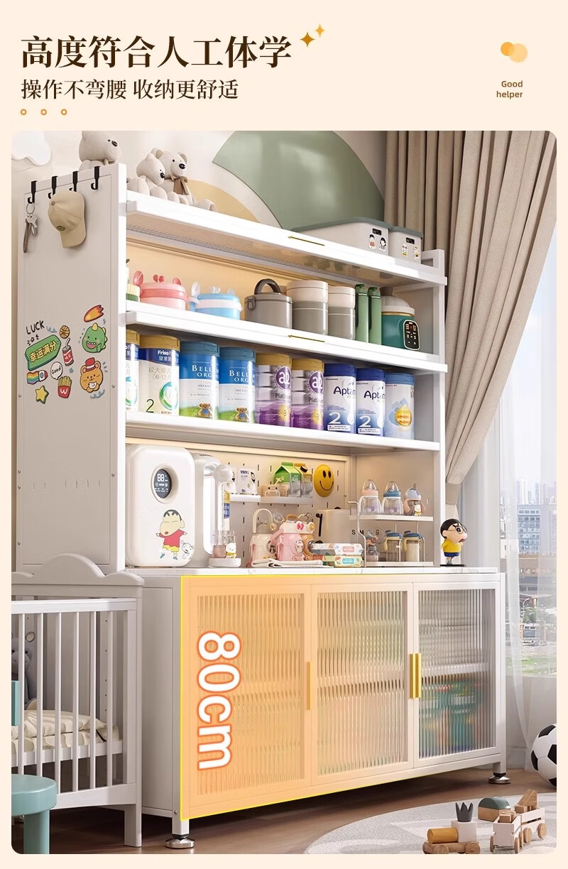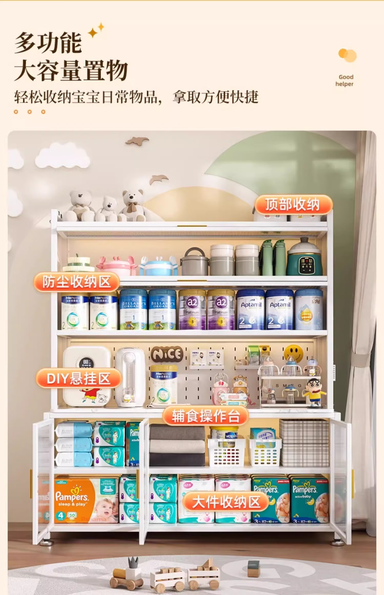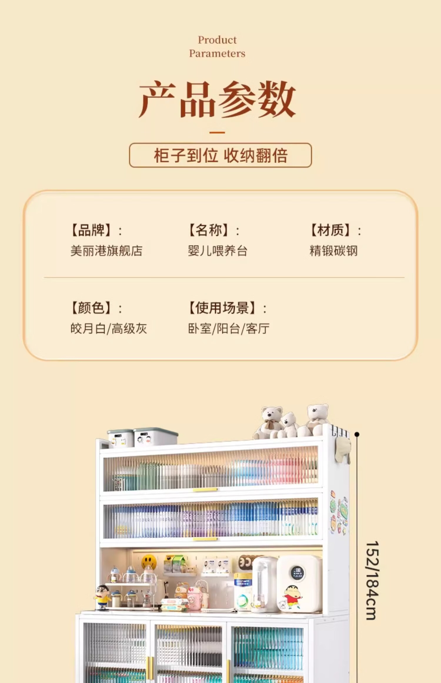 Smart Father steel storage cabinet baby feeding table baby supplies storage cabinet floor-standing multi-layer large-capacity toy storage rack pearl white-5 layers high 157cm long 80 wide 42cm free wheel