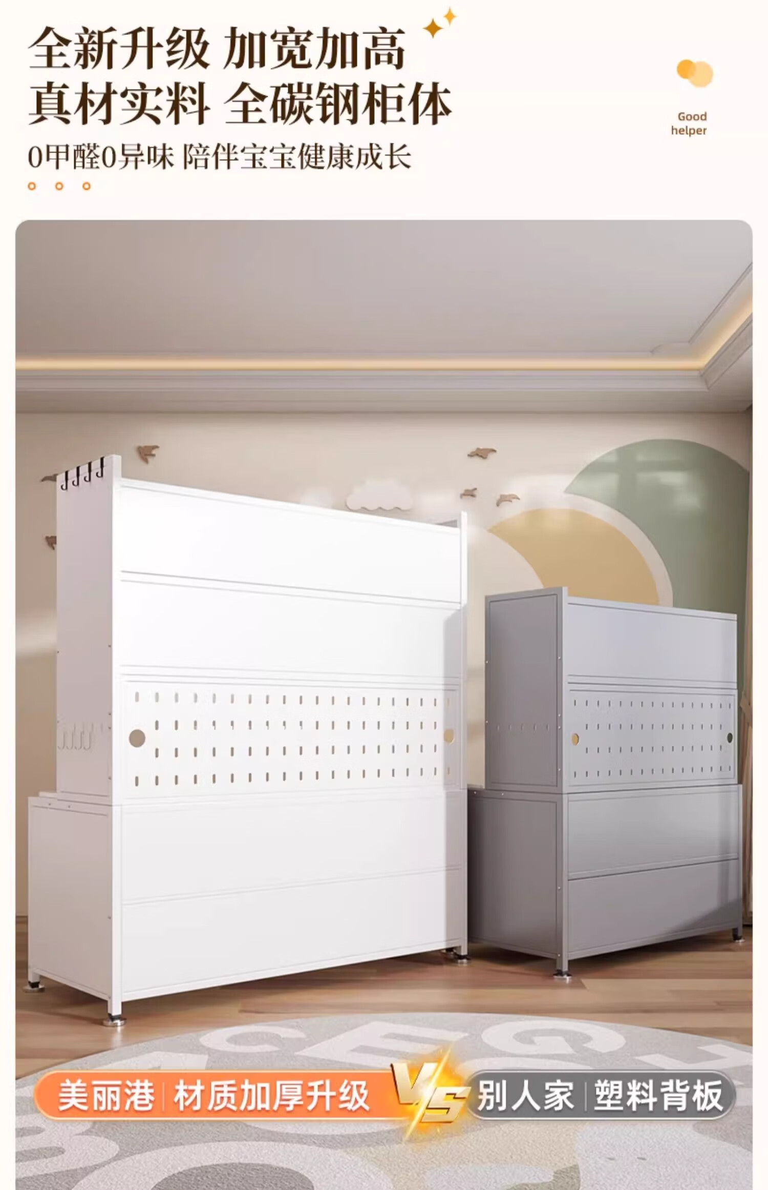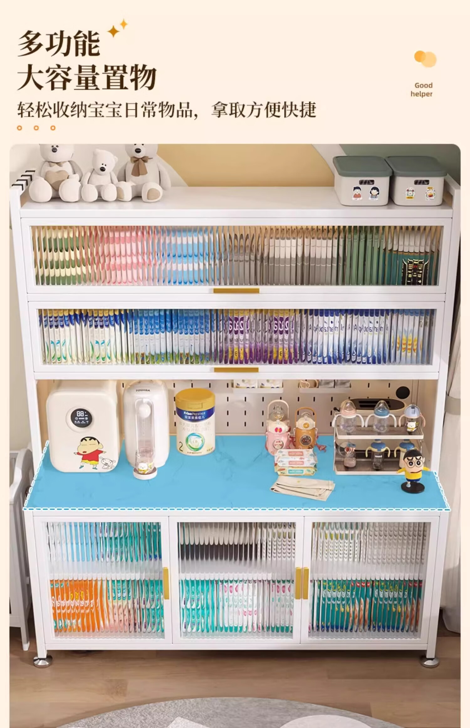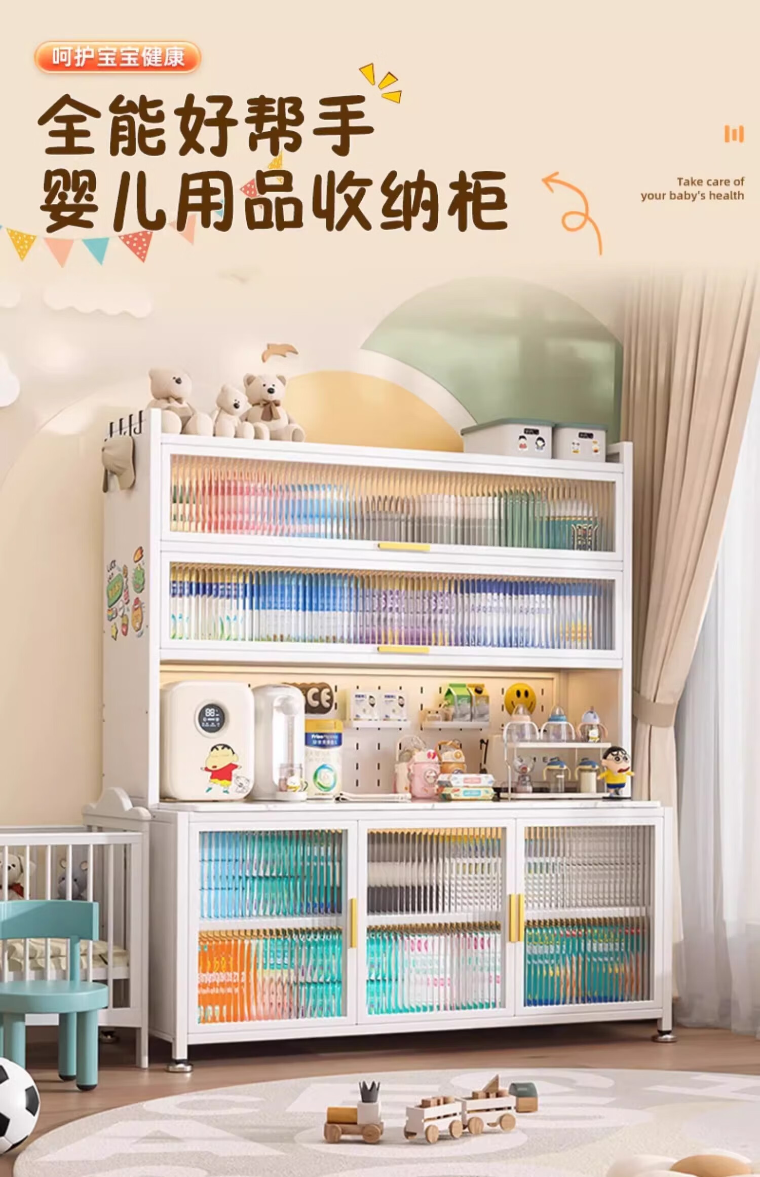 Smart Father steel storage cabinet baby feeding table baby supplies storage cabinet floor-standing multi-layer large-capacity toy storage rack pearl white-5 layers high 157cm long 80 wide 42cm free wheel