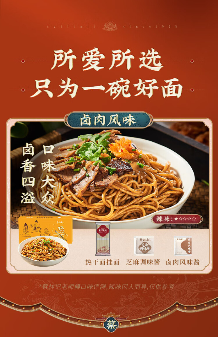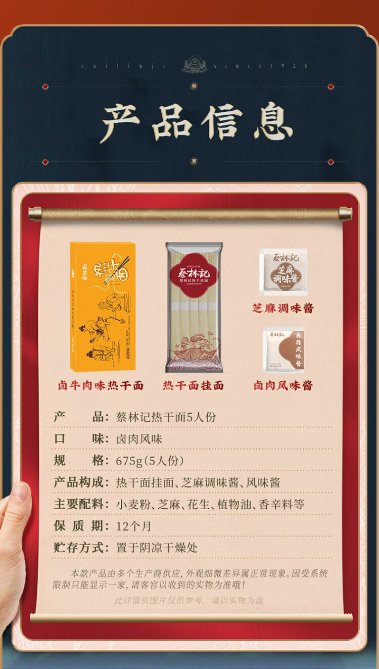 Cai Linji Wuhan hot dry noodles Hubei specialty 5 servings alkaline water dried noodles dry mixed noodles convenient instant braised pork flavor 675g