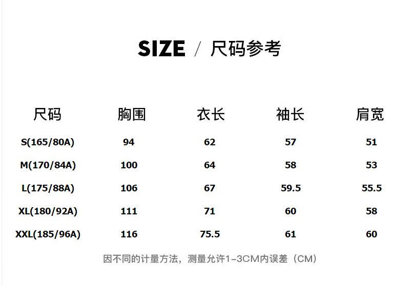 China (cm) 165 / 88-90 170 / 96-98 175 / 108-110 180 / 118-122 185 / 126-130