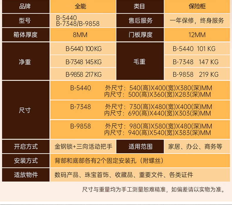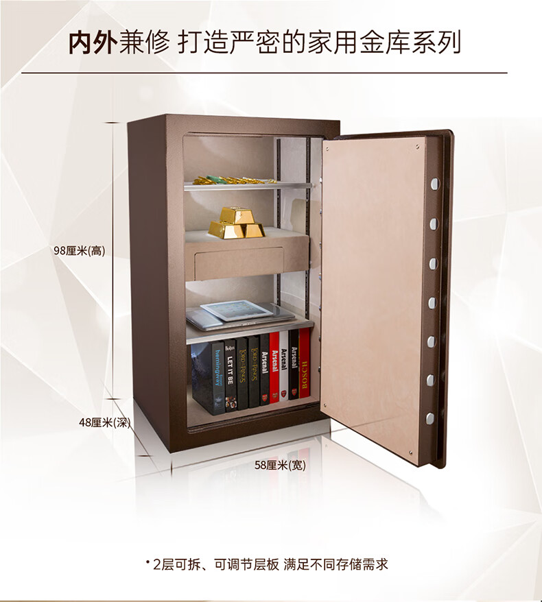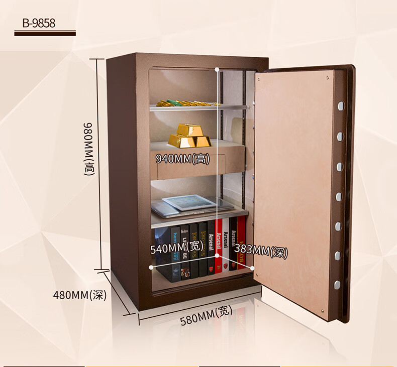 All-purpose safe, household password box, 98CM office national standard safe, fireproof, anti-theft, anti-removal, jewelry and antique collection safe, large all-steel bedside table vault B-9858