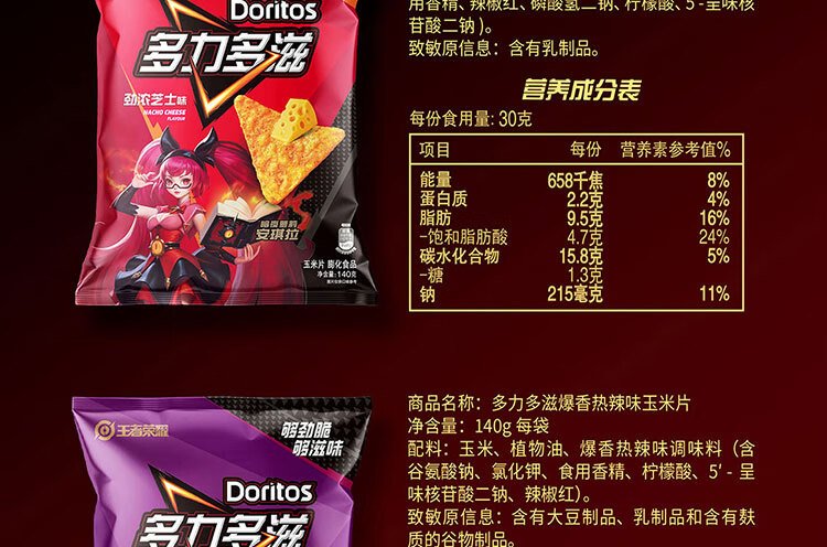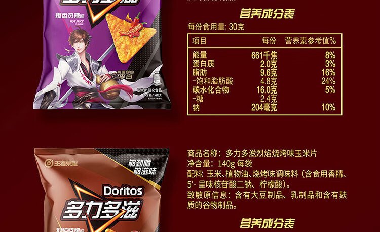 多力多滋(Doritos)玉米片爆香热辣味140g 王者荣耀合作款(原包装/合作款随机发货)
