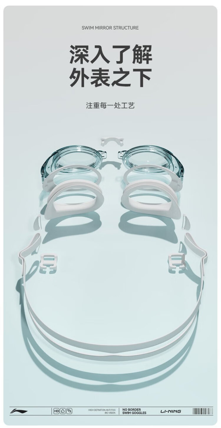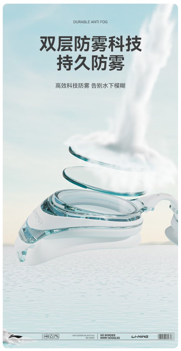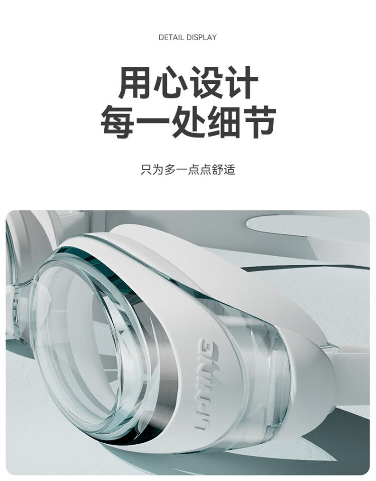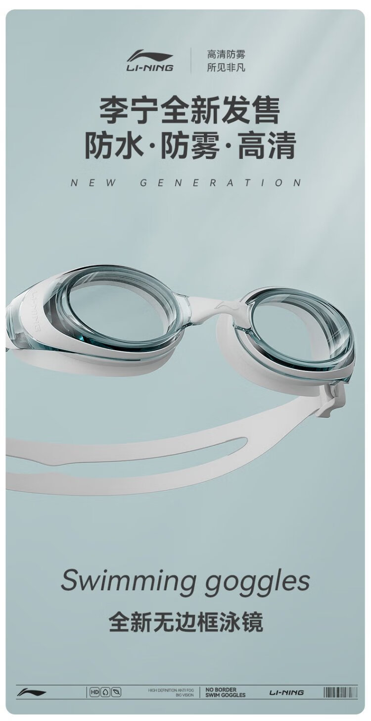 Li Ning LI-NING swim goggles for men and women high definition anti-fog swimming goggles for adult flat light swimming cap set 55-808 white