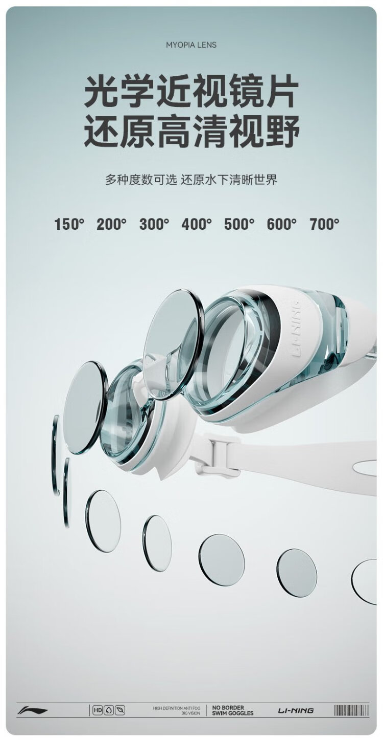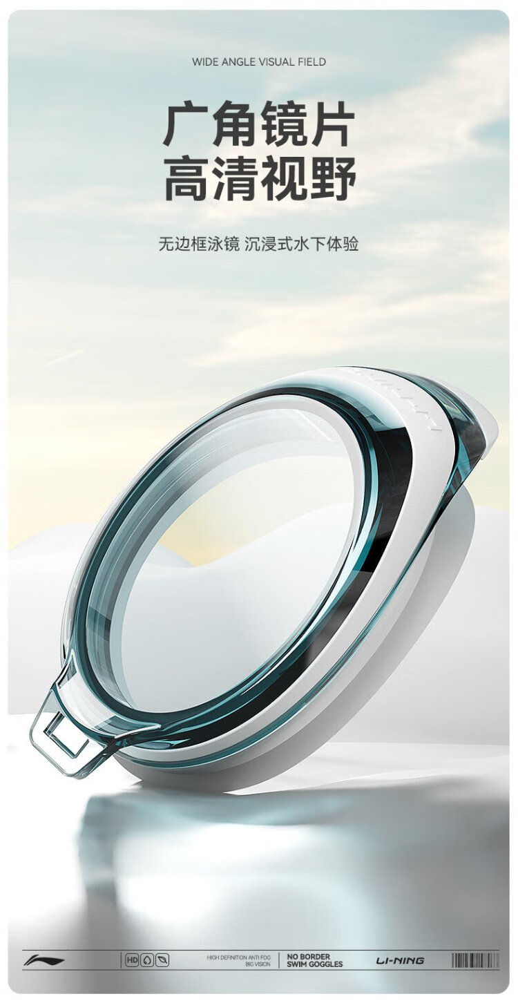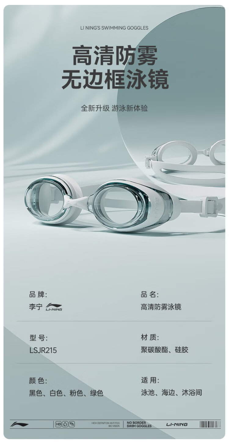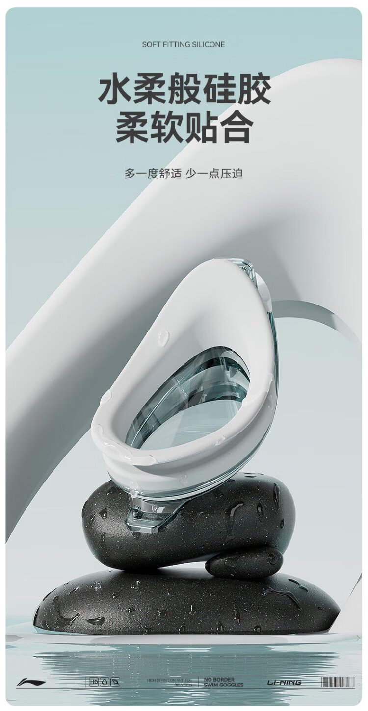 Li Ning LI-NING swim goggles for men and women high definition anti-fog swimming goggles for adult flat light swimming cap set 55-808 white