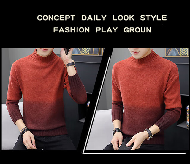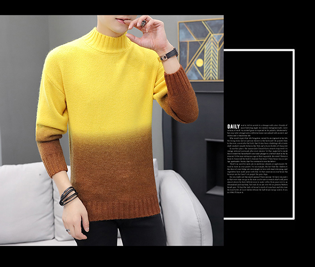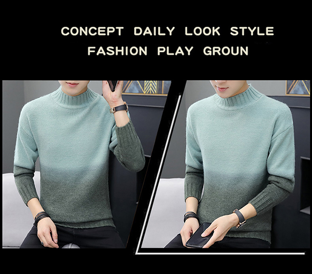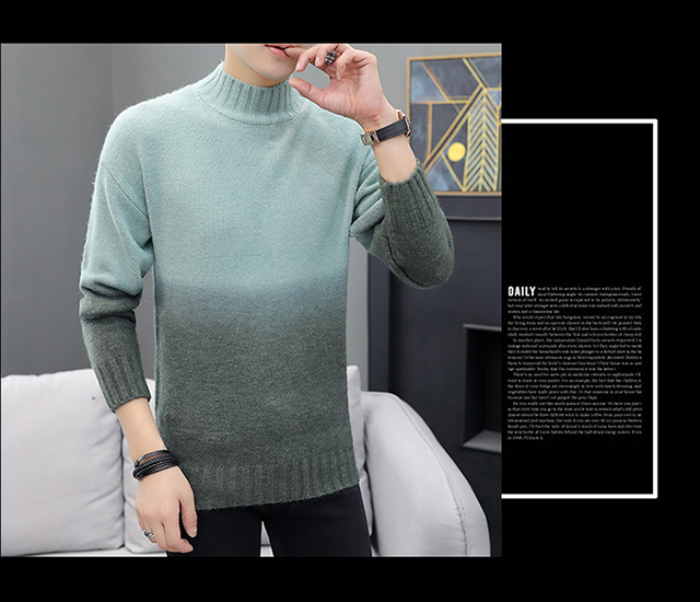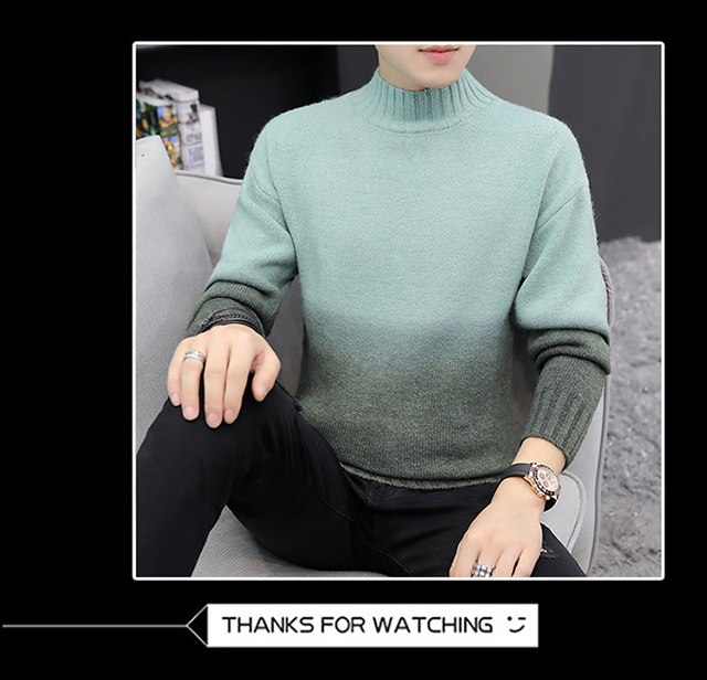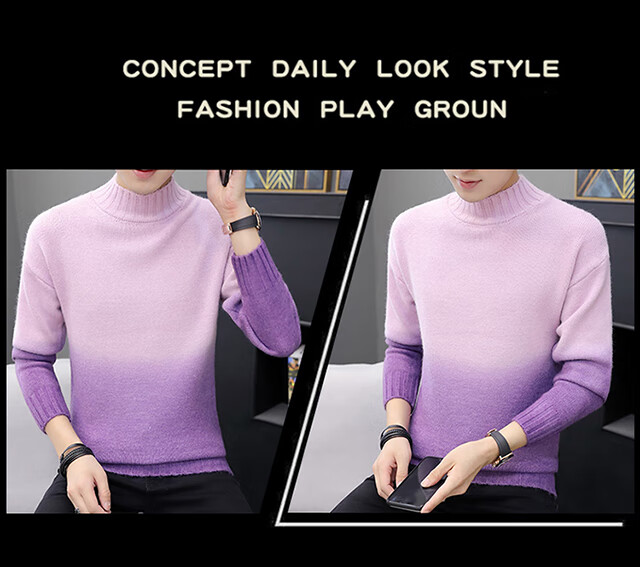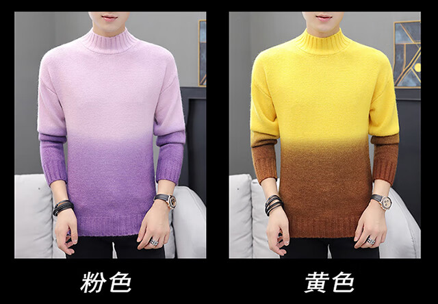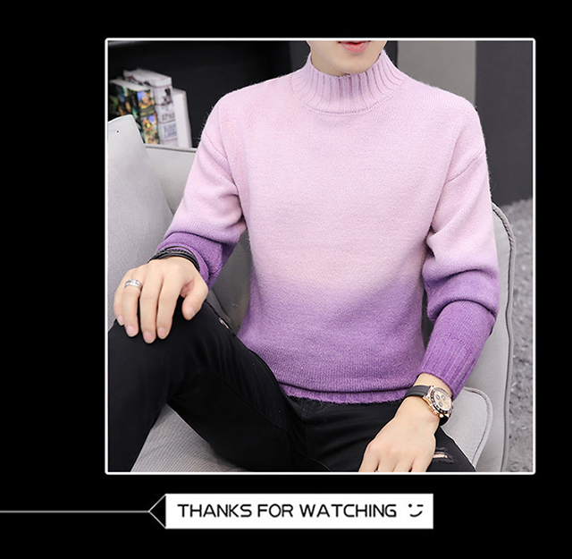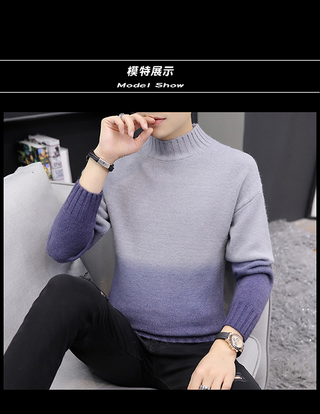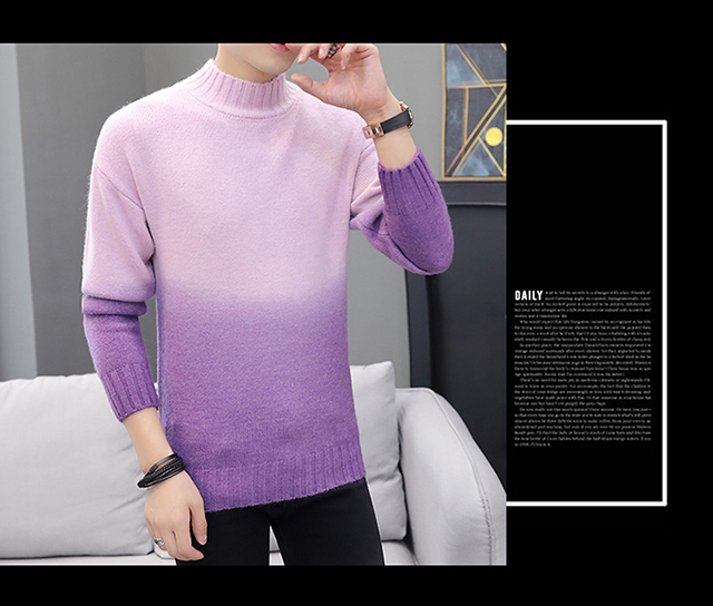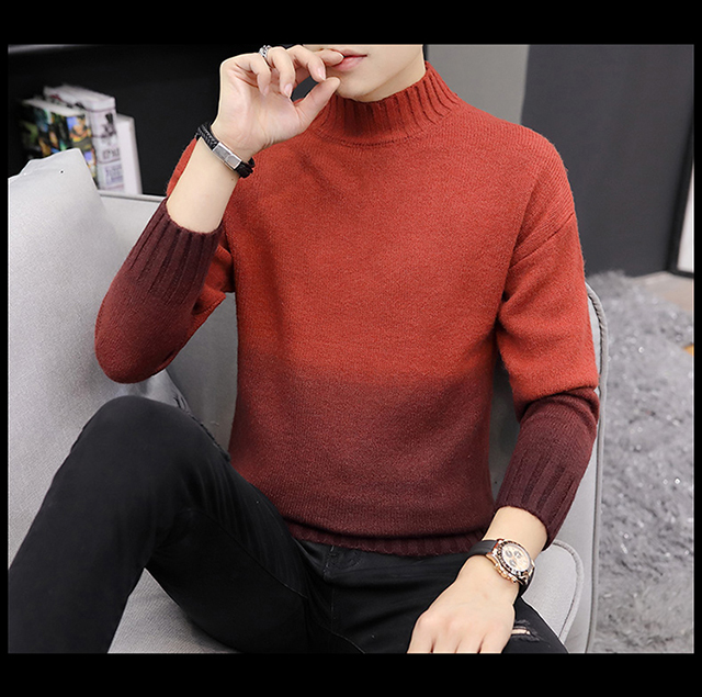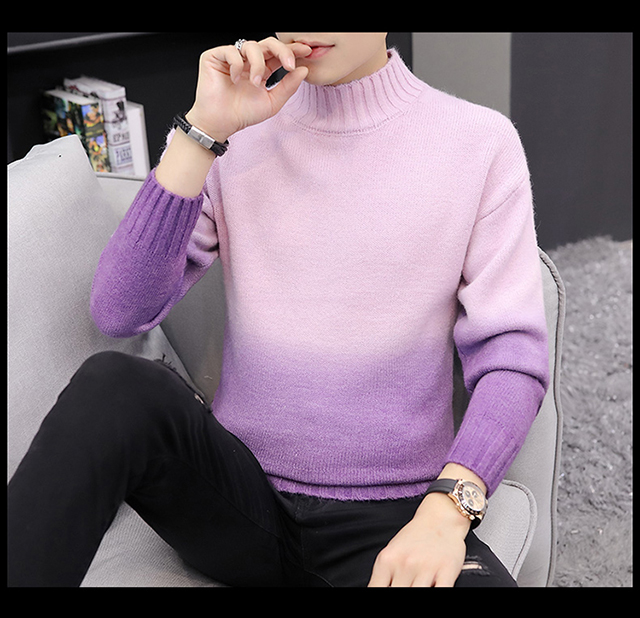 KIN DON Knitted Sweater Men's 2019 Autumn New Casual and Versatile Korean Style Trendy Brand High Neck Gradient Color Bottoming Shirt 1217-1- M5708 Pink 2XL