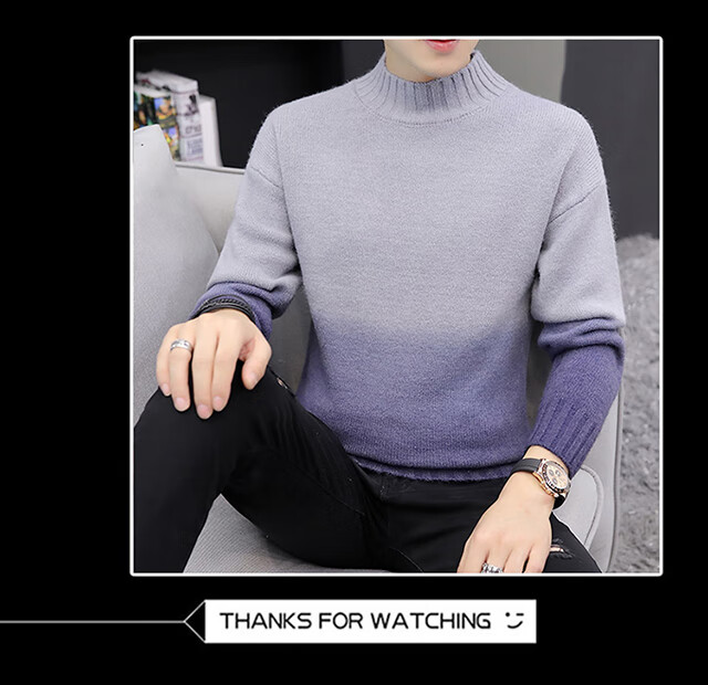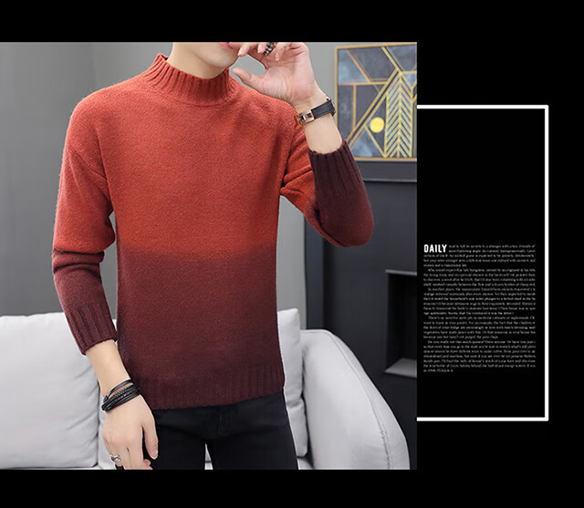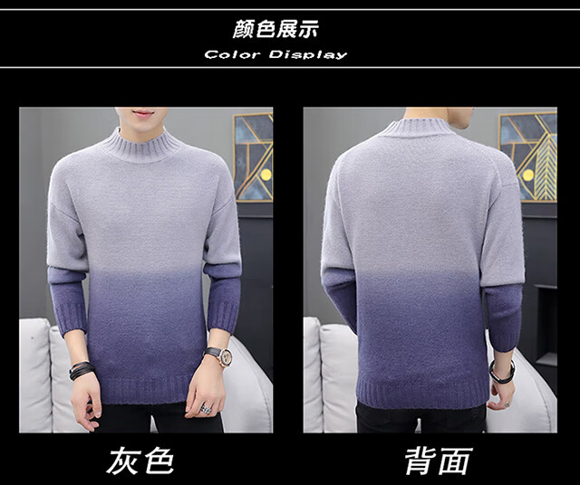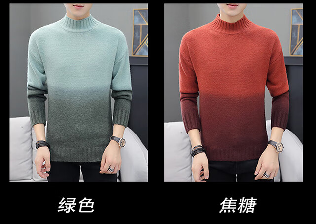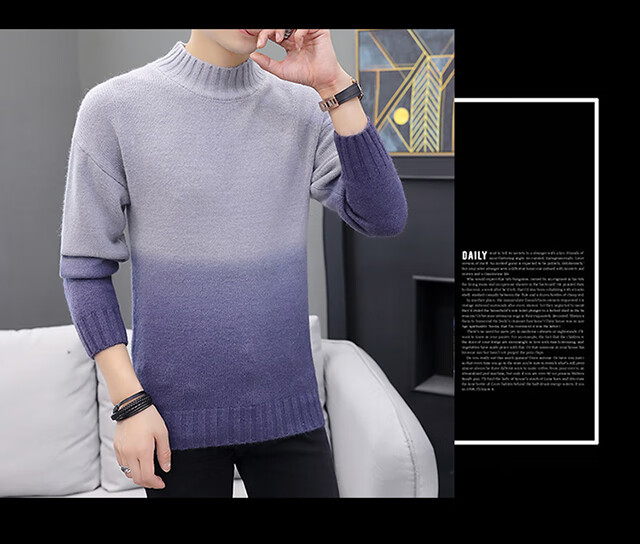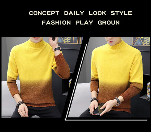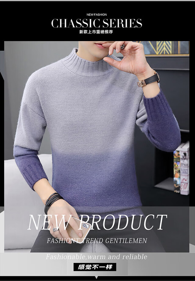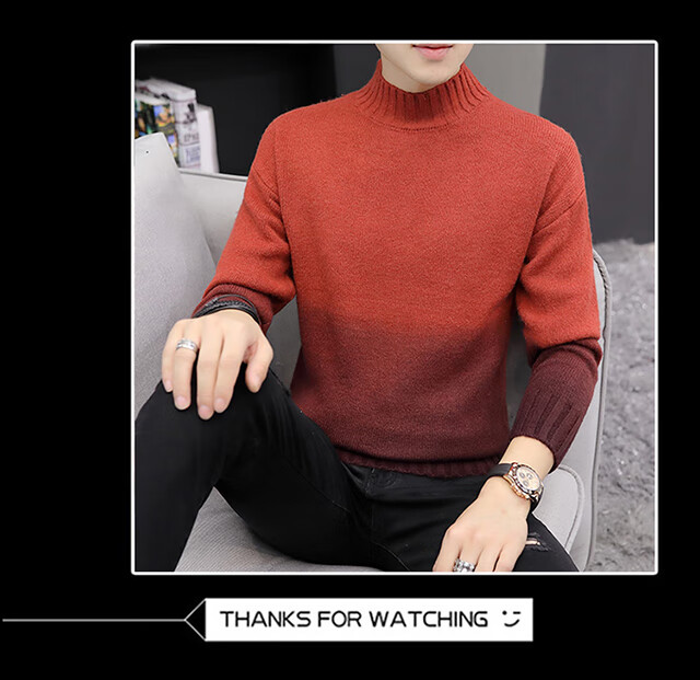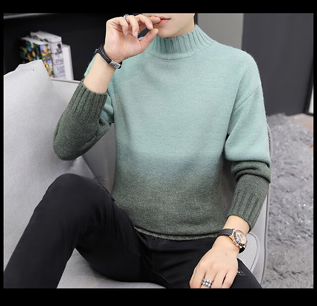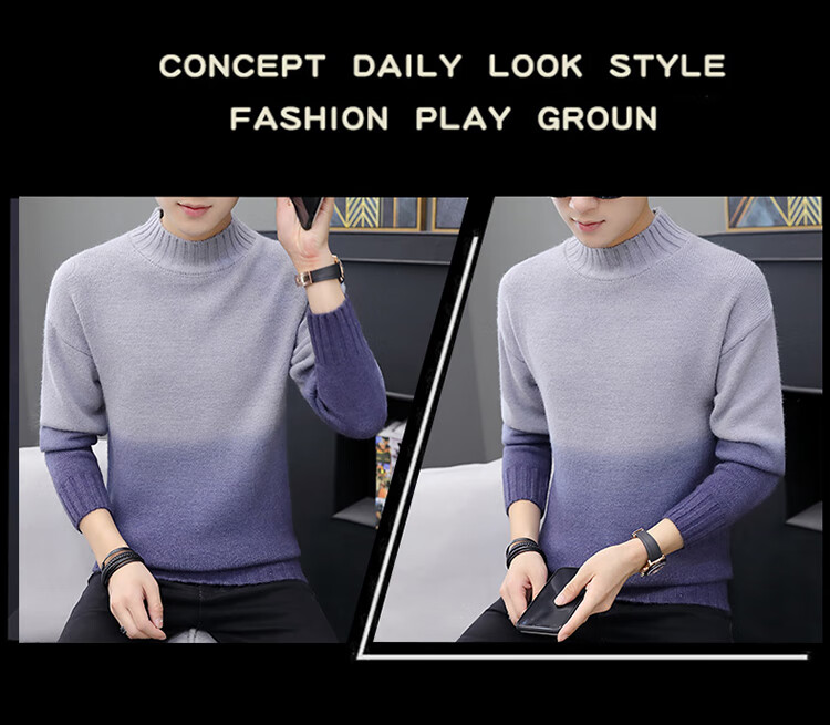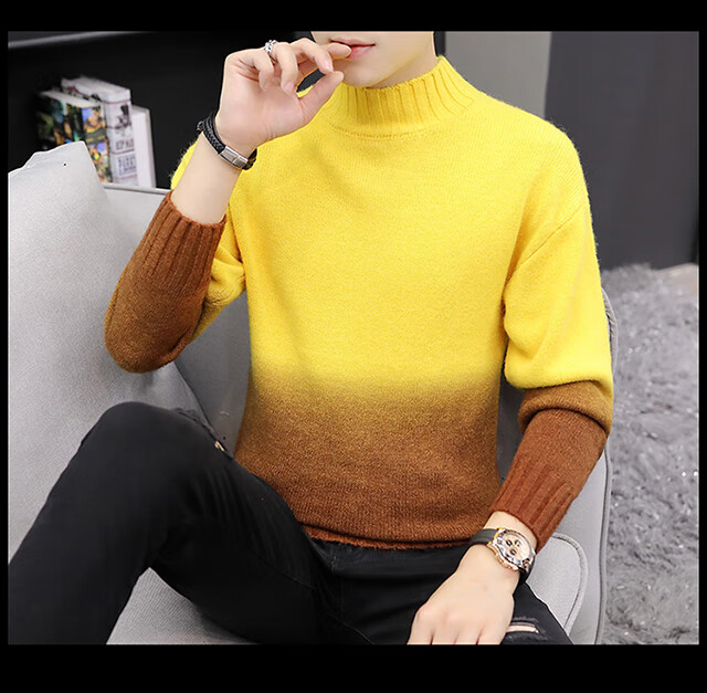 KIN DON Knitted Sweater Men's 2019 Autumn New Casual and Versatile Korean Style Trendy Brand High Neck Gradient Color Bottoming Shirt 1217-1- M5708 Pink 2XL