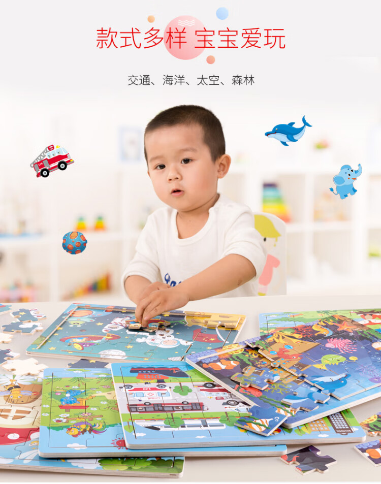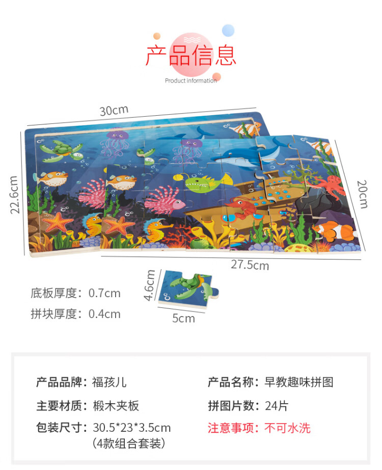 Fuhaier's four 24-piece jigsaw puzzles develop early education and intellectual enlightenment for 3 to 6-year-old children, baby children's birthday gifts