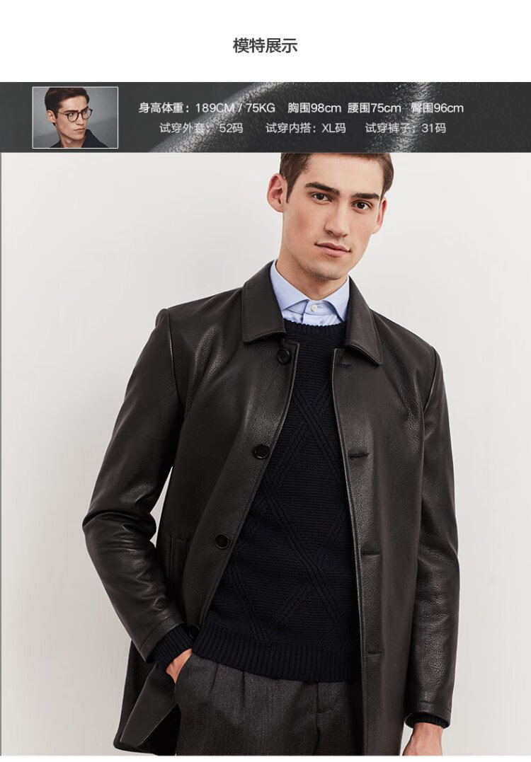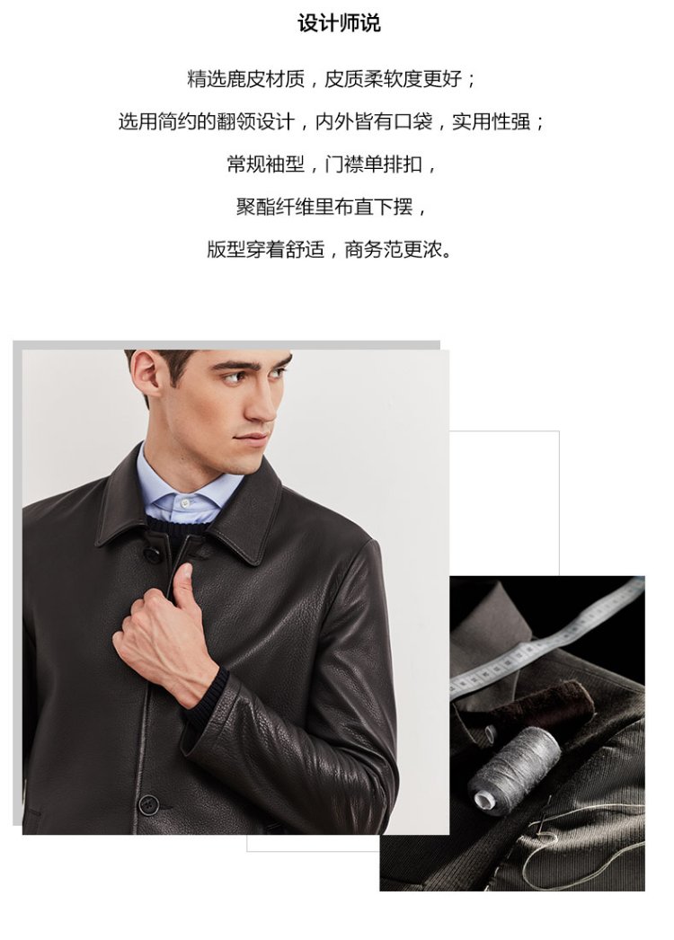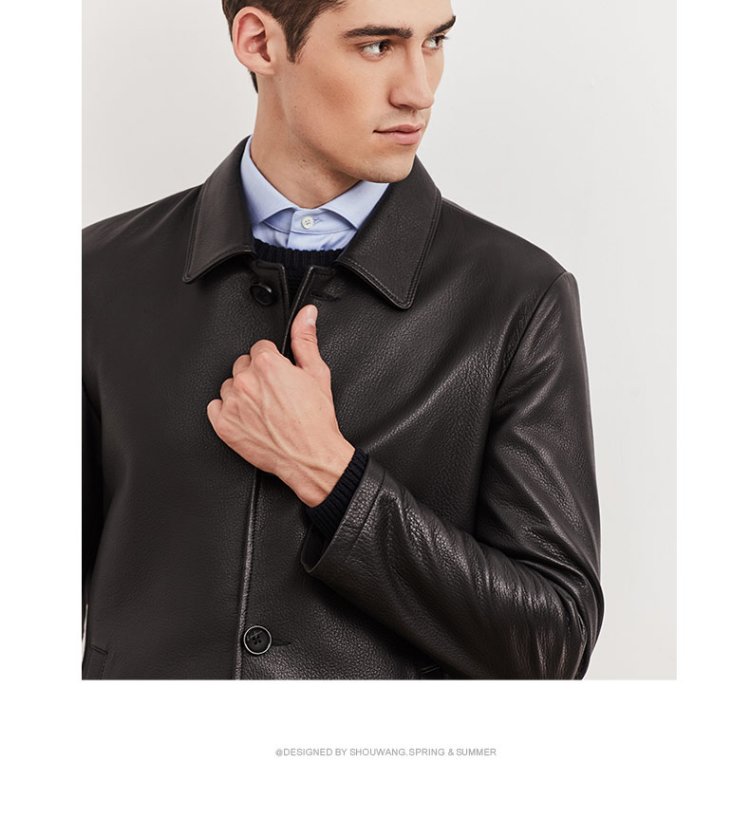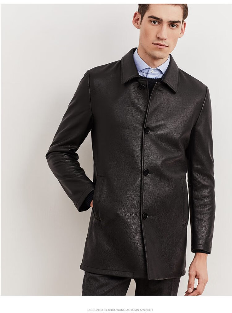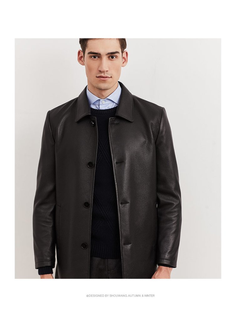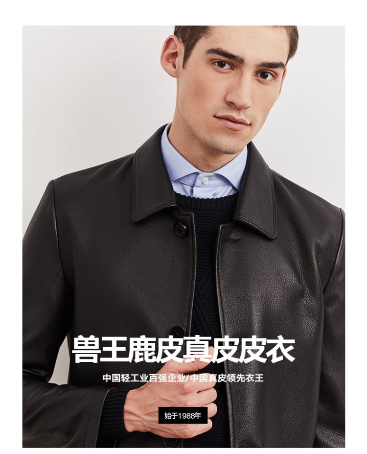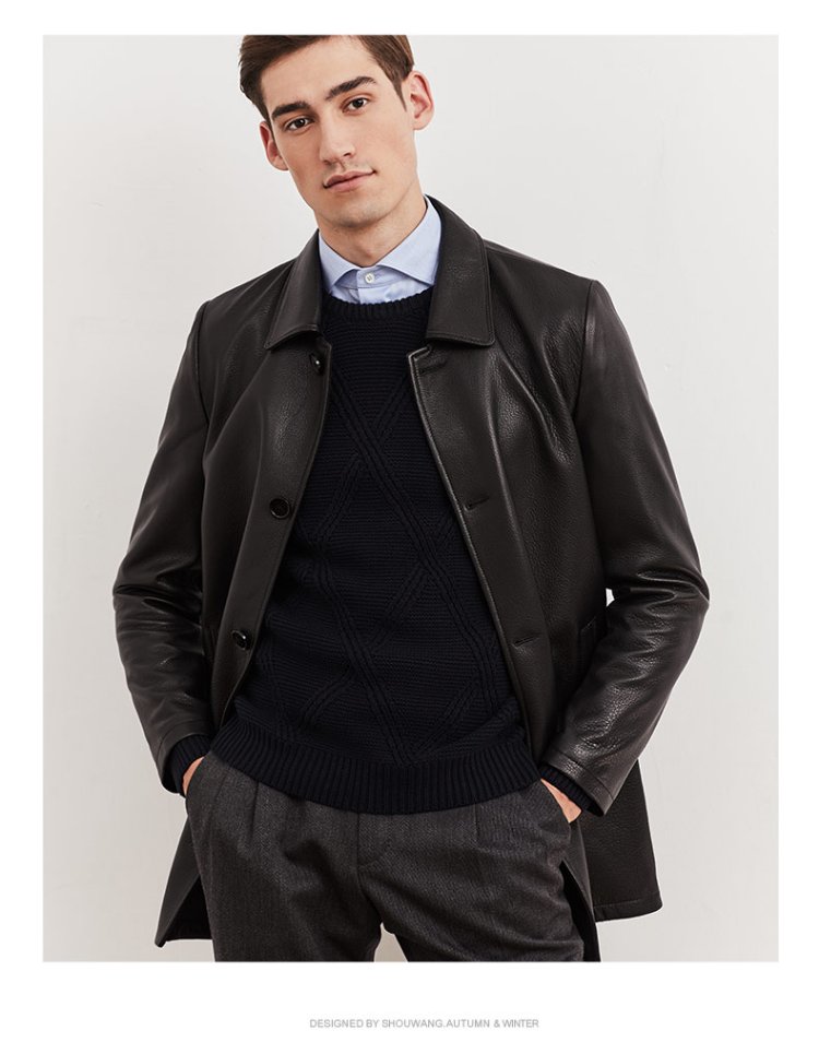 Beast King 2019 Autumn and Winter New Deerskin Genuine Leather Coat Lapel Single-Breasted Leather Coat Mid-Length Leather Windbreaker Jacket Black 50/XL