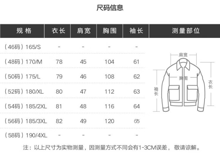 China (cm) 165 / 88-90 170 / 96-98 175 / 108-110 180 / 118-122 185 / 126-130