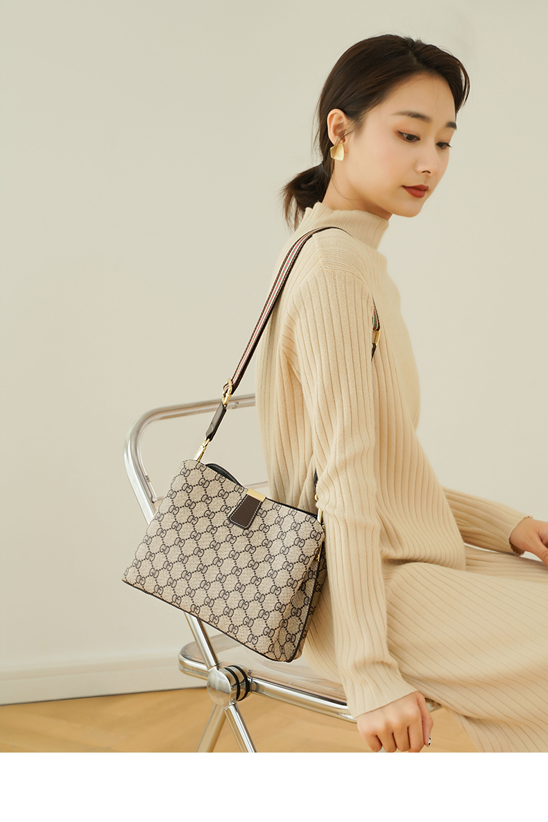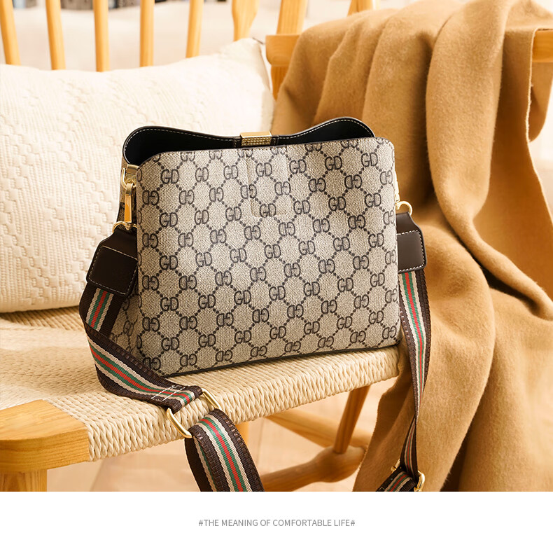 Shark bag women's bag retro print shoulder bag women's trendy casual bucket bag versatile crossbody bag women's bag gray