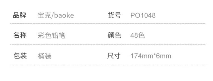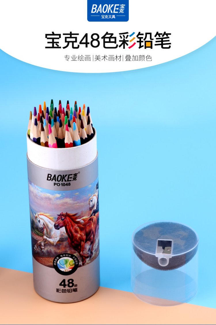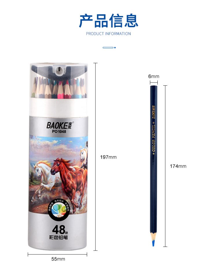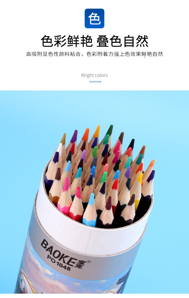 BAOKE PO1048 Farbstift auf Ölbasis, sechseckiger Holzstift, Farbe, klare Malmine, 48-Farben-Papierröhre