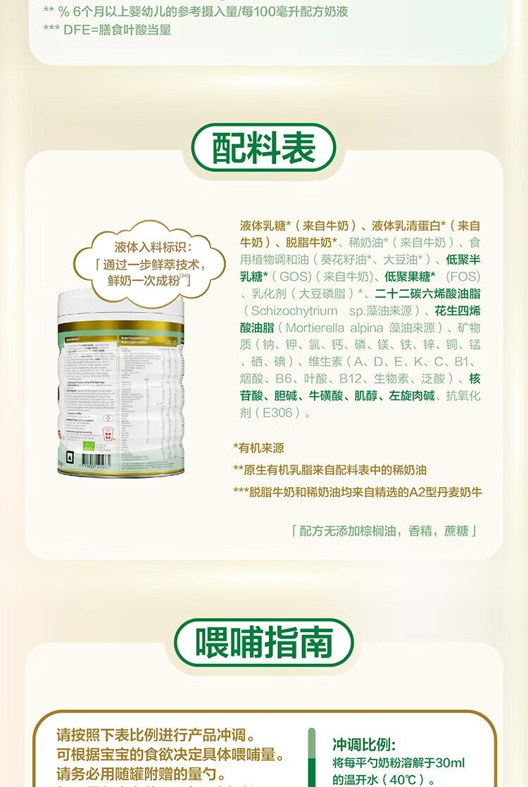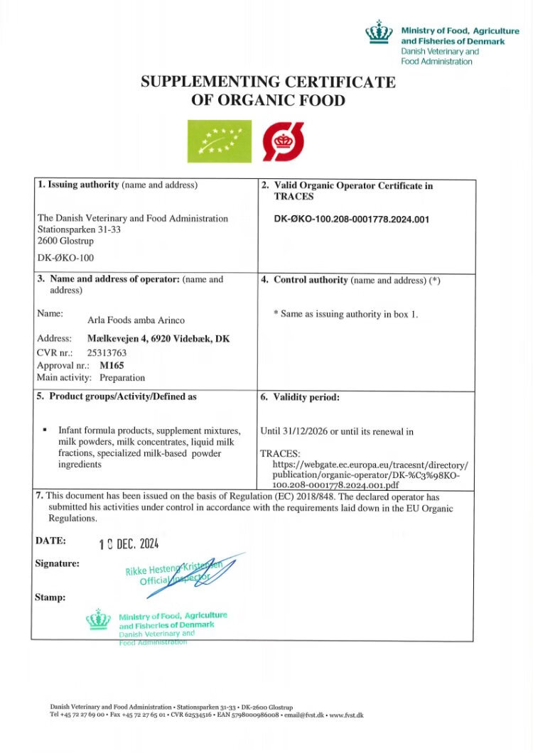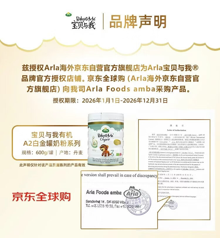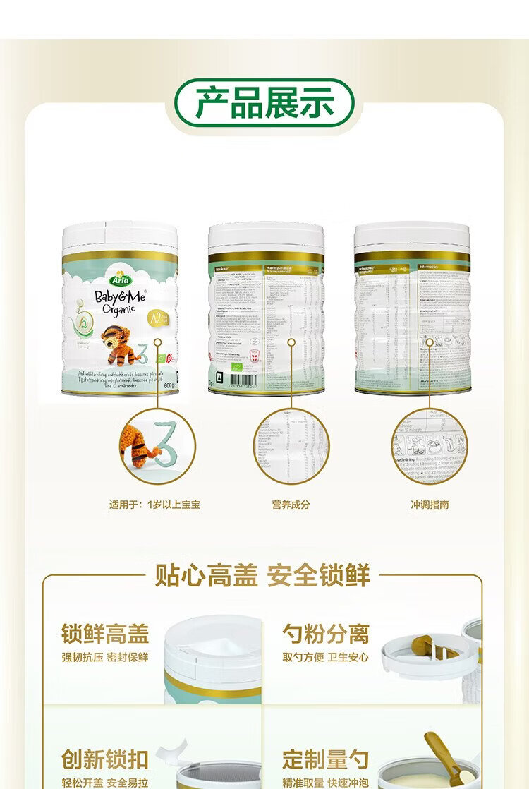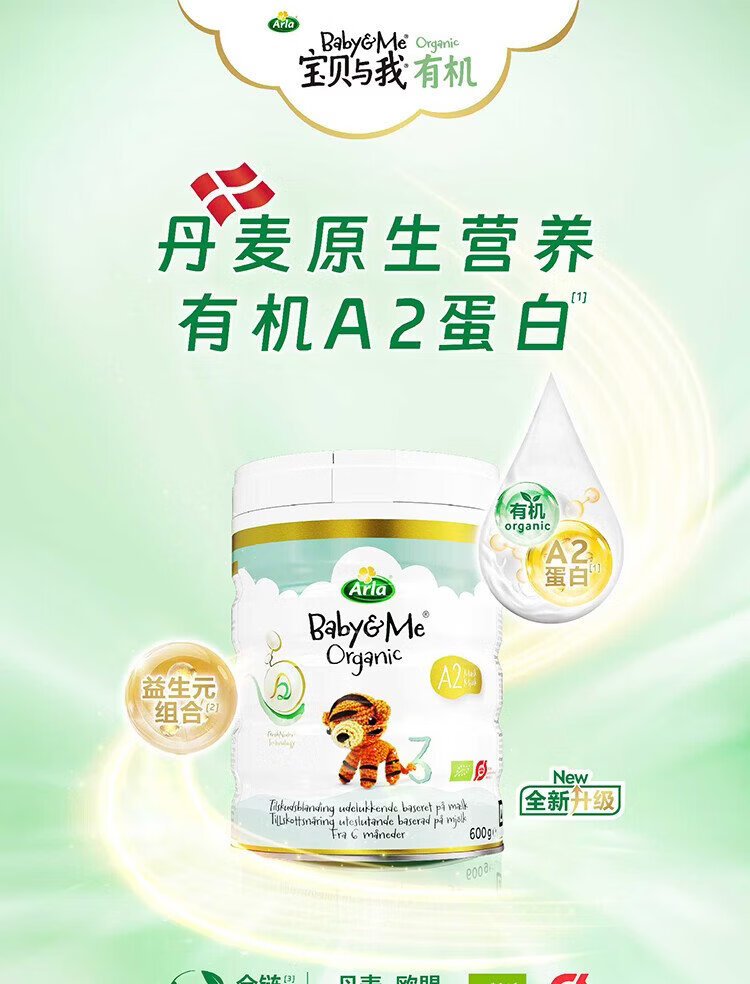 Baby and Me (Arla) Danish Platinum Edition Arla Organic A2 Säuglingsnahrung 3 Stufen 1–3 Jahre alt 600 g*6 Dosen
