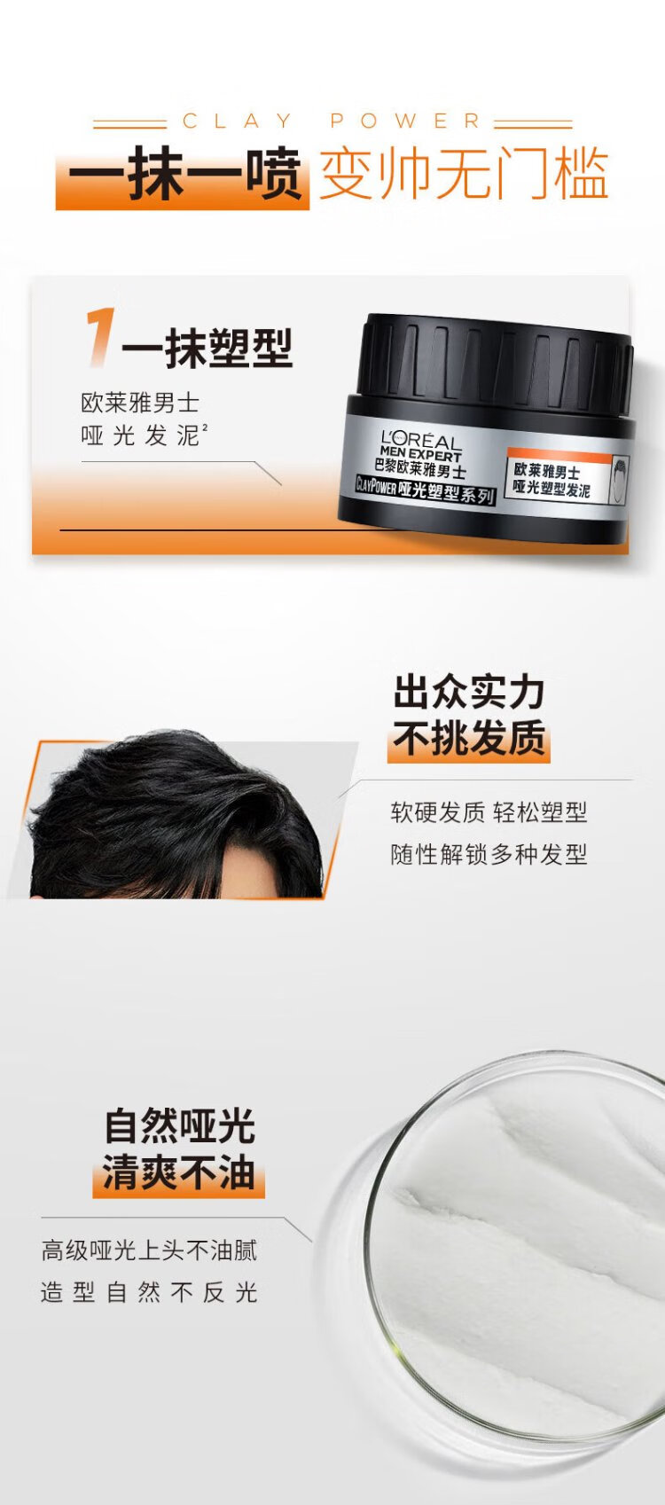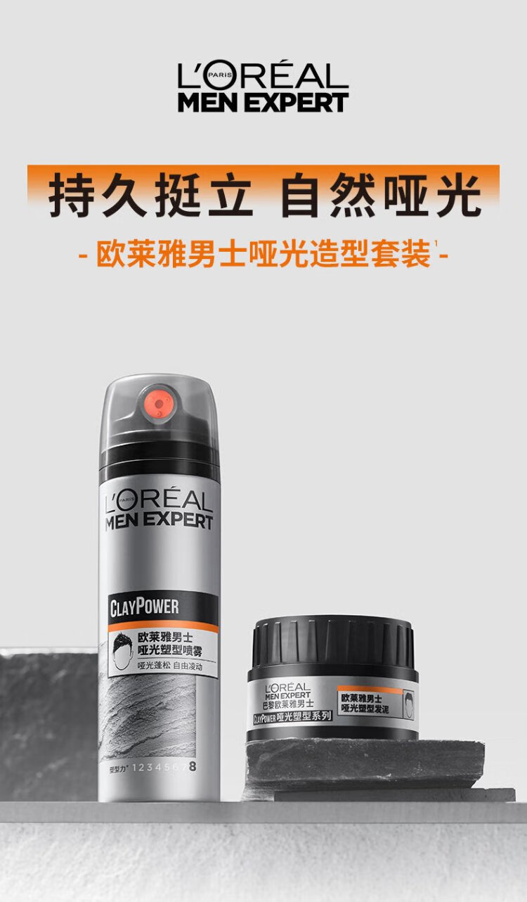 L'Oreal Men's Matte Shaping Clay, Wax, Cream, Hairspray, Long-lasting Styling Gift Box Set