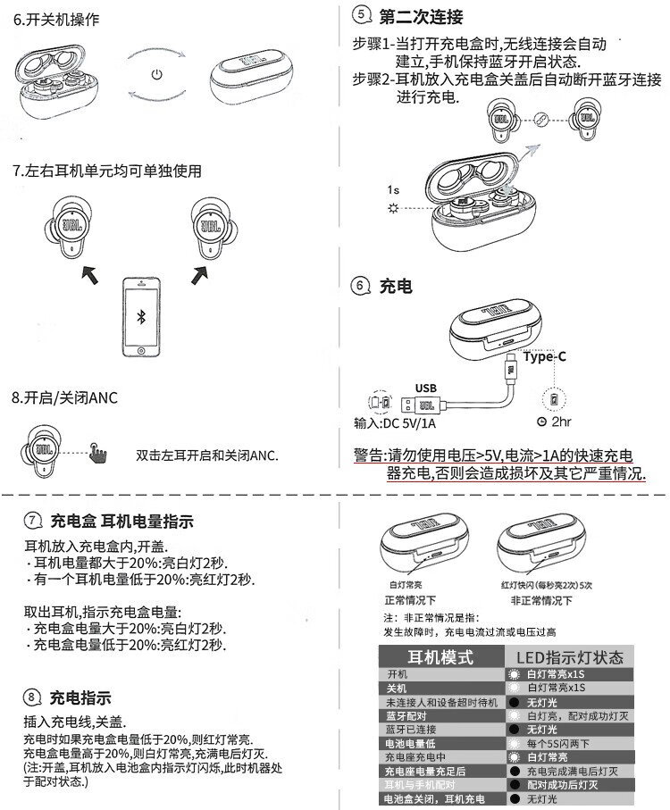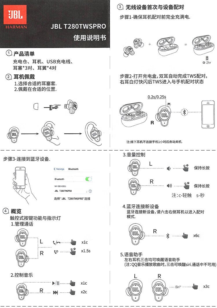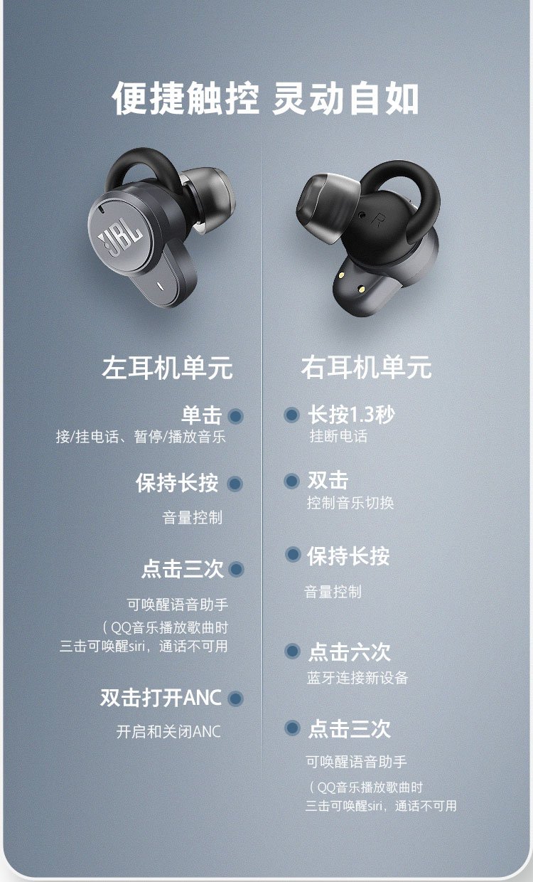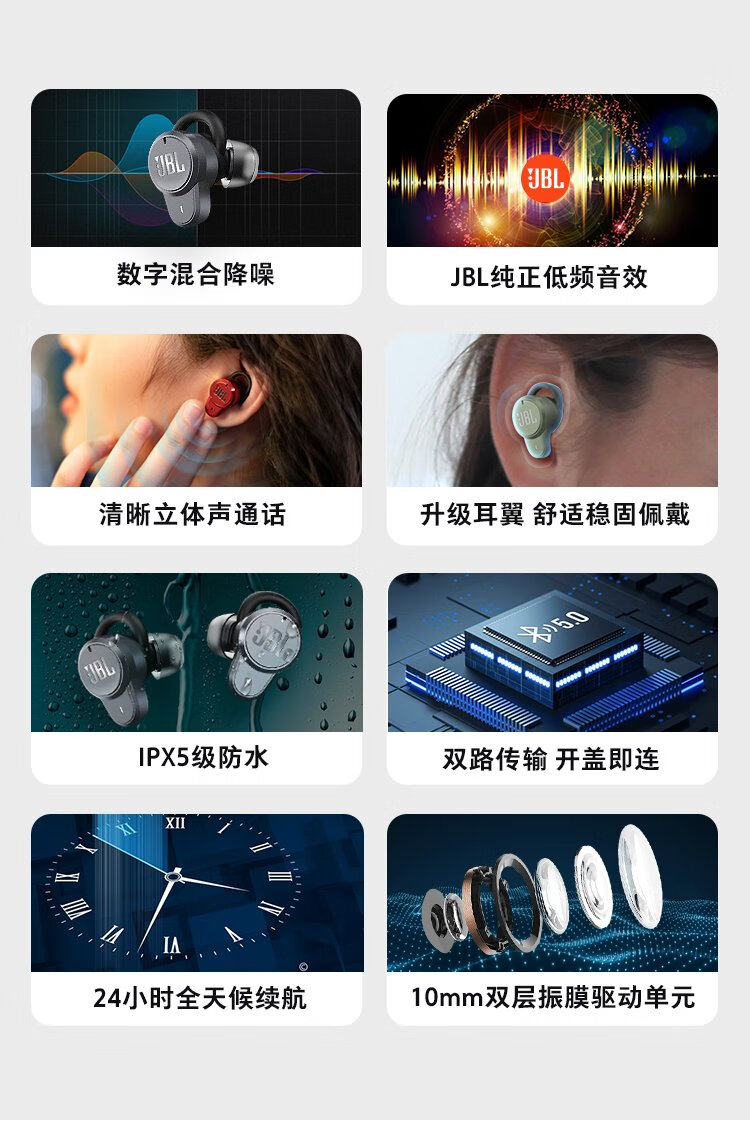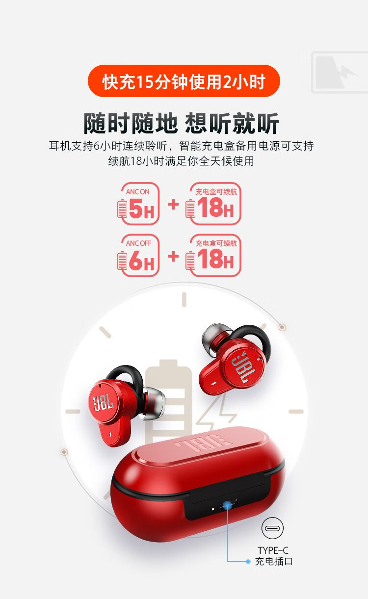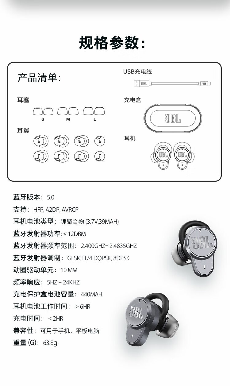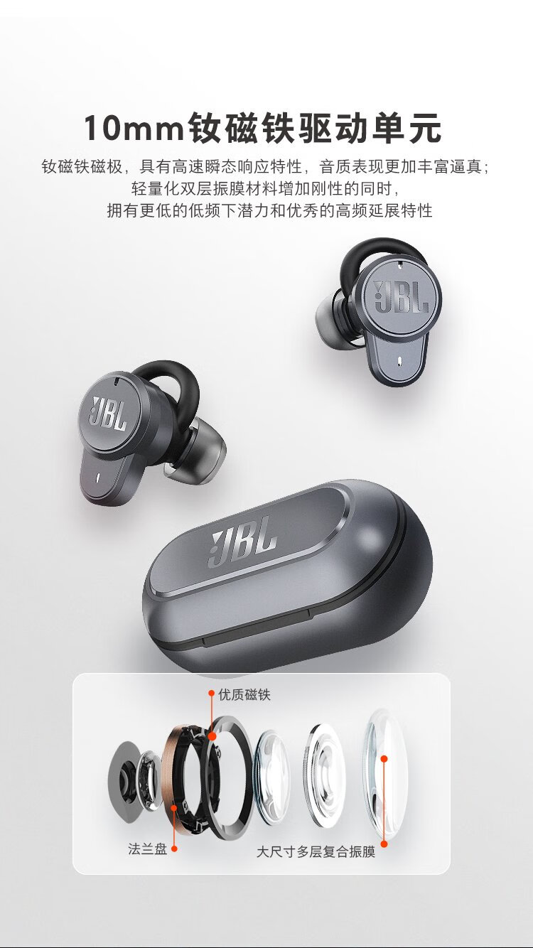 JBL T280TWS PRO True Wireless Active Noise Canceling Bluetooth Headphones In-Ear Sports Headphones Mobile Music Binaural Stereo Apple Android Universal Cold Light Gray