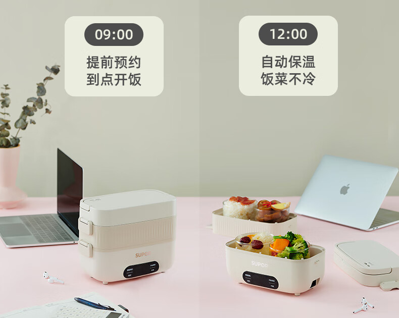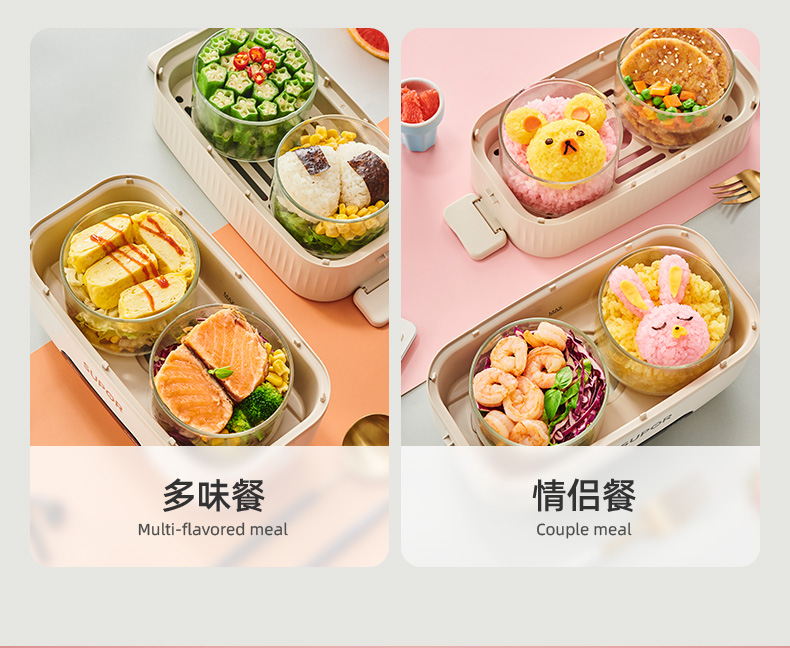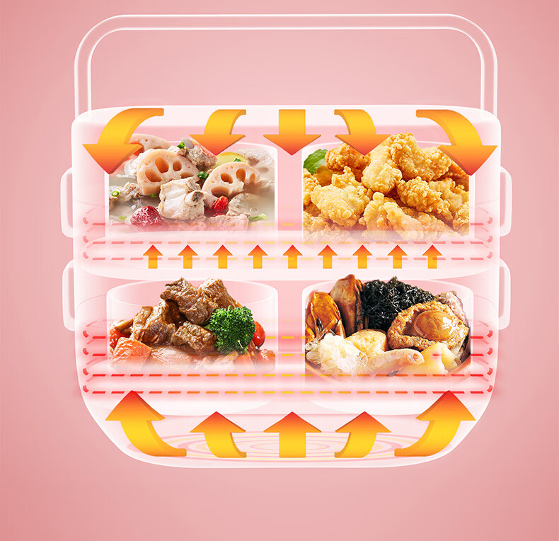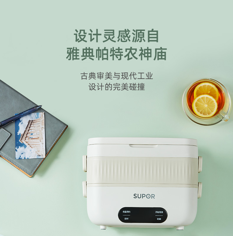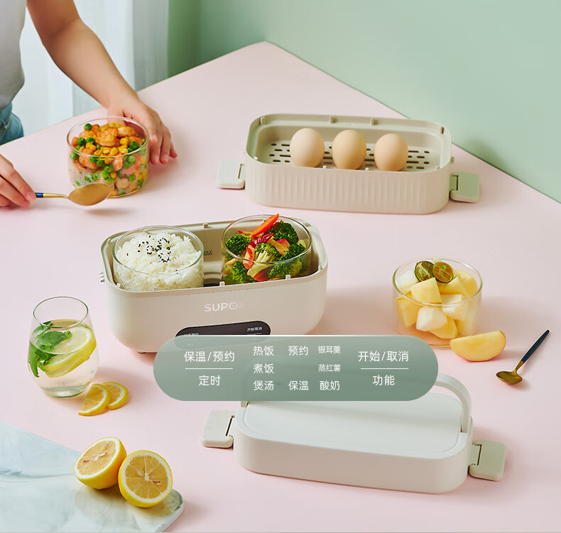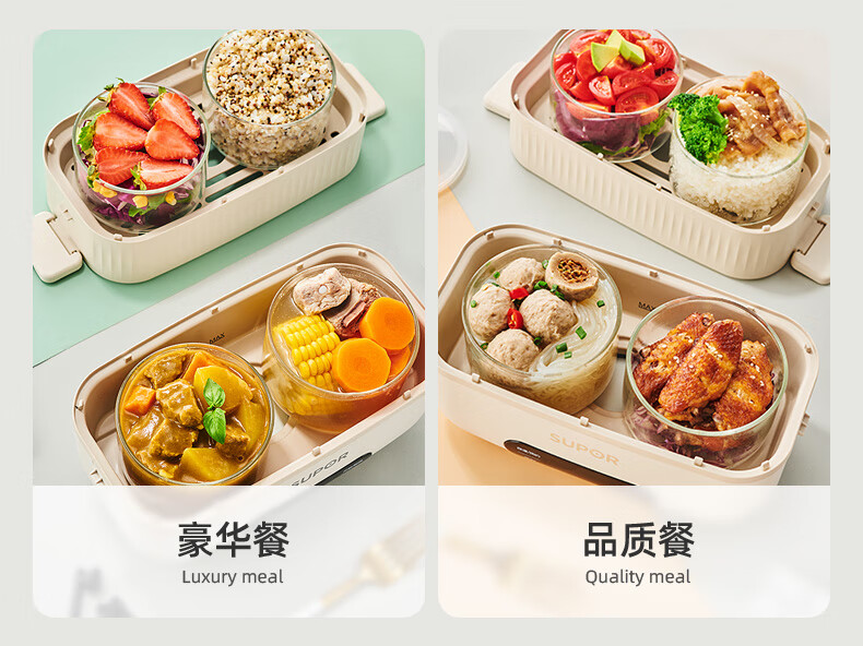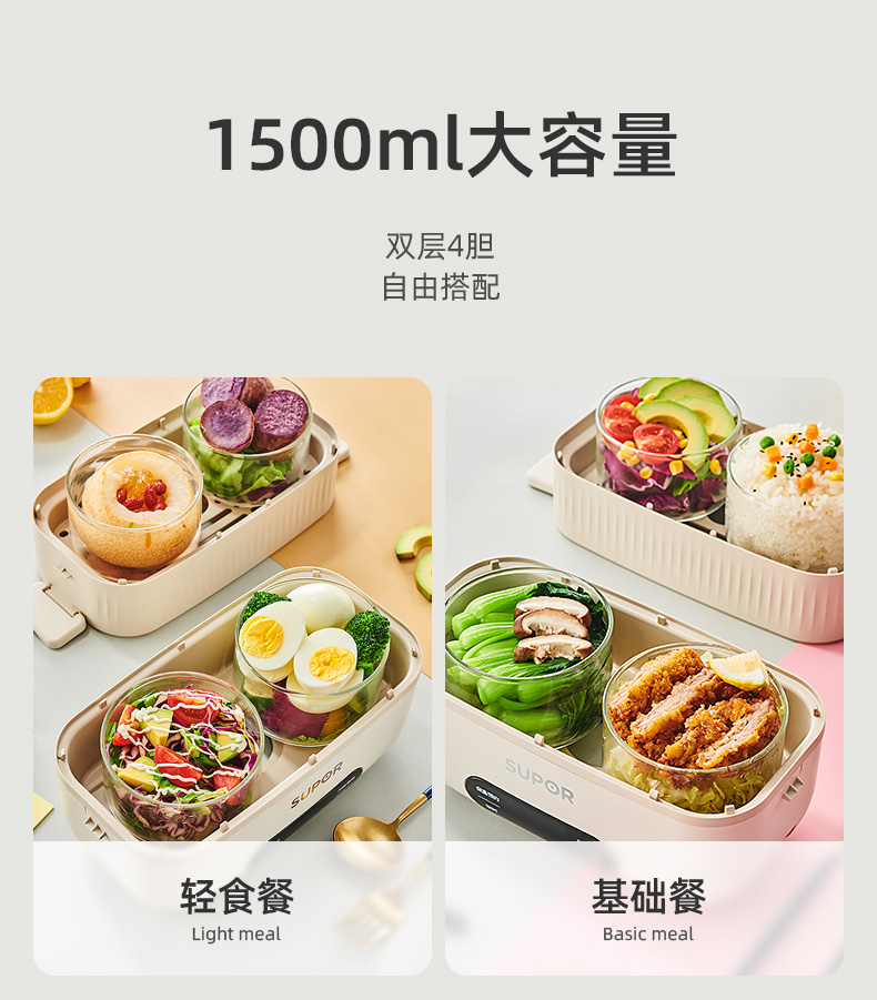 SUPOR Electric Heating Lunch Box 1.5L Double Layer Four Bile Portable Office Worker Steaming Rice Container Plugable and Insulated DH24FC813